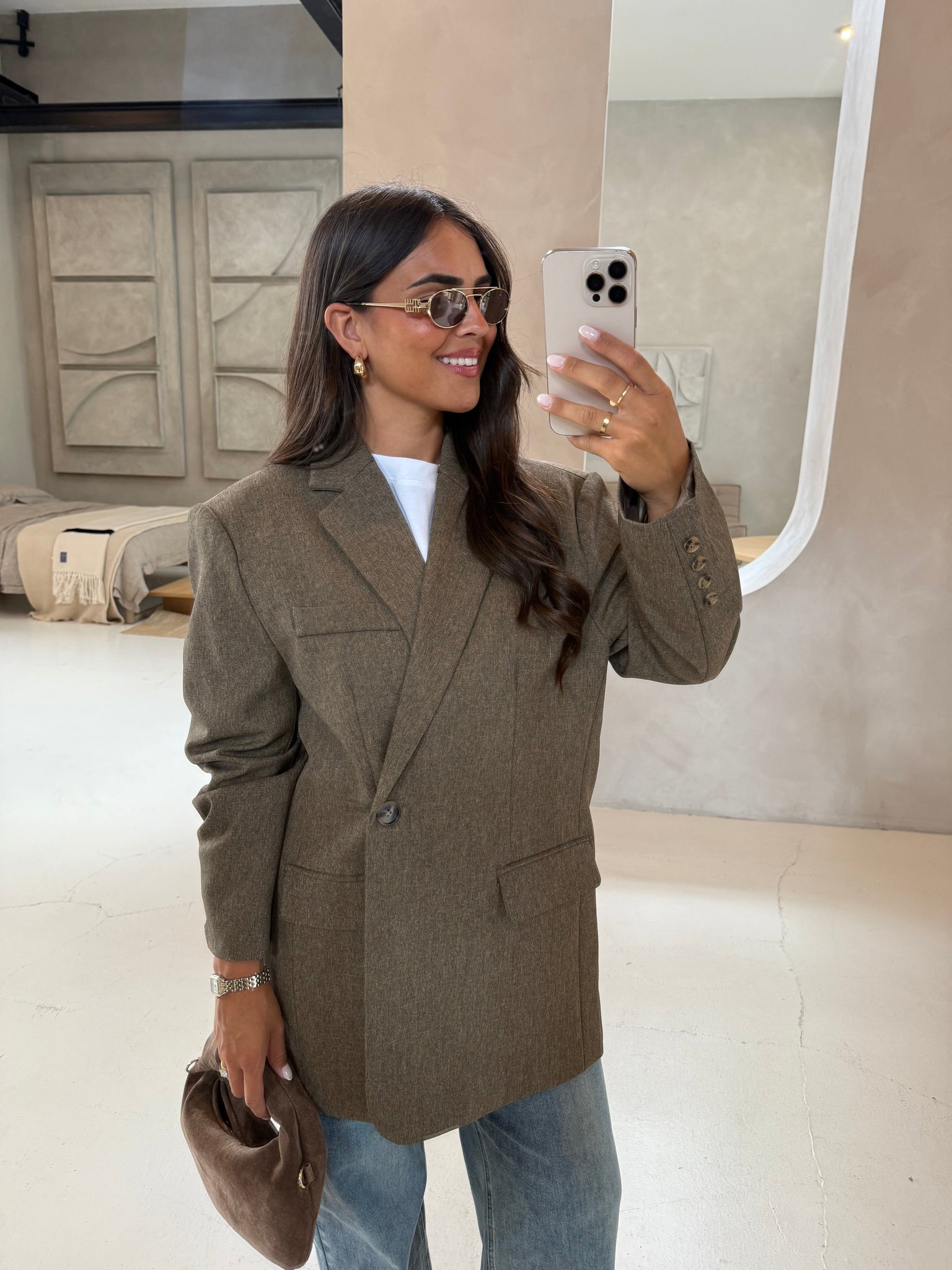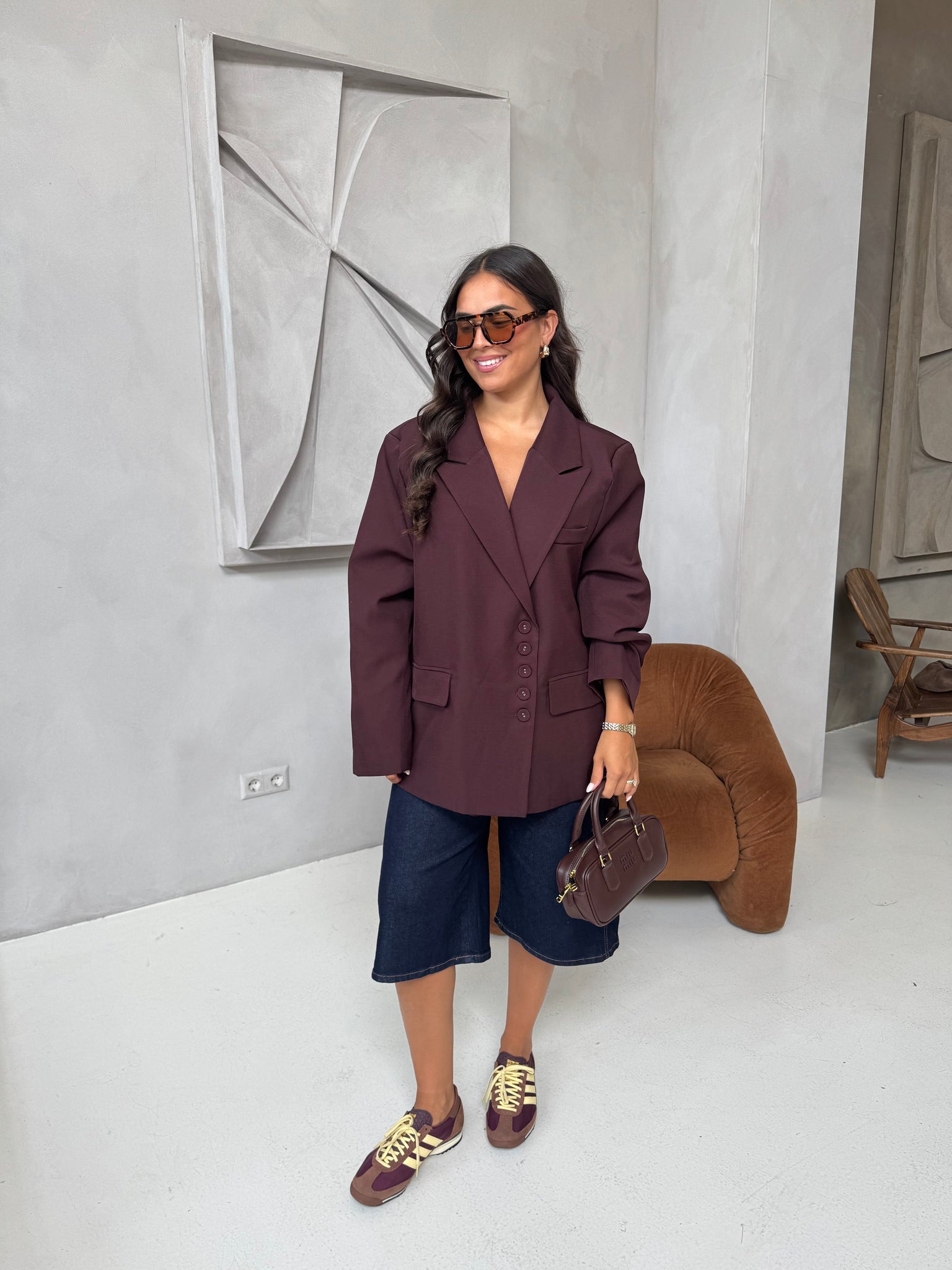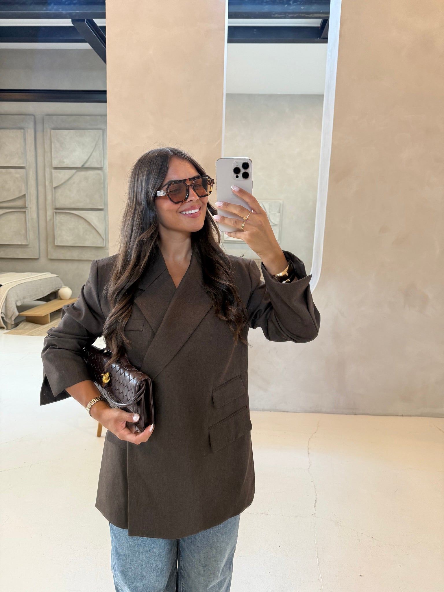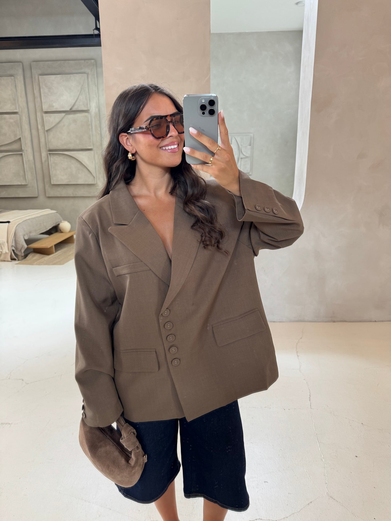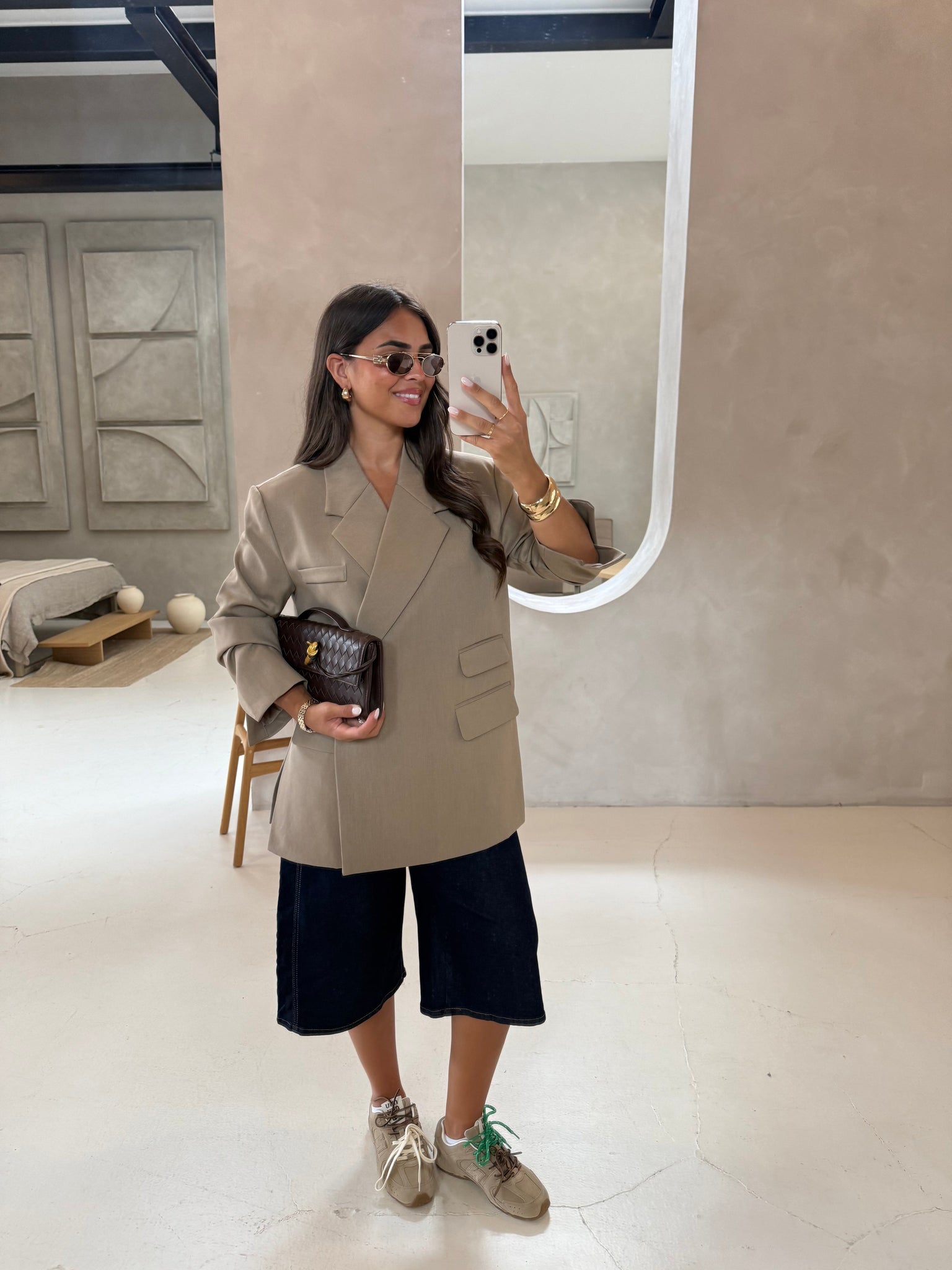 Le mannequin porte une taille S-M et mesure 1m60. Le blazer se porte de deux manières...