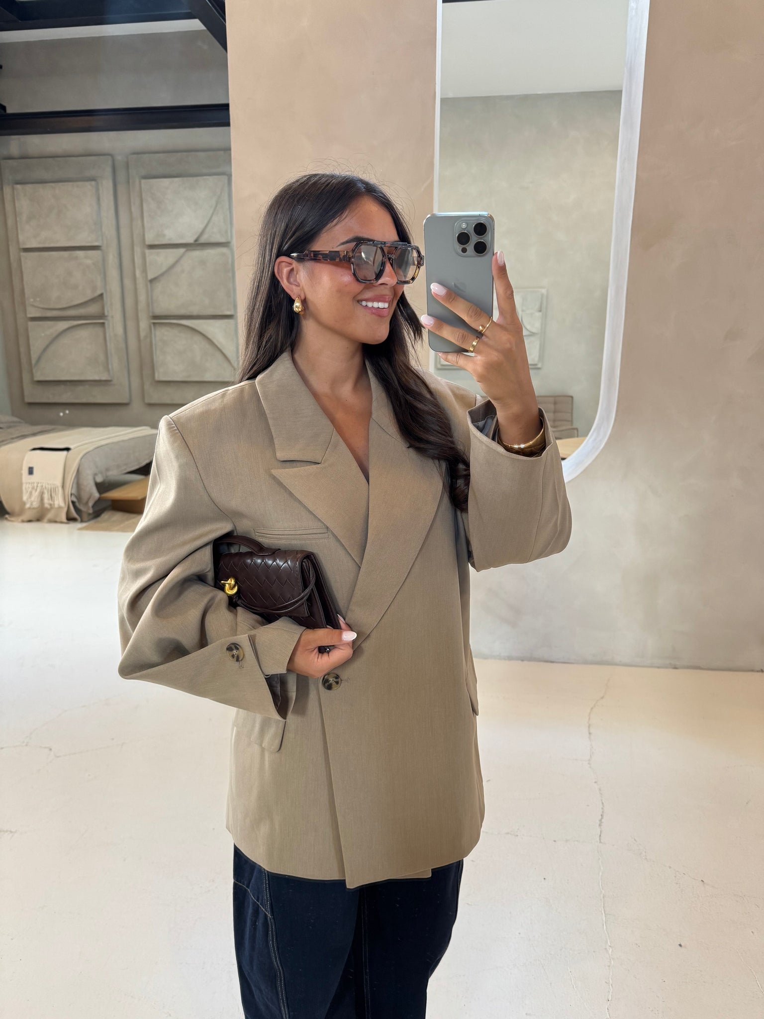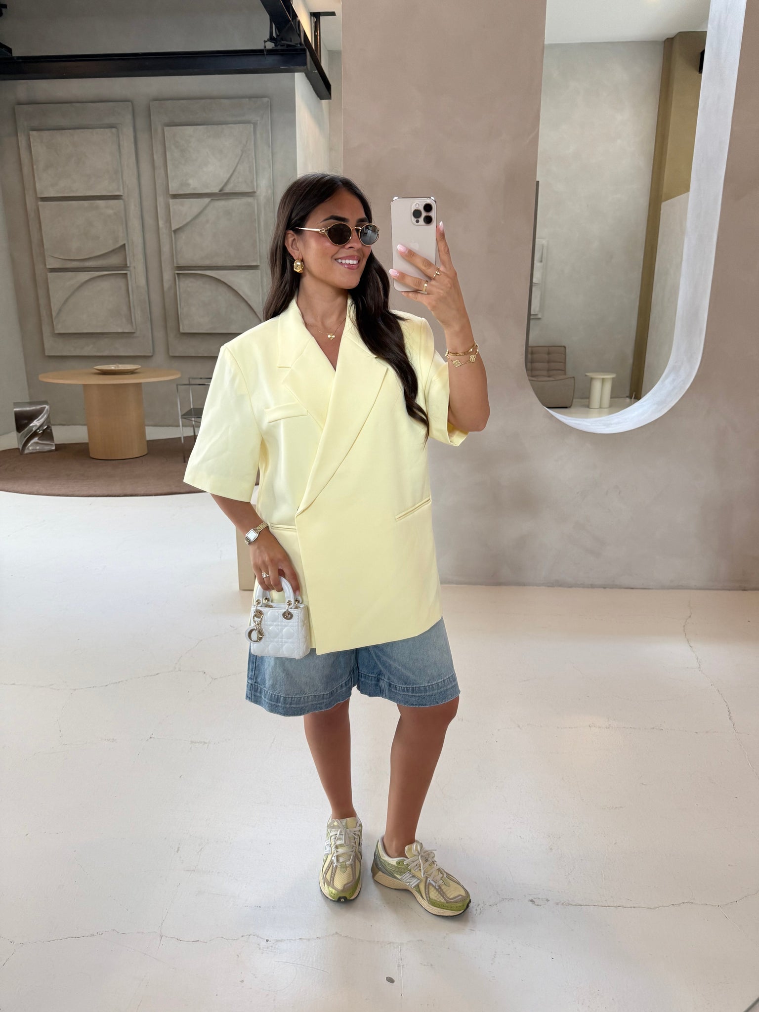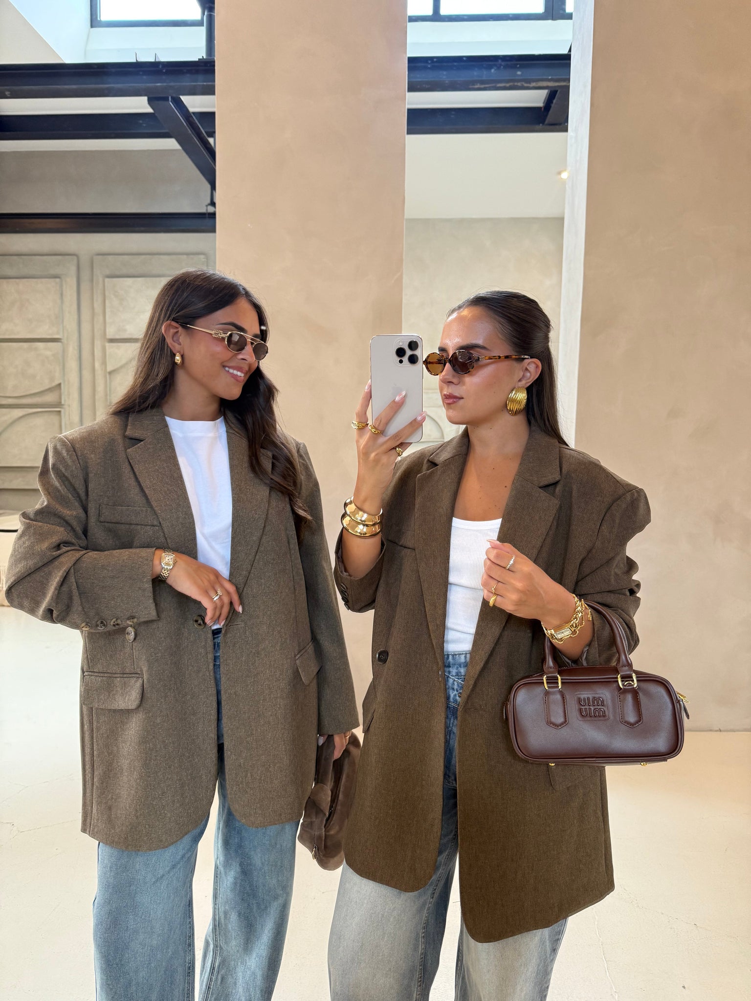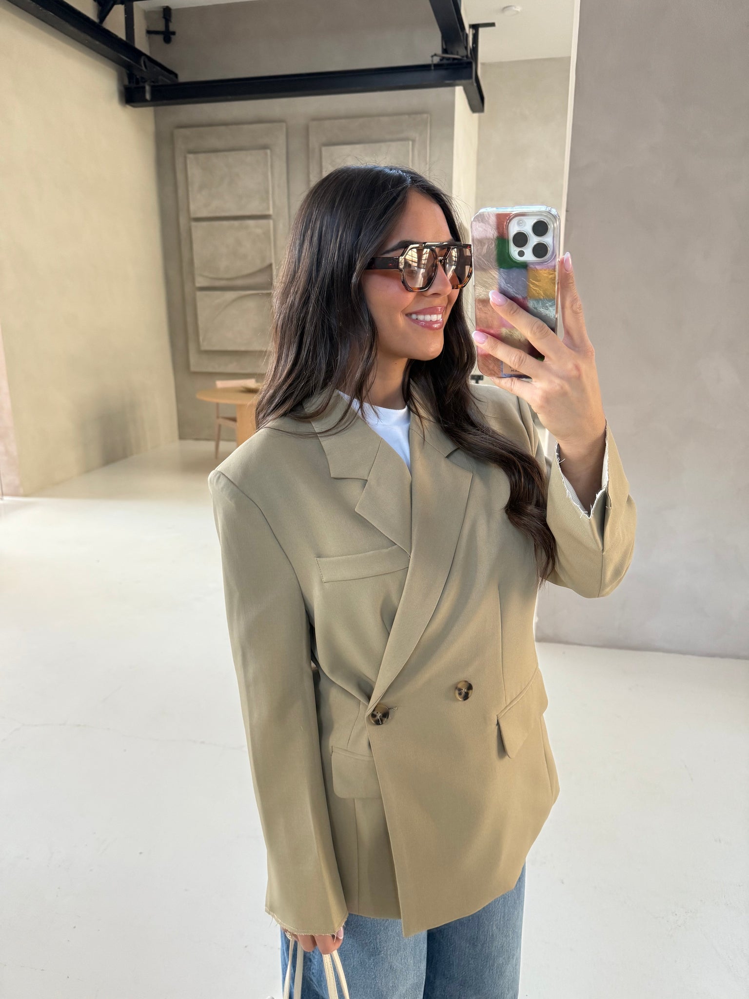 Le mannequin porte une taille S-M et mesure 1m60. Le blazer se porte de deux manières...