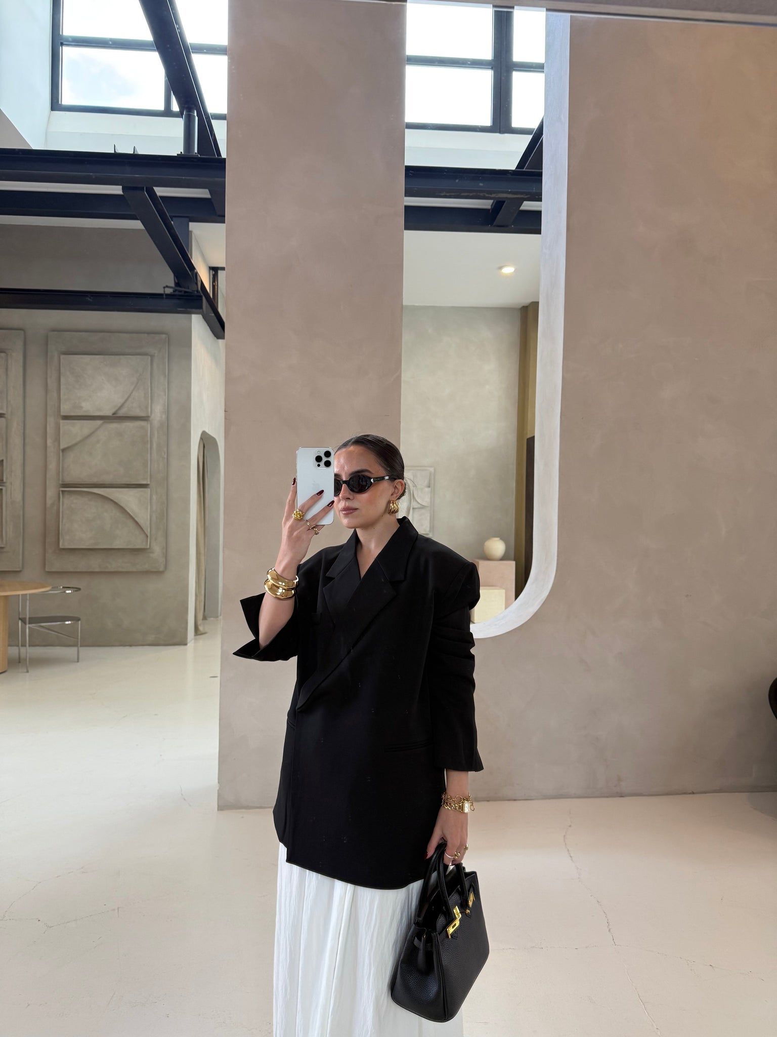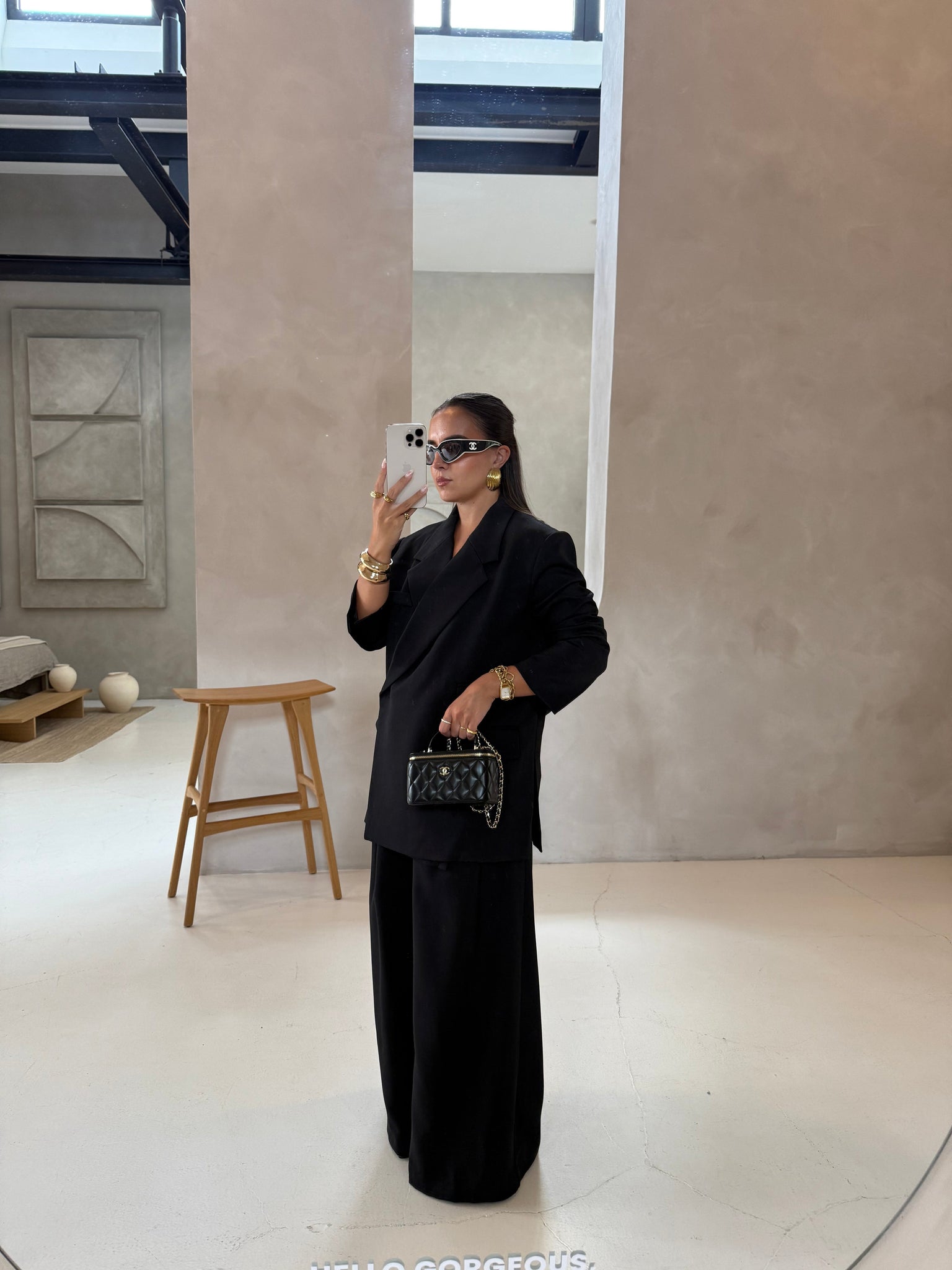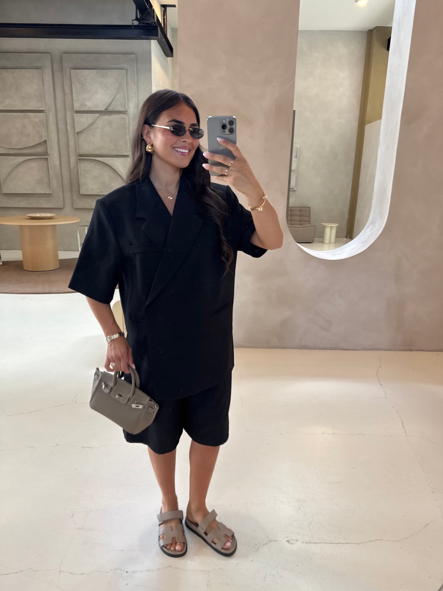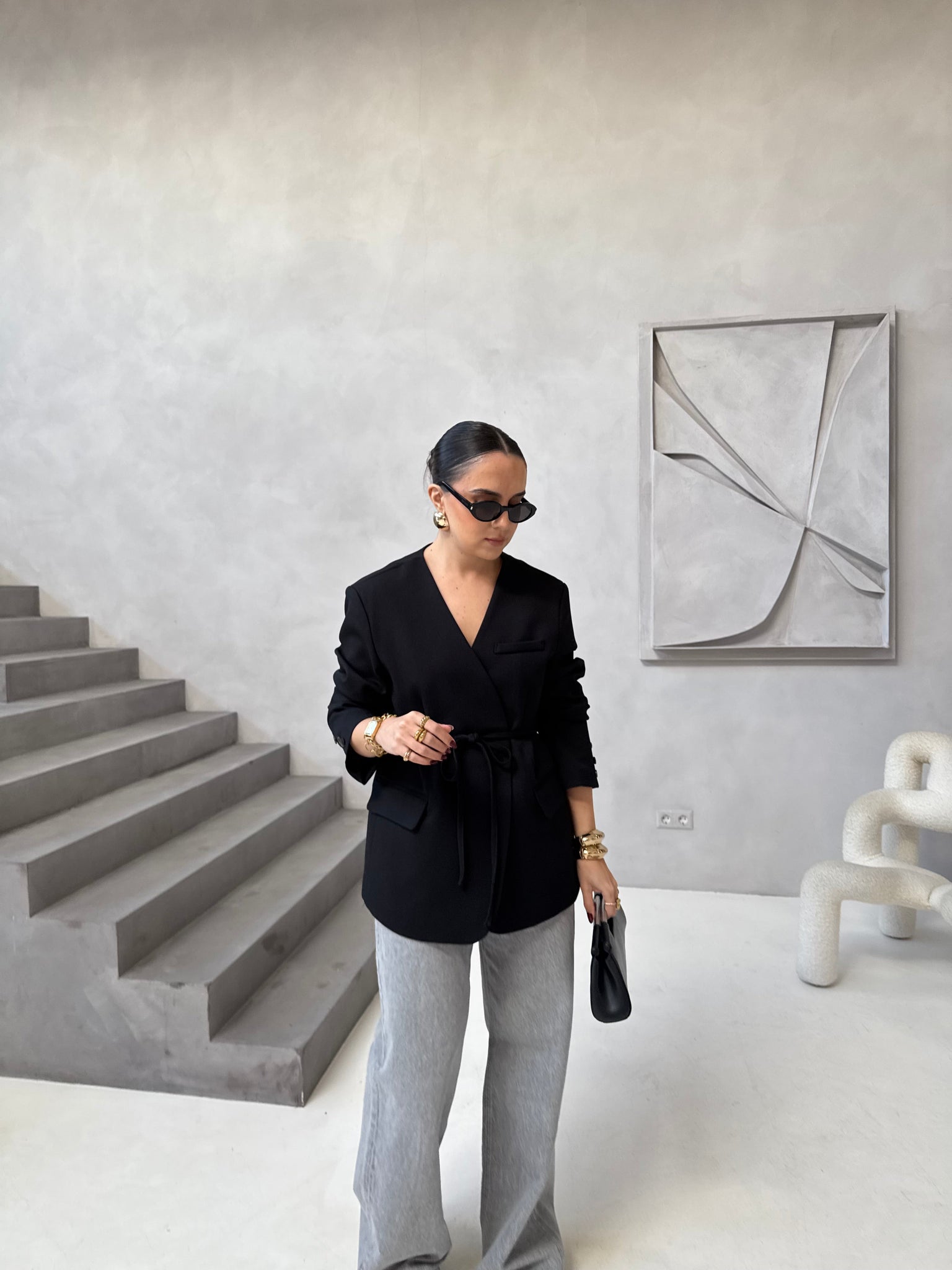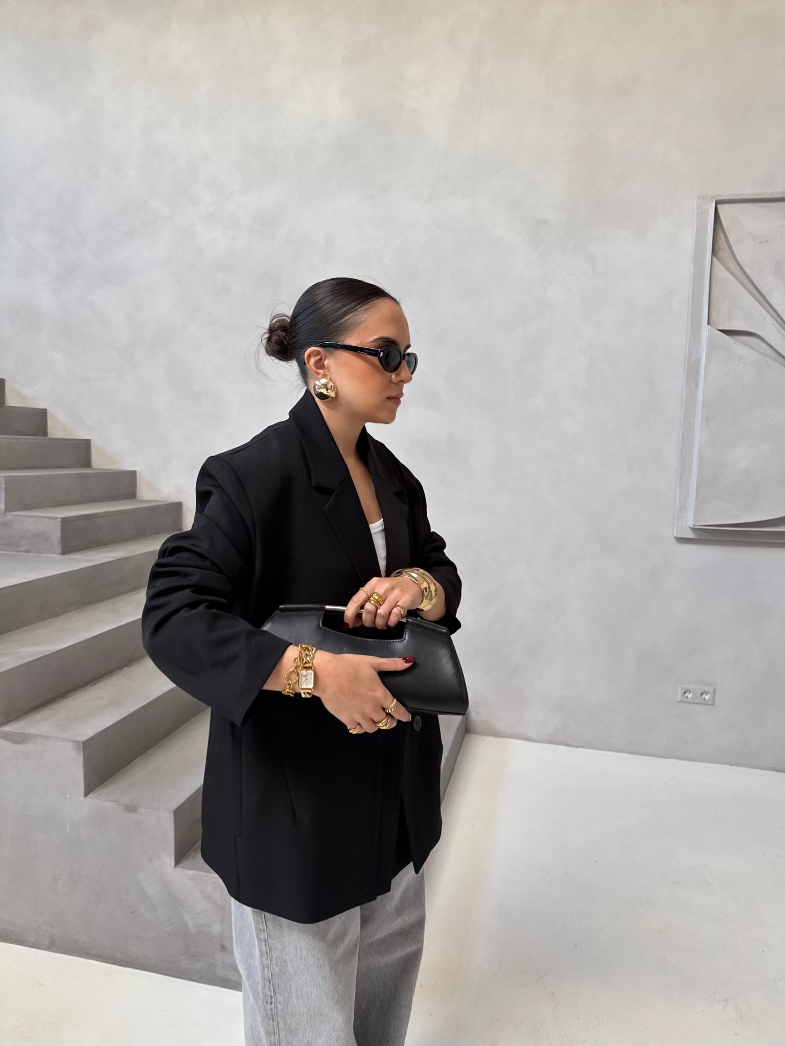 Le mannequin porte une taille S-M et mesure 1m60. Le blazer se porte de deux manières...
