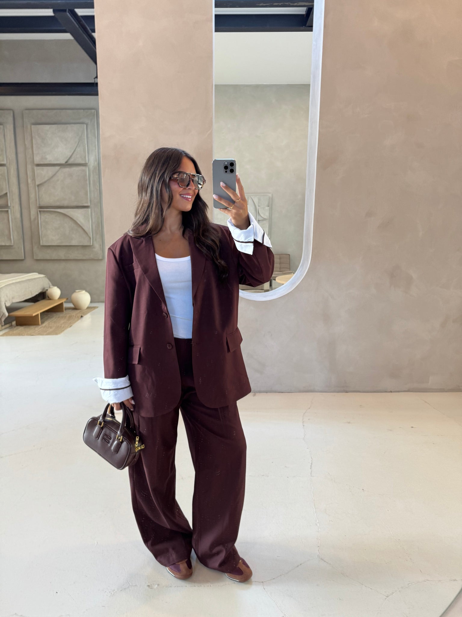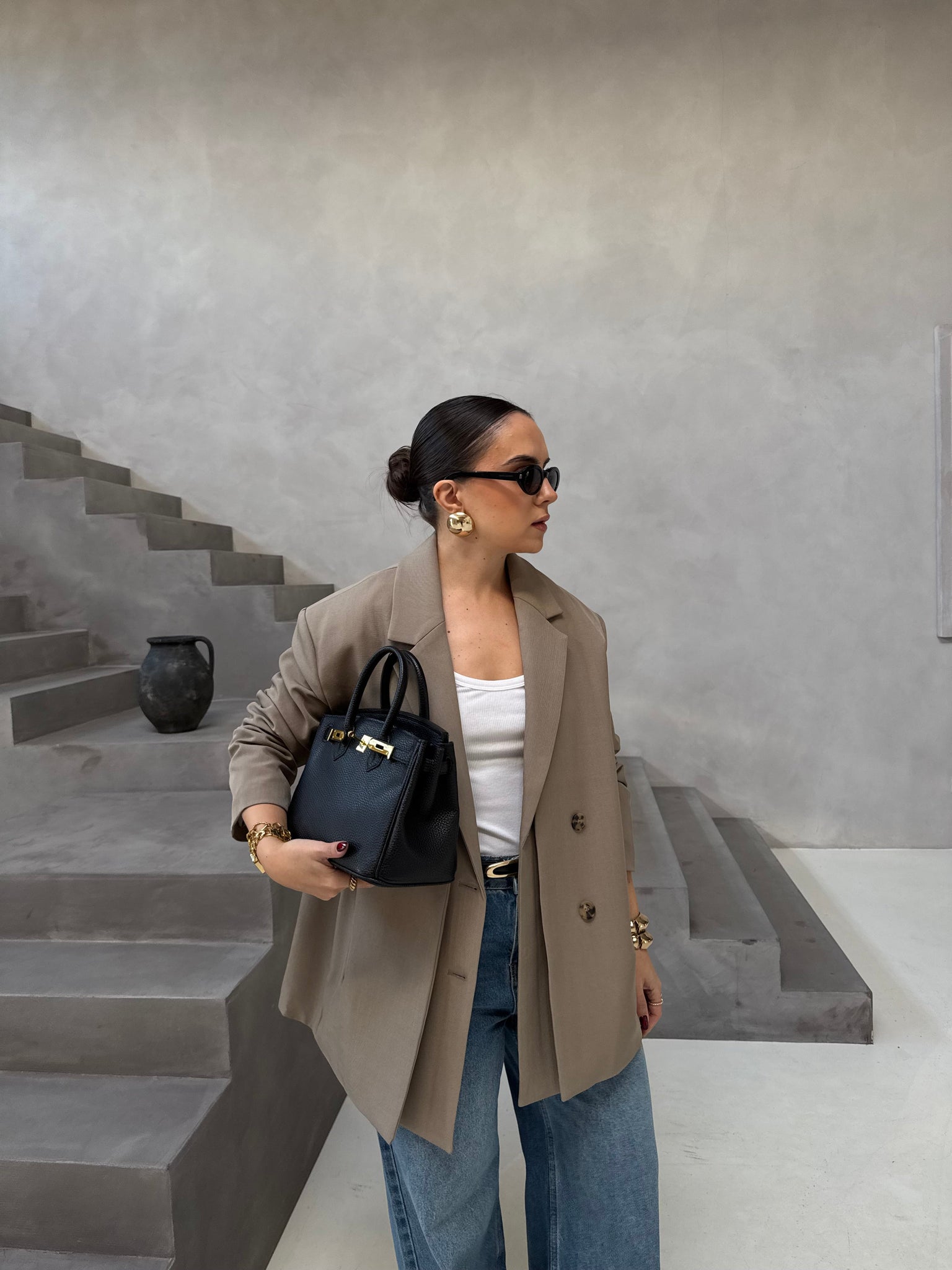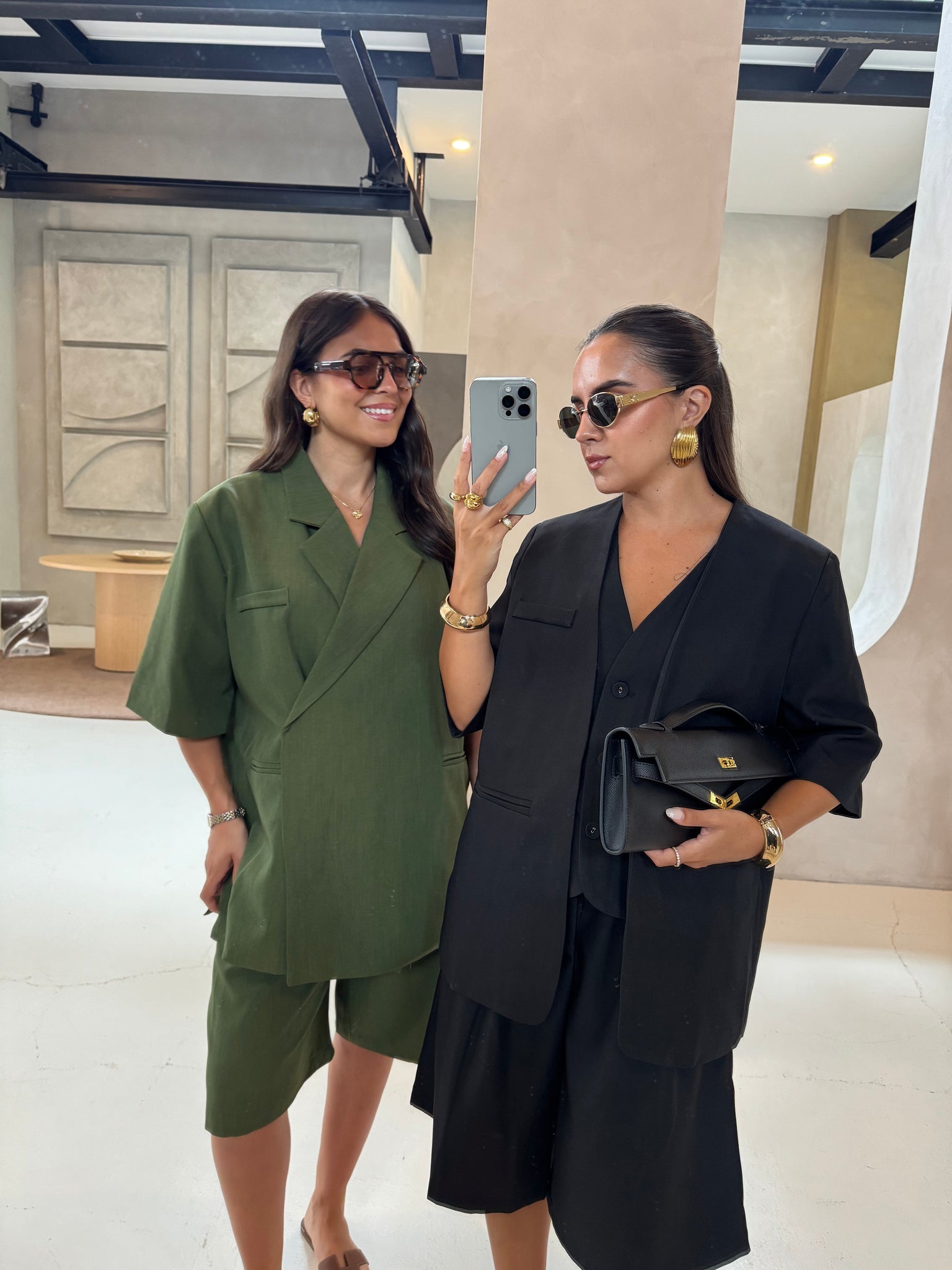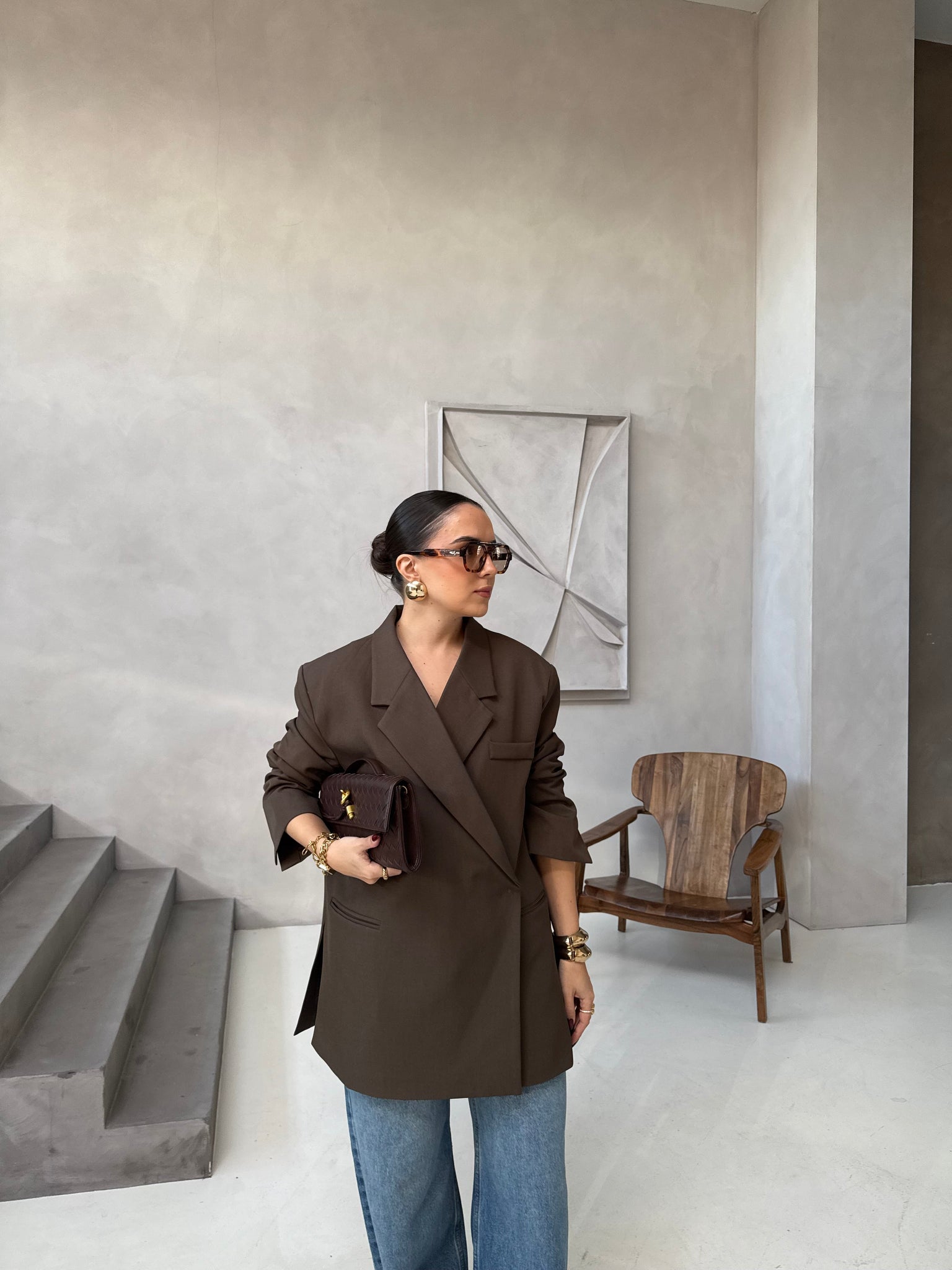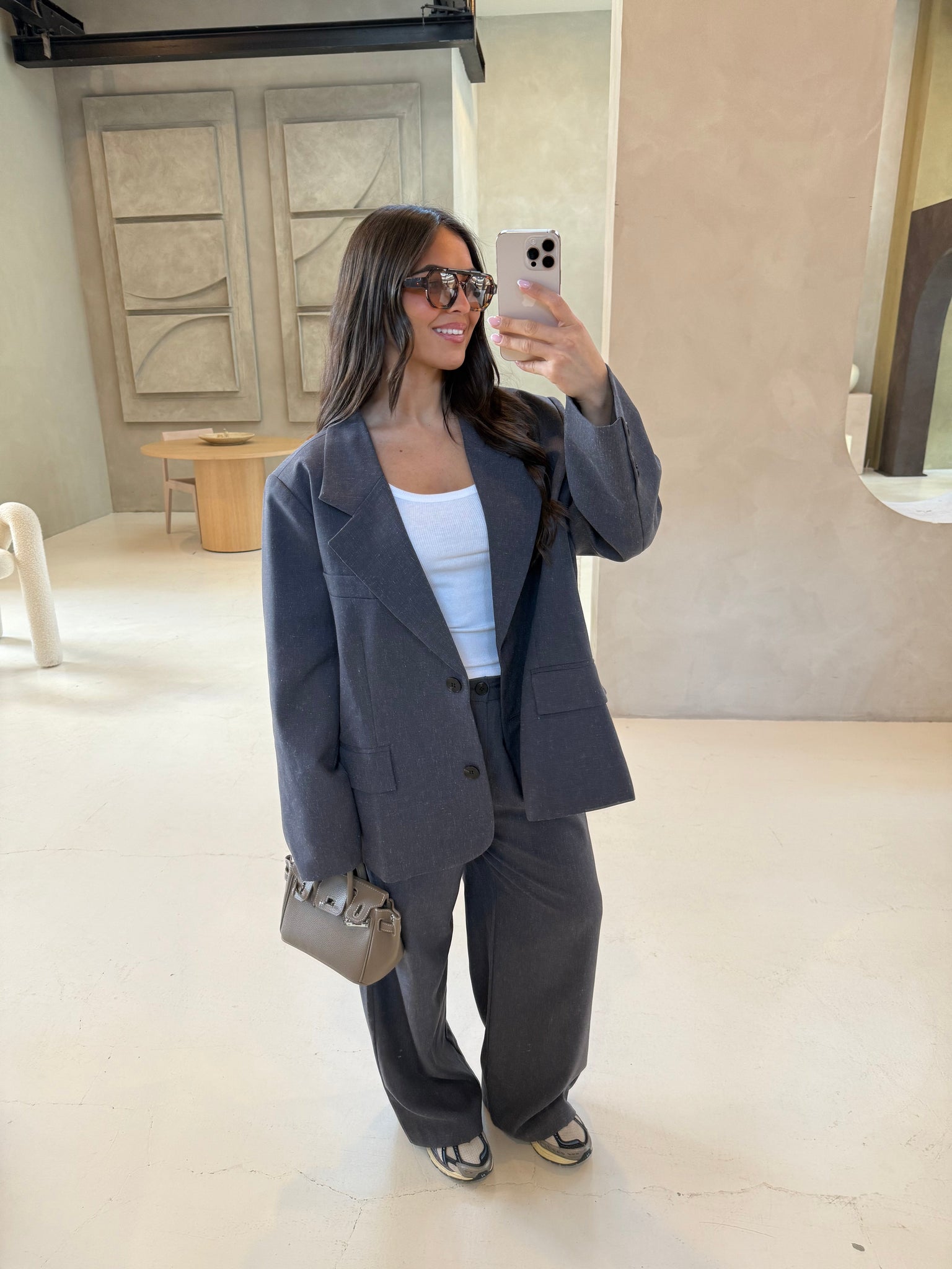 Le mannequin porte une taille S-M et mesure 1m60. Le blazer se porte de deux manières...