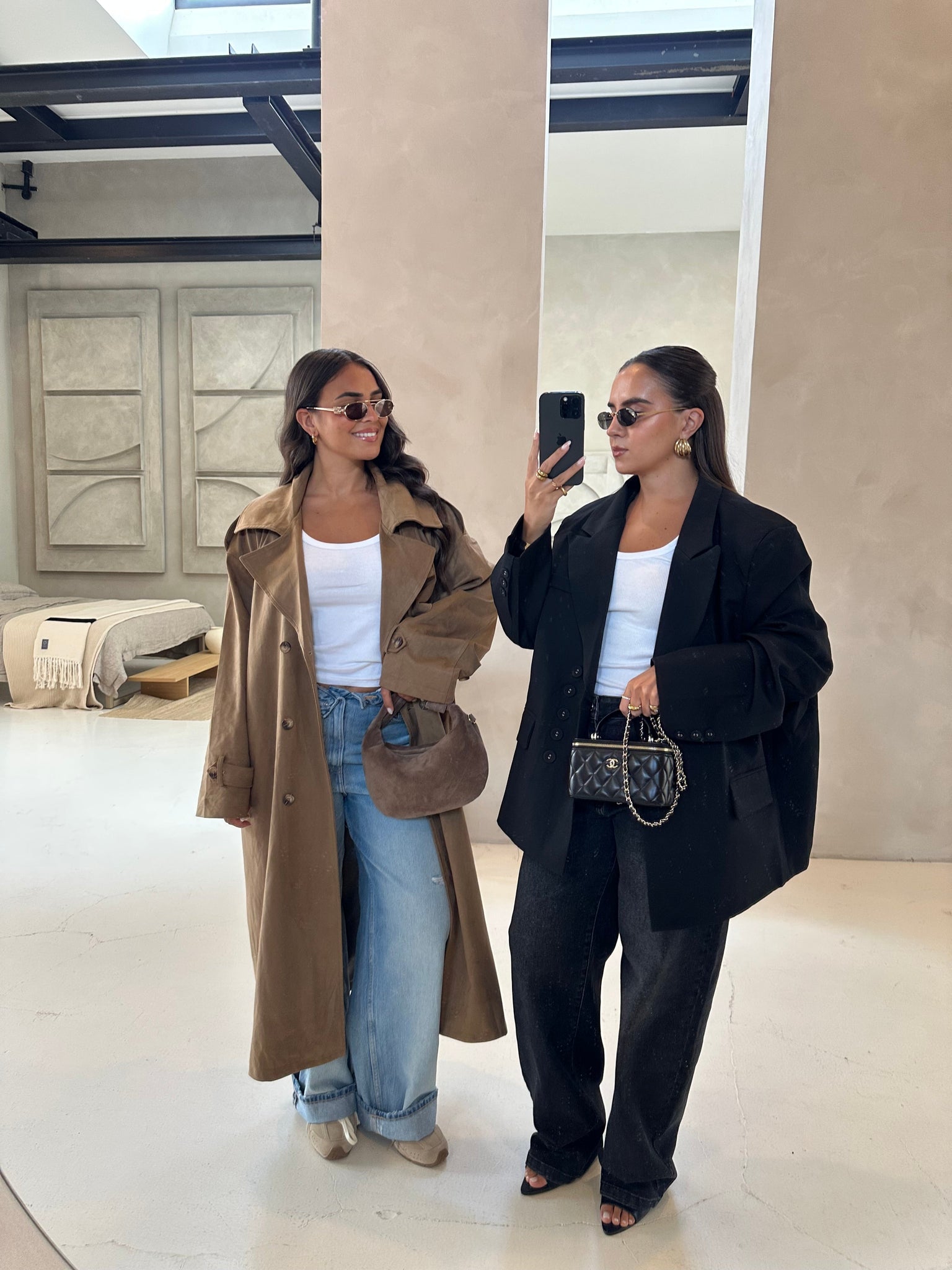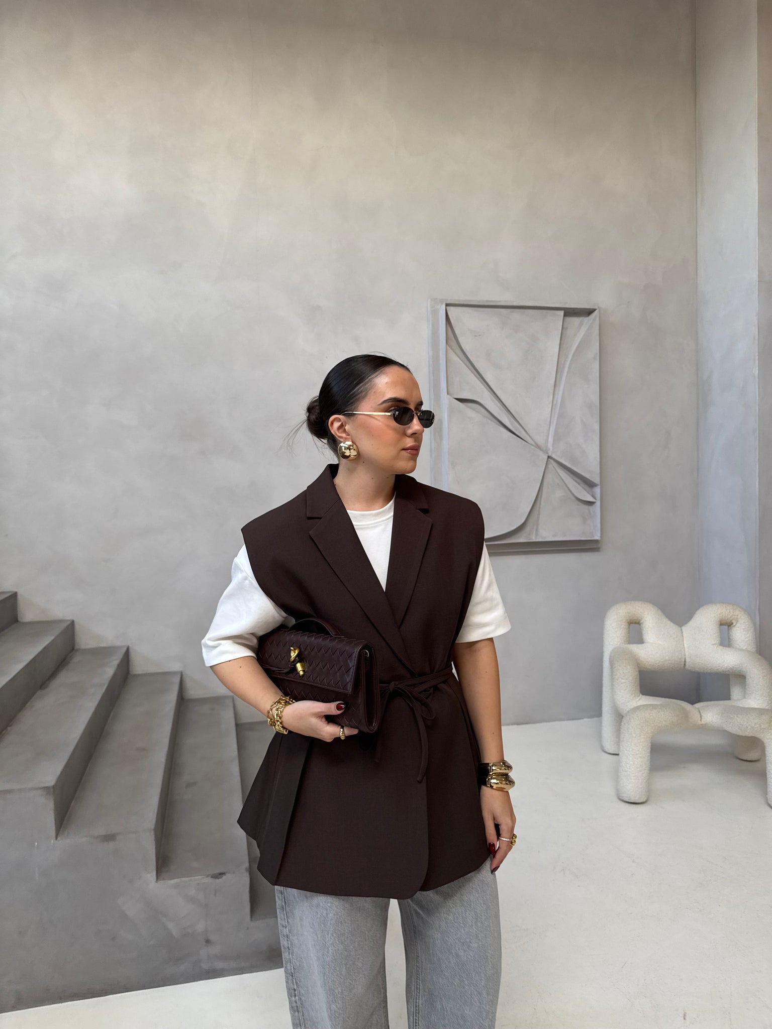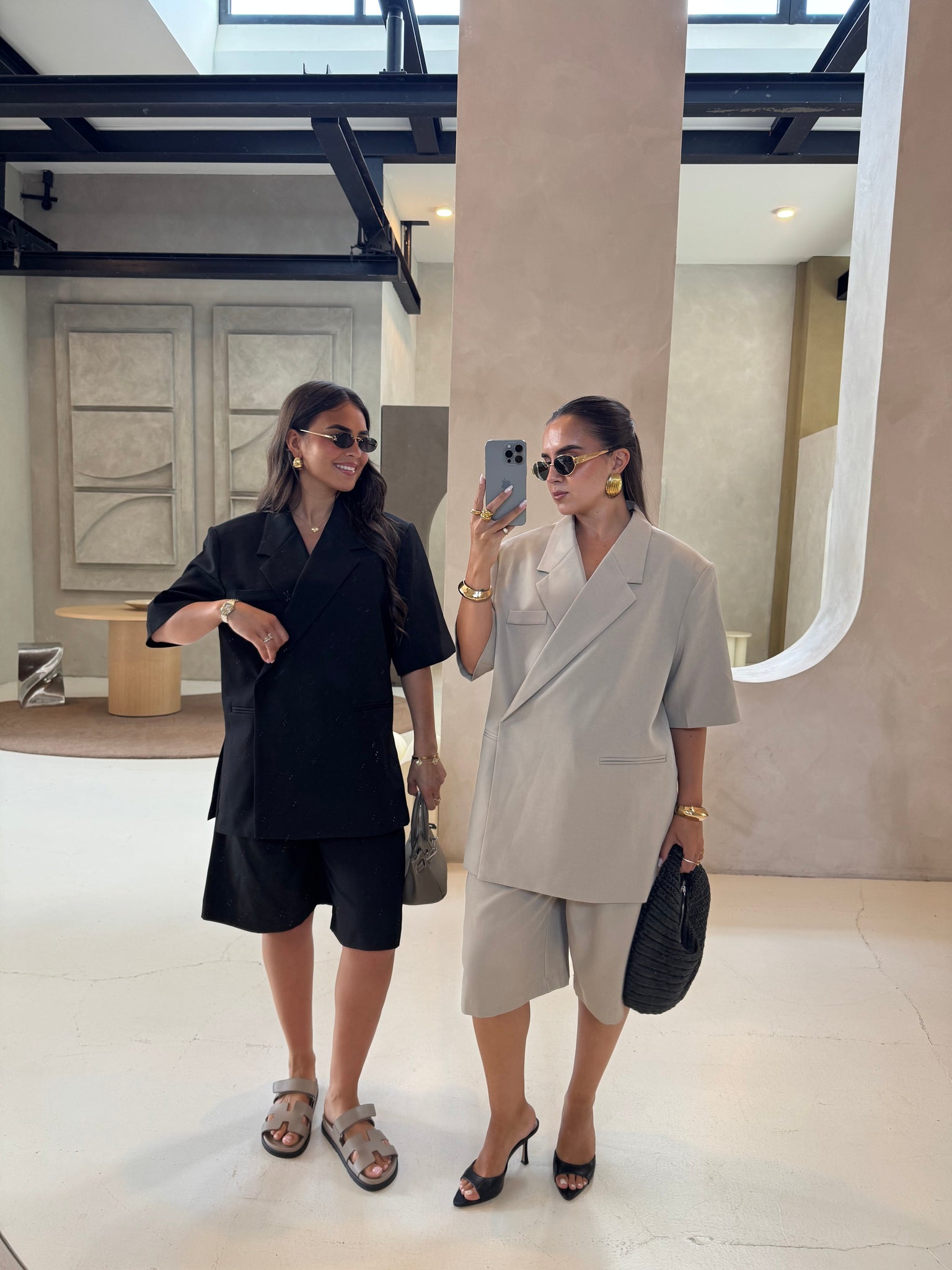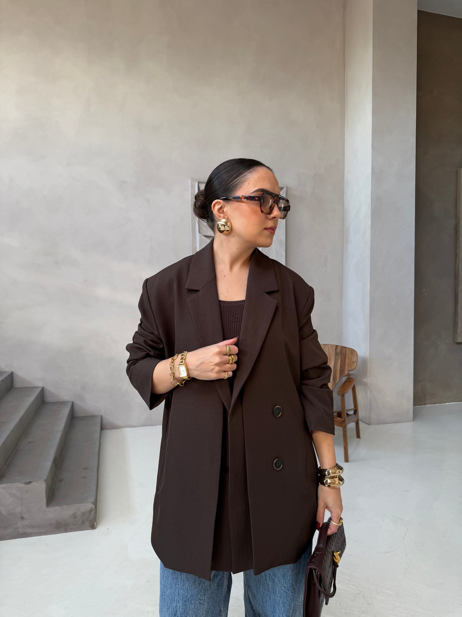 Le mannequin porte une taille S-M et mesure 1m60. Le blazer se porte de deux manières...