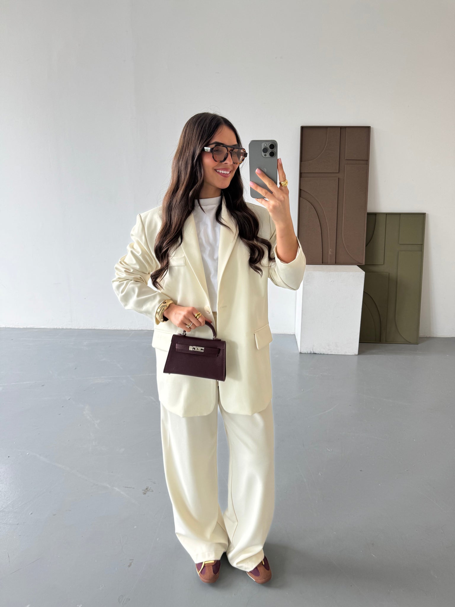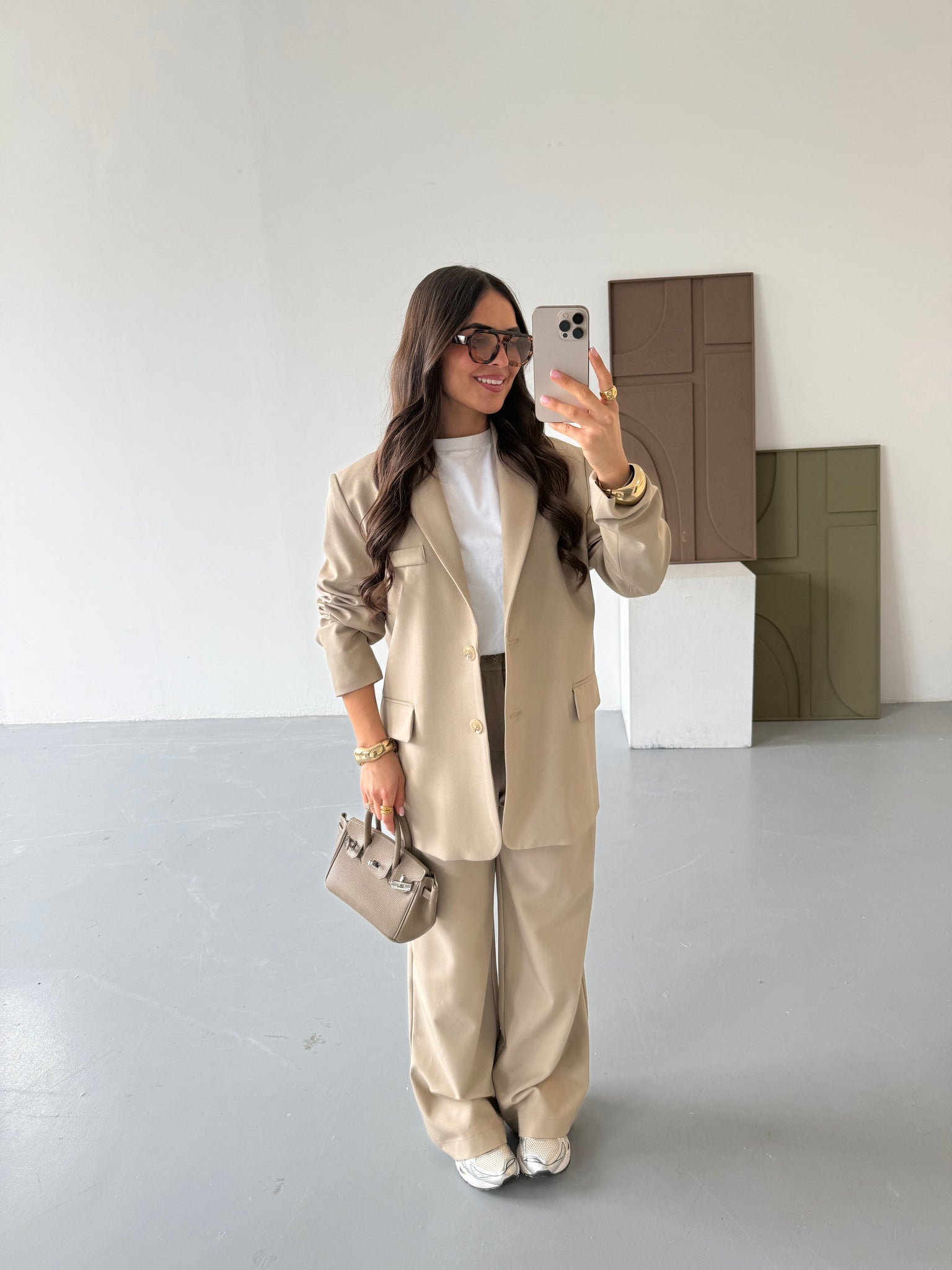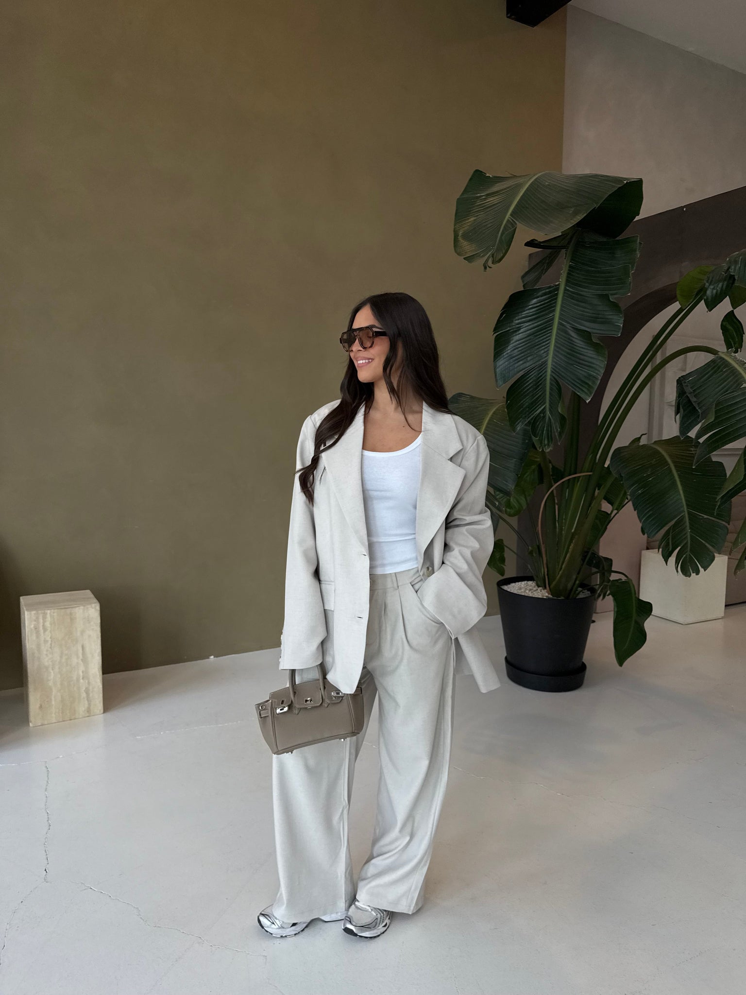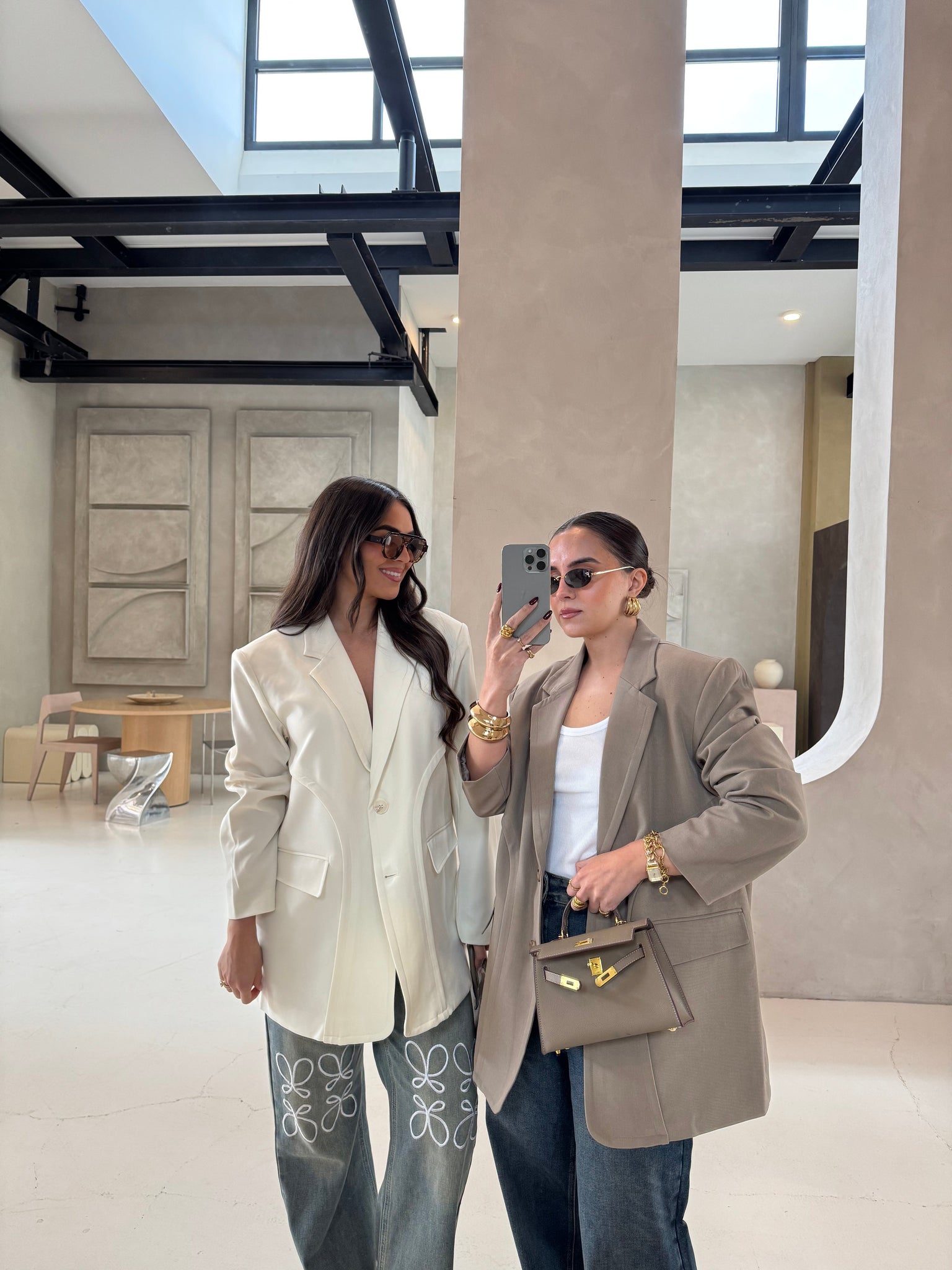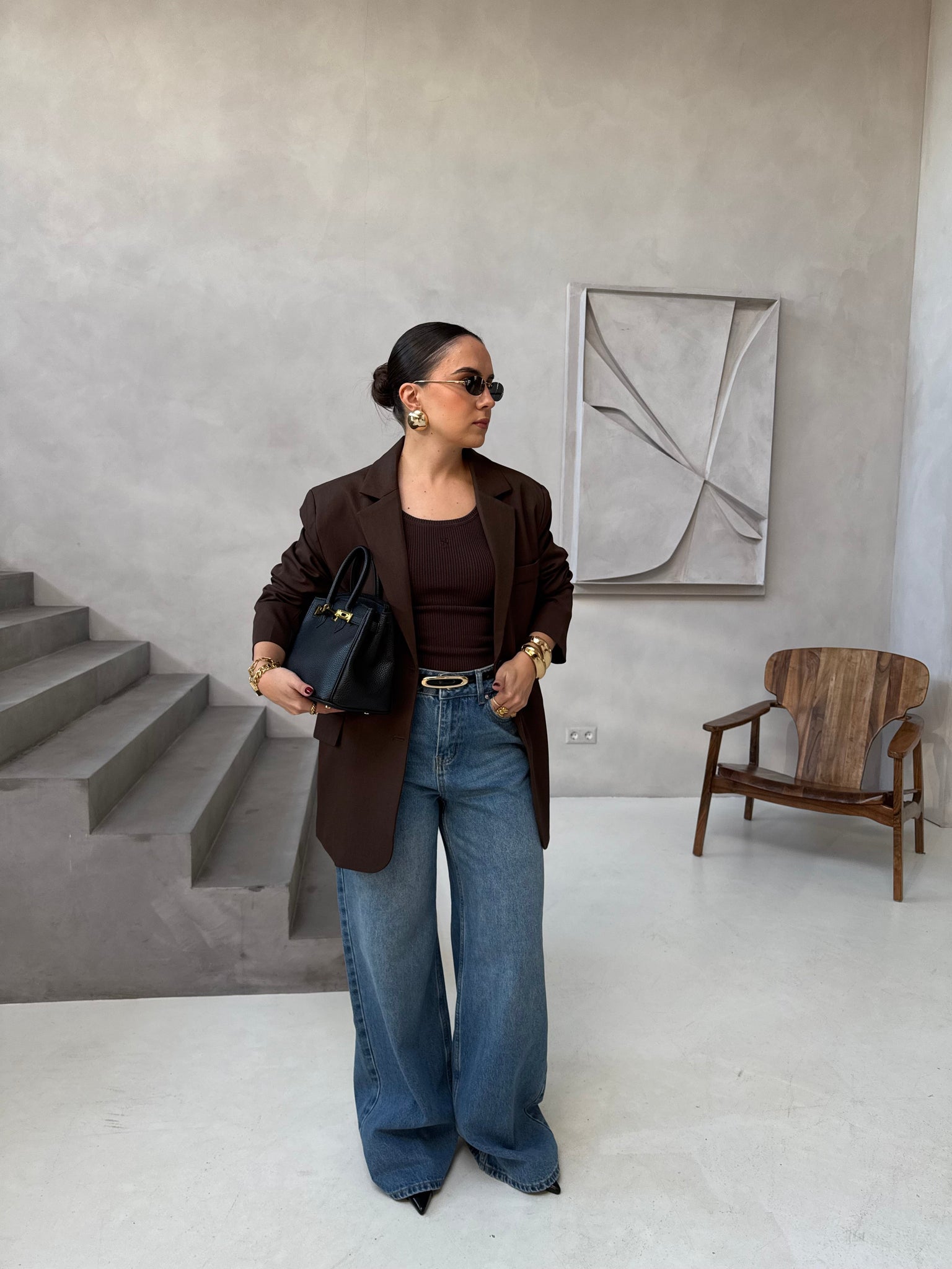 Le mannequin porte une taille S-M et mesure 1m60. Le blazer se porte de deux manières...