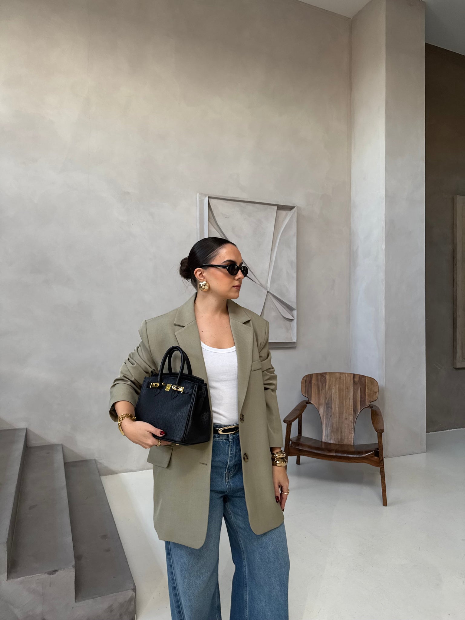 Le mannequin porte une taille S-M et mesure 1m65. Le blazer se porte de deux...