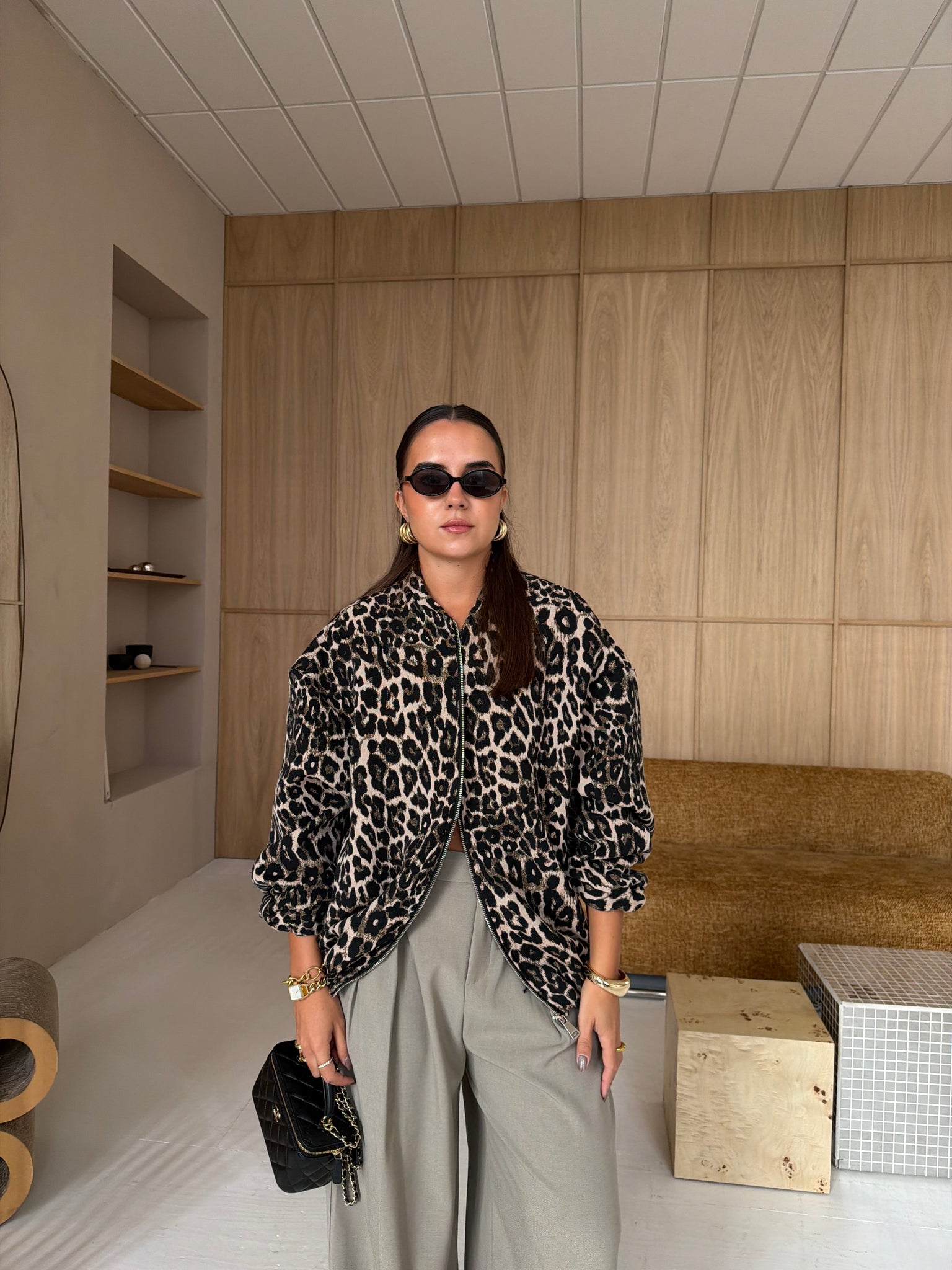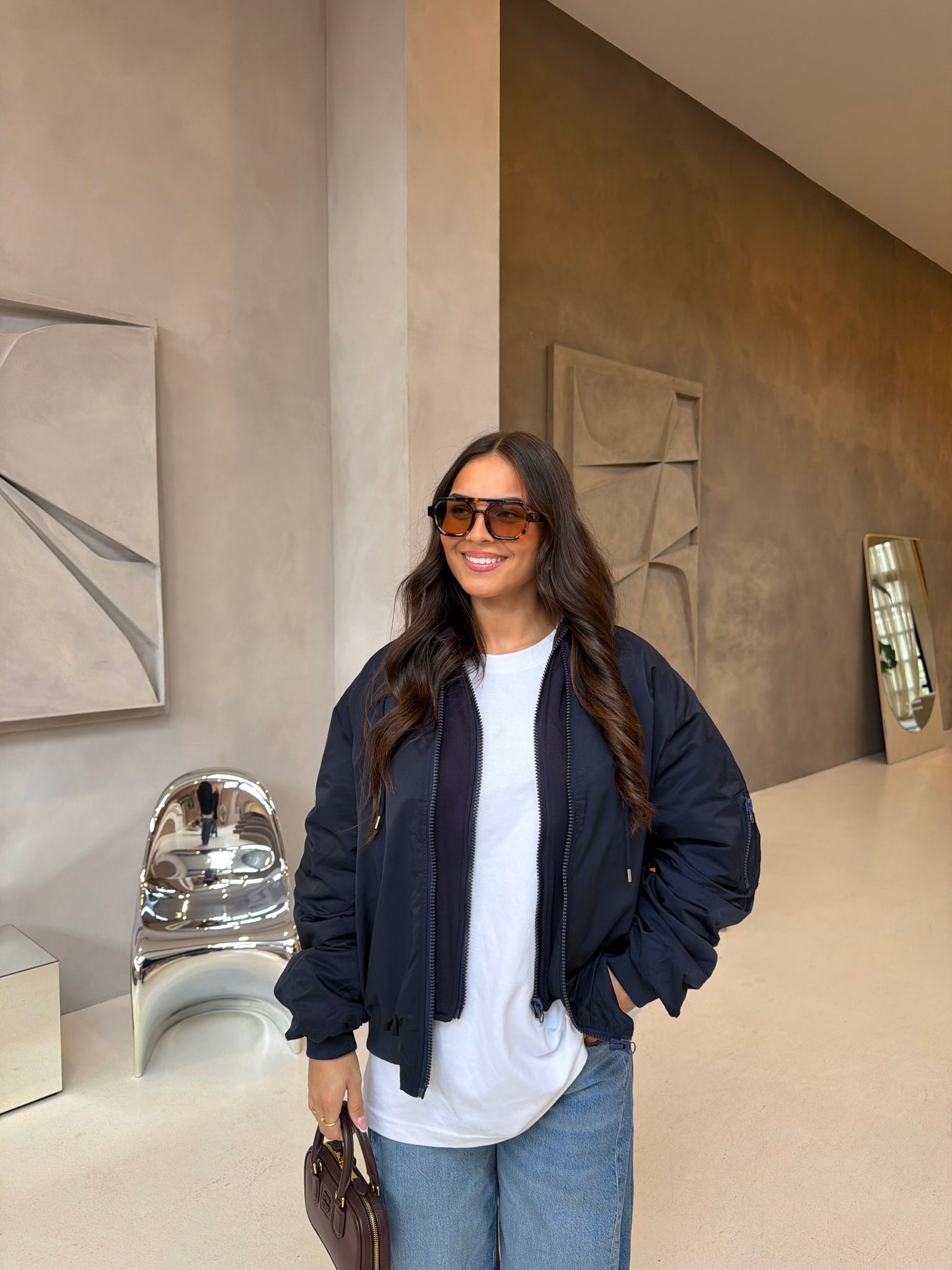 Bomber en taille unique. Le mannequin mesure 1m60. Composition : 100 % coton.