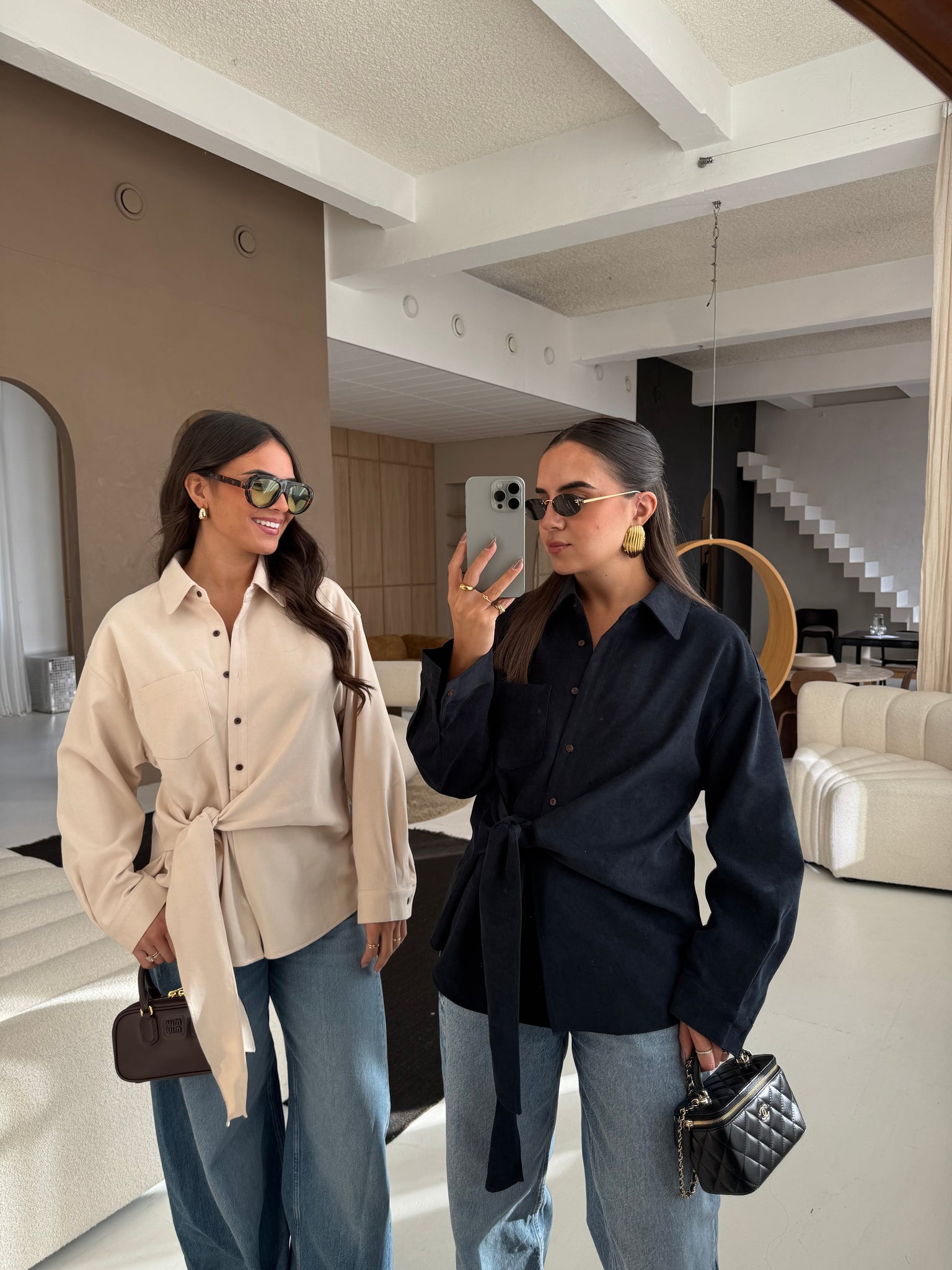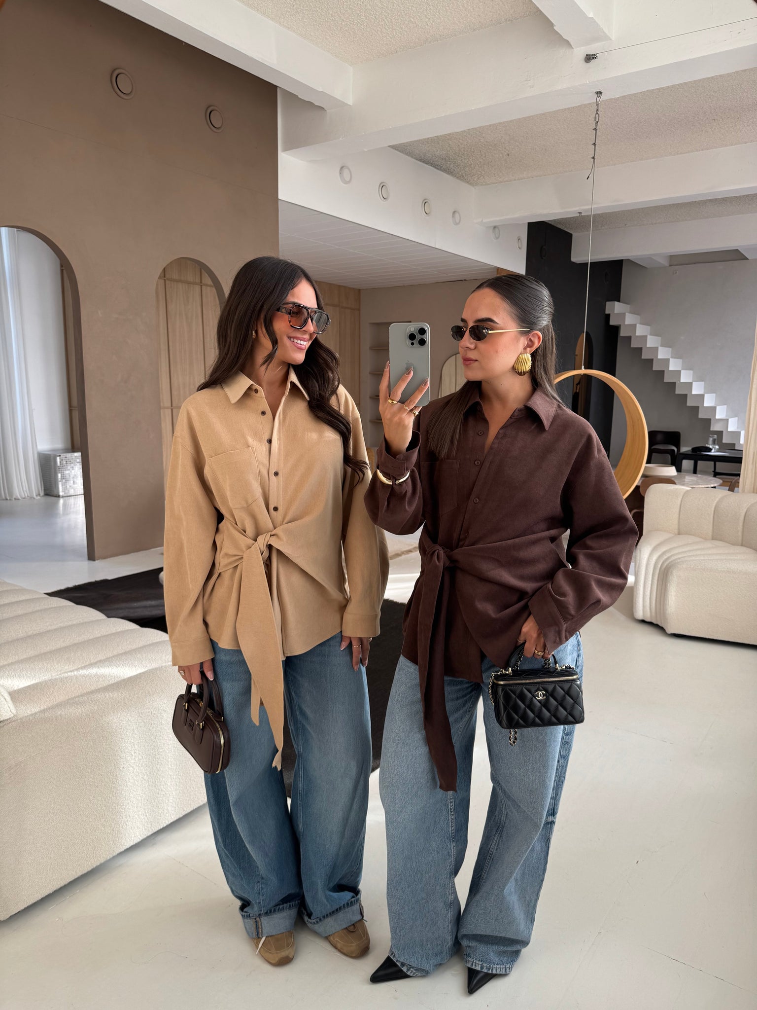 Chemise en taille unique. Le mannequin mesure 1m65. Composition : 80% coton, 20% polyester.