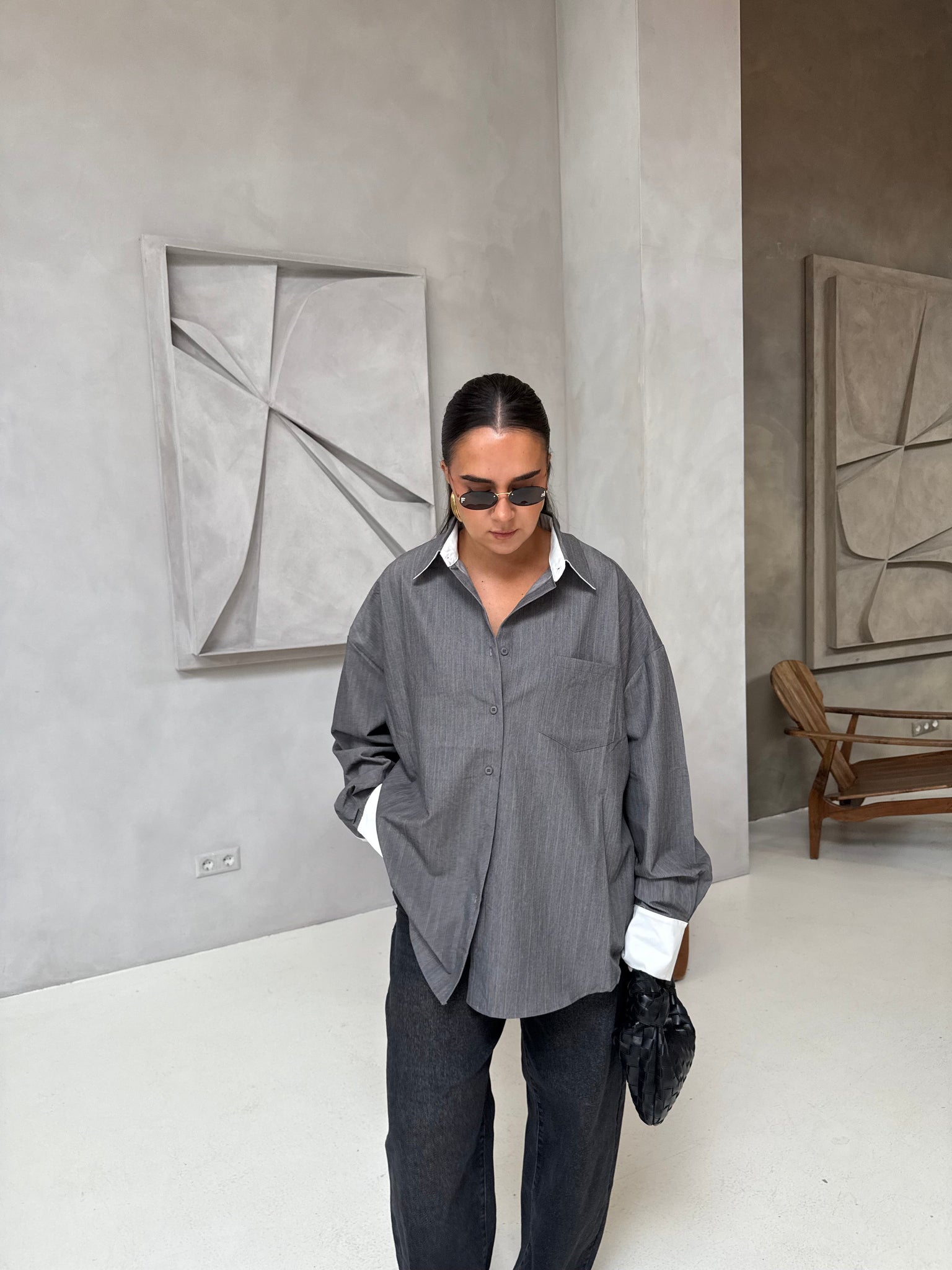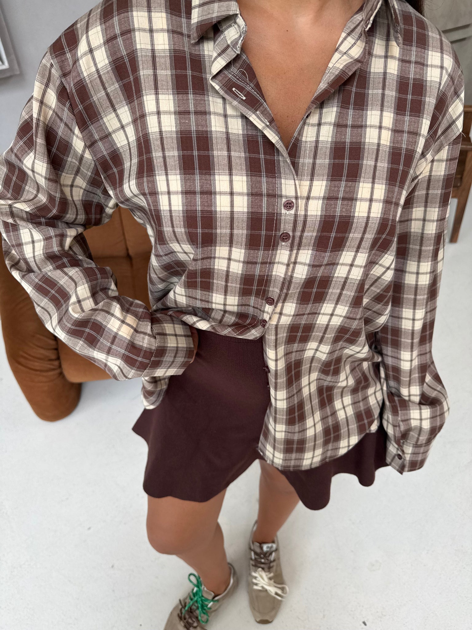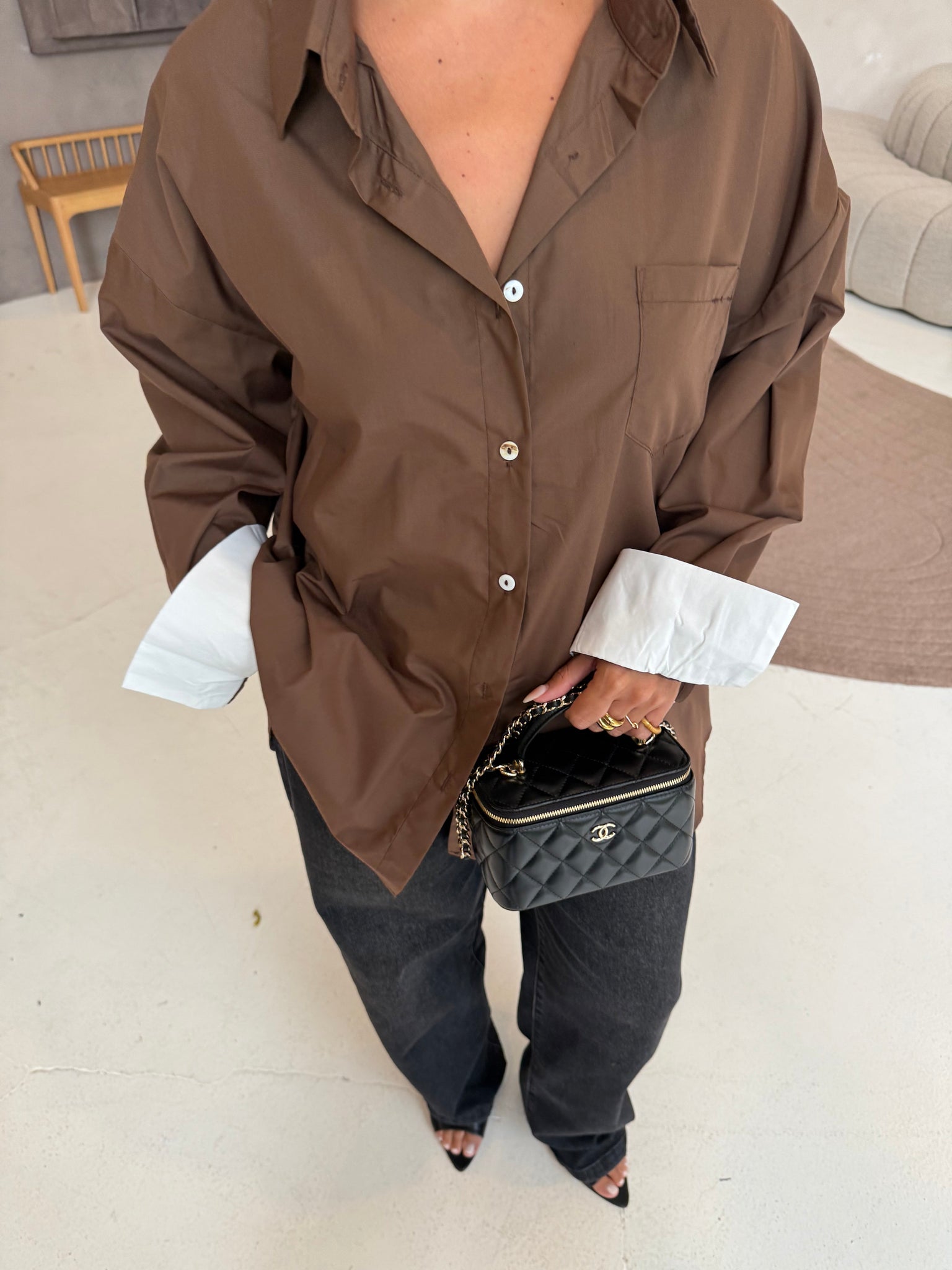 Chemise en taille unique. Le mannequin mesure 1m65. Composition : 80% coton, 20% polyester.