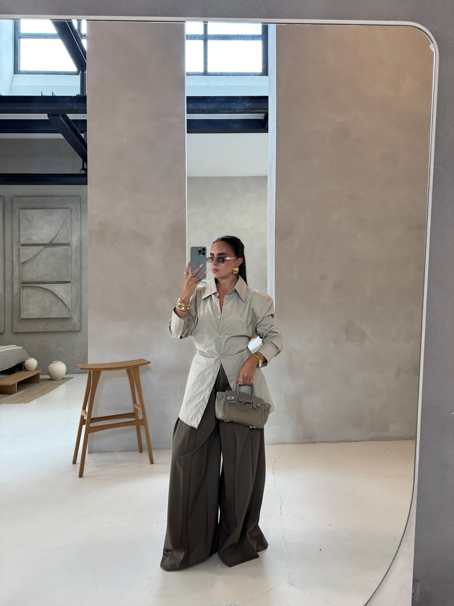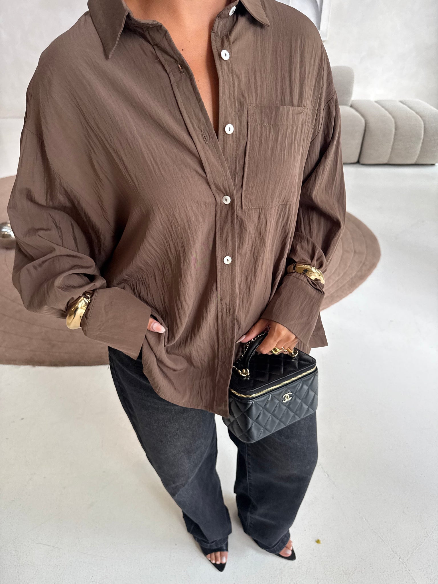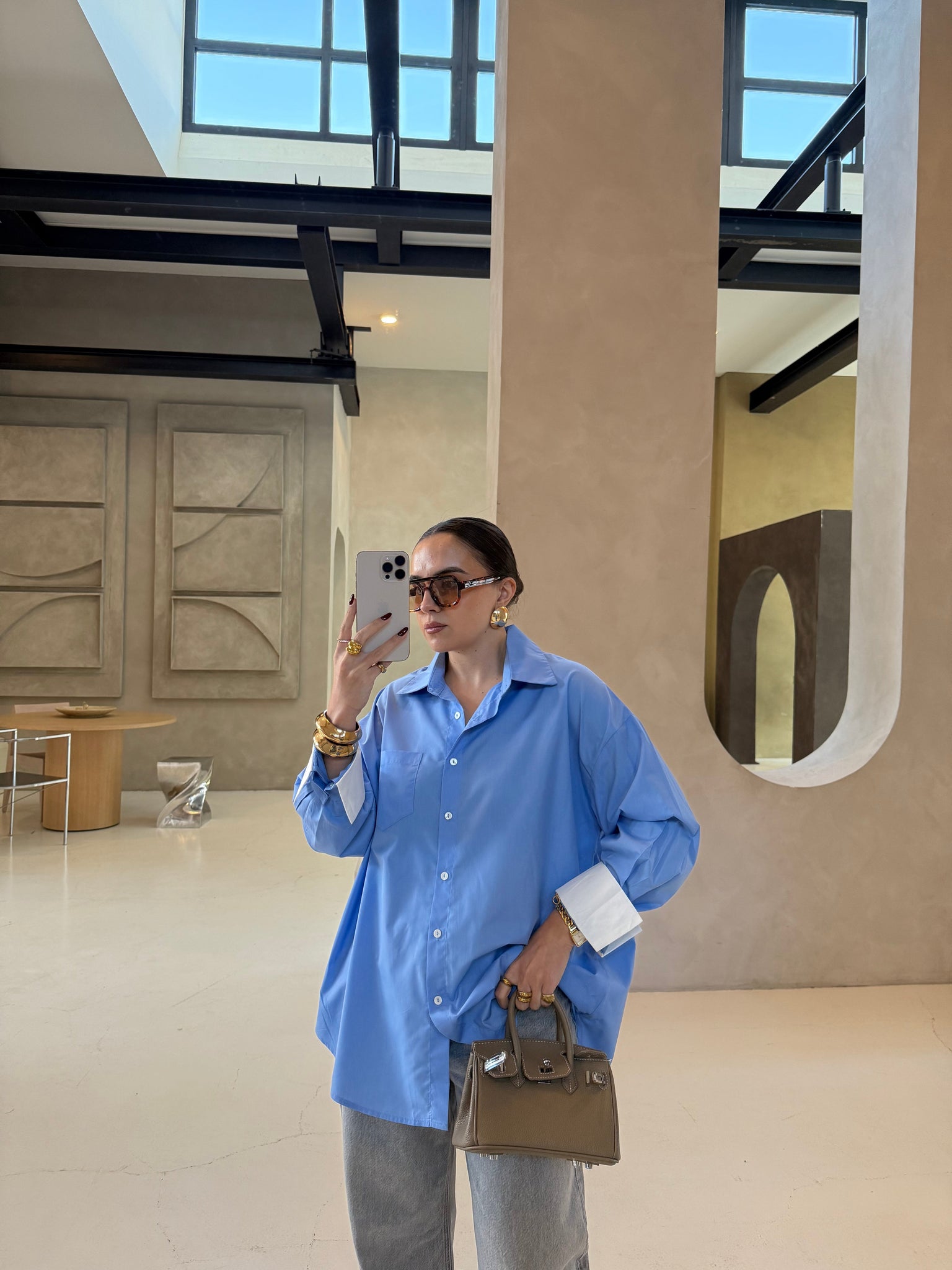 Chemise en taille unique. Le mannequin mesure 1m65. Composition : 80% coton, 20% polyester.