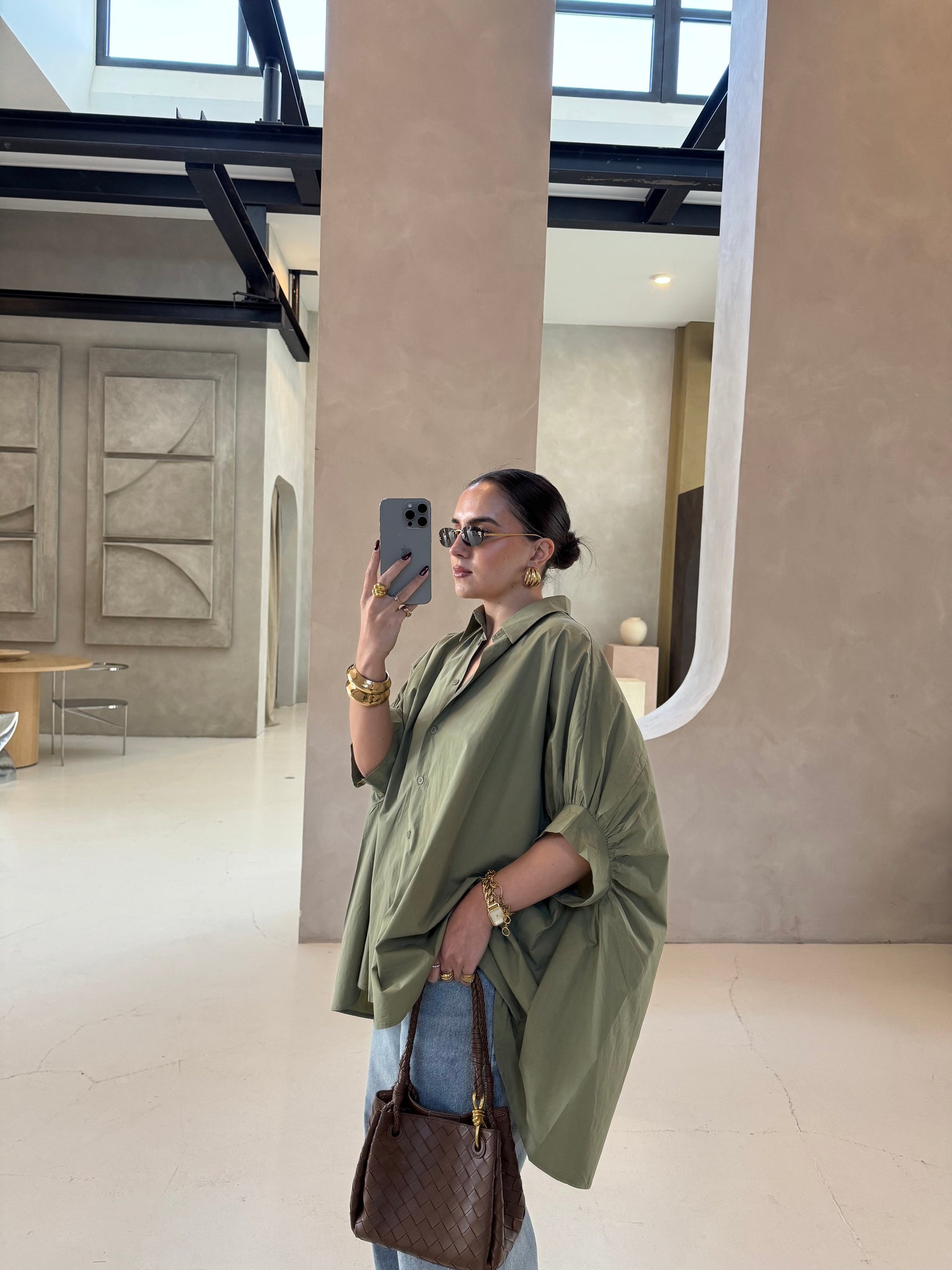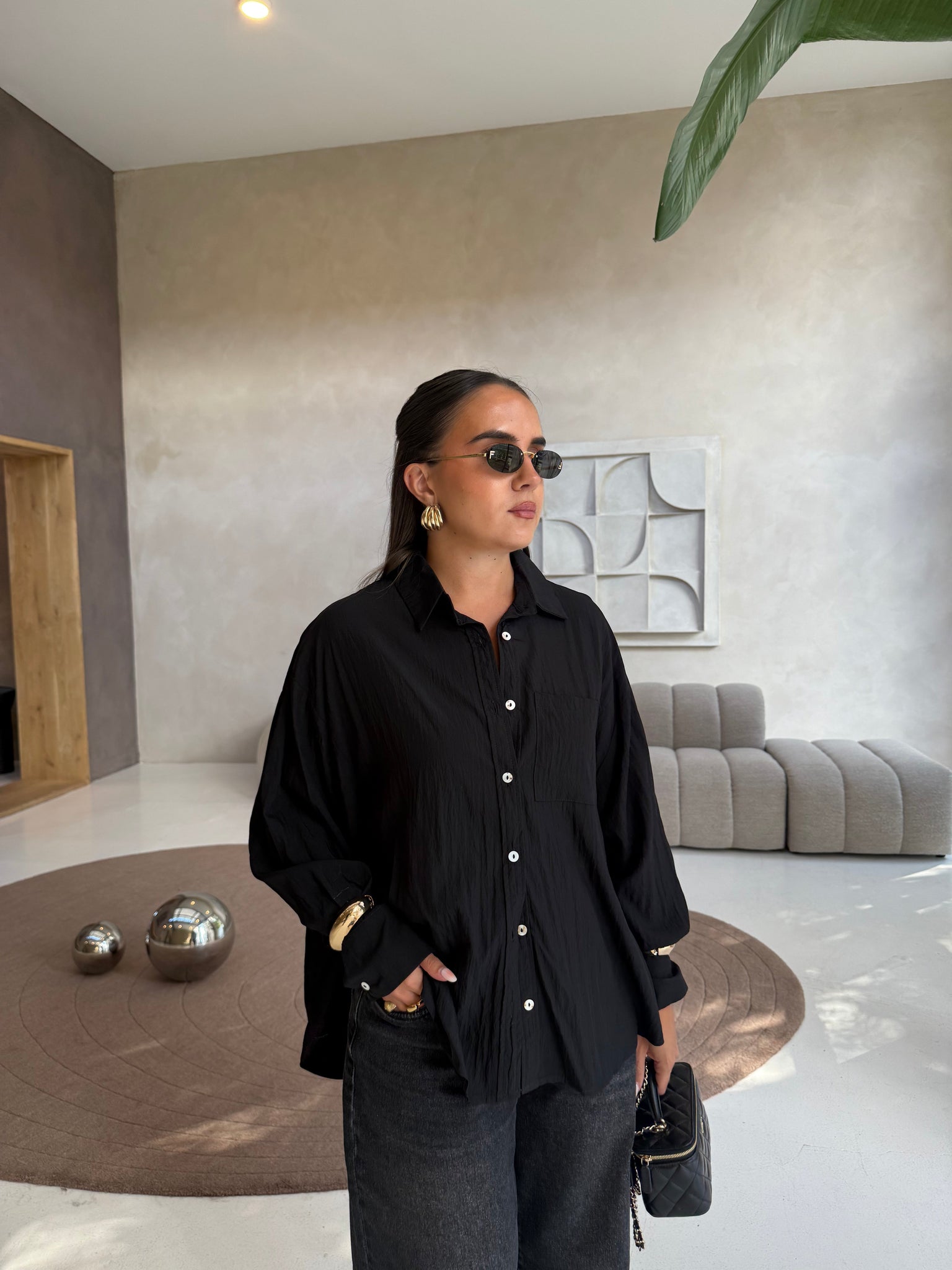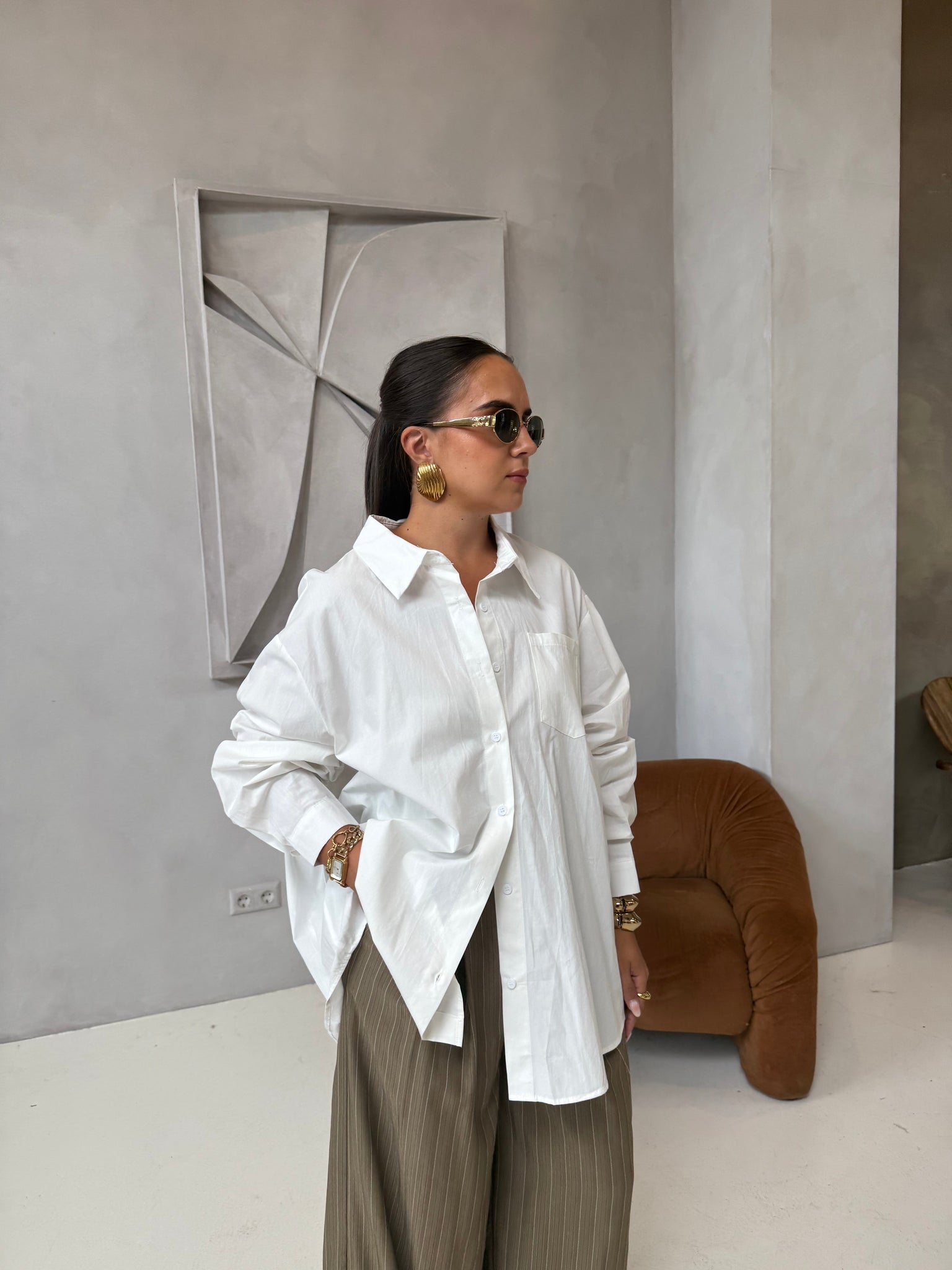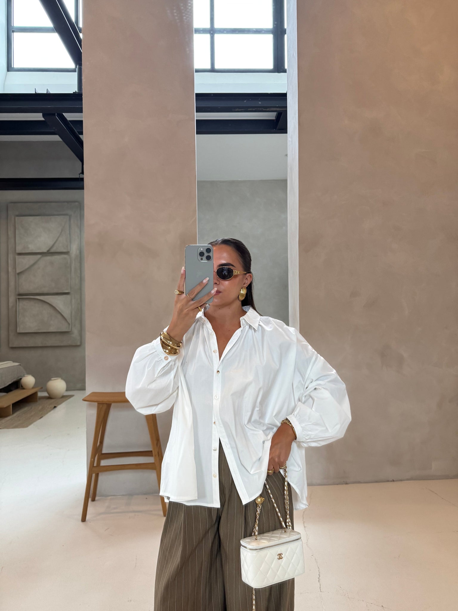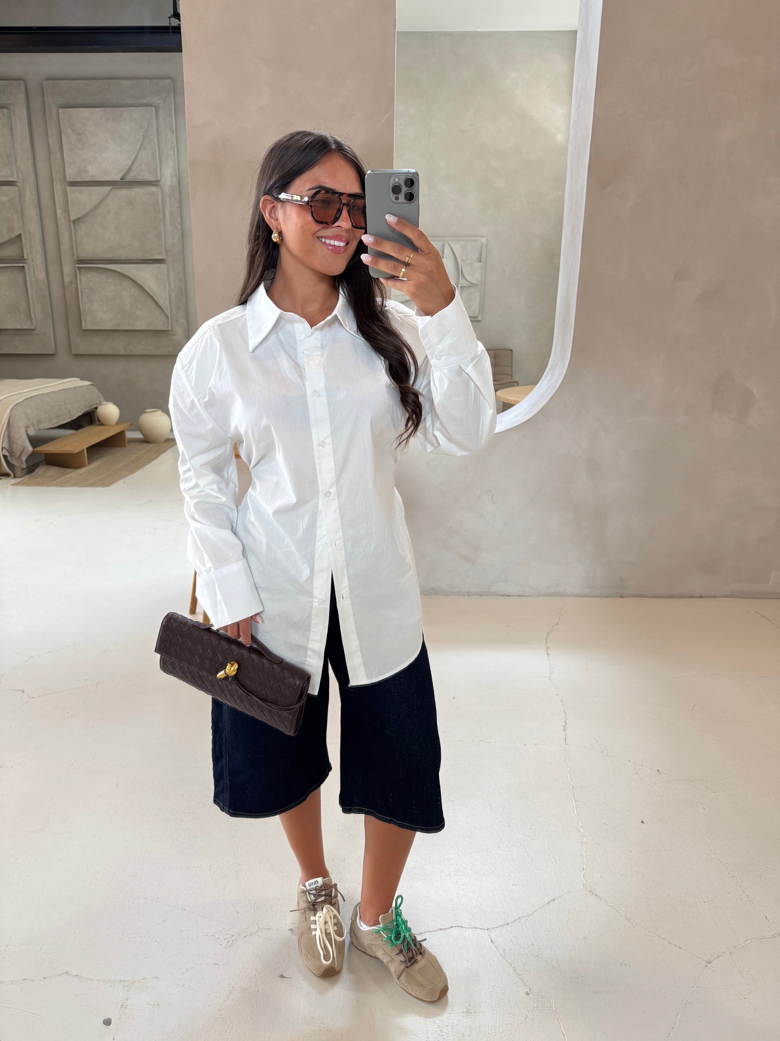 Chemise en taille unique. Le mannequin mesure 1m60. Composition : 100% coton.