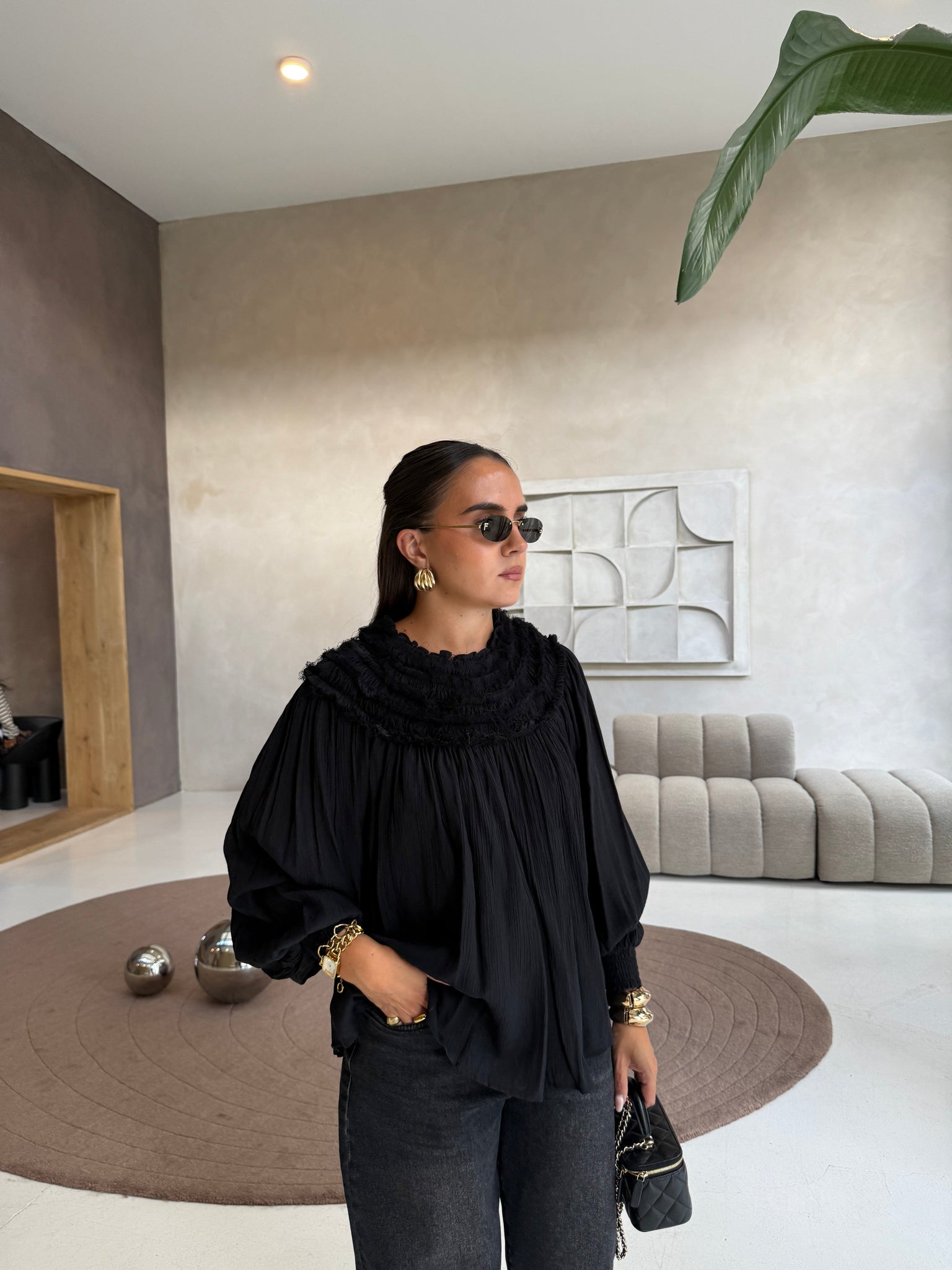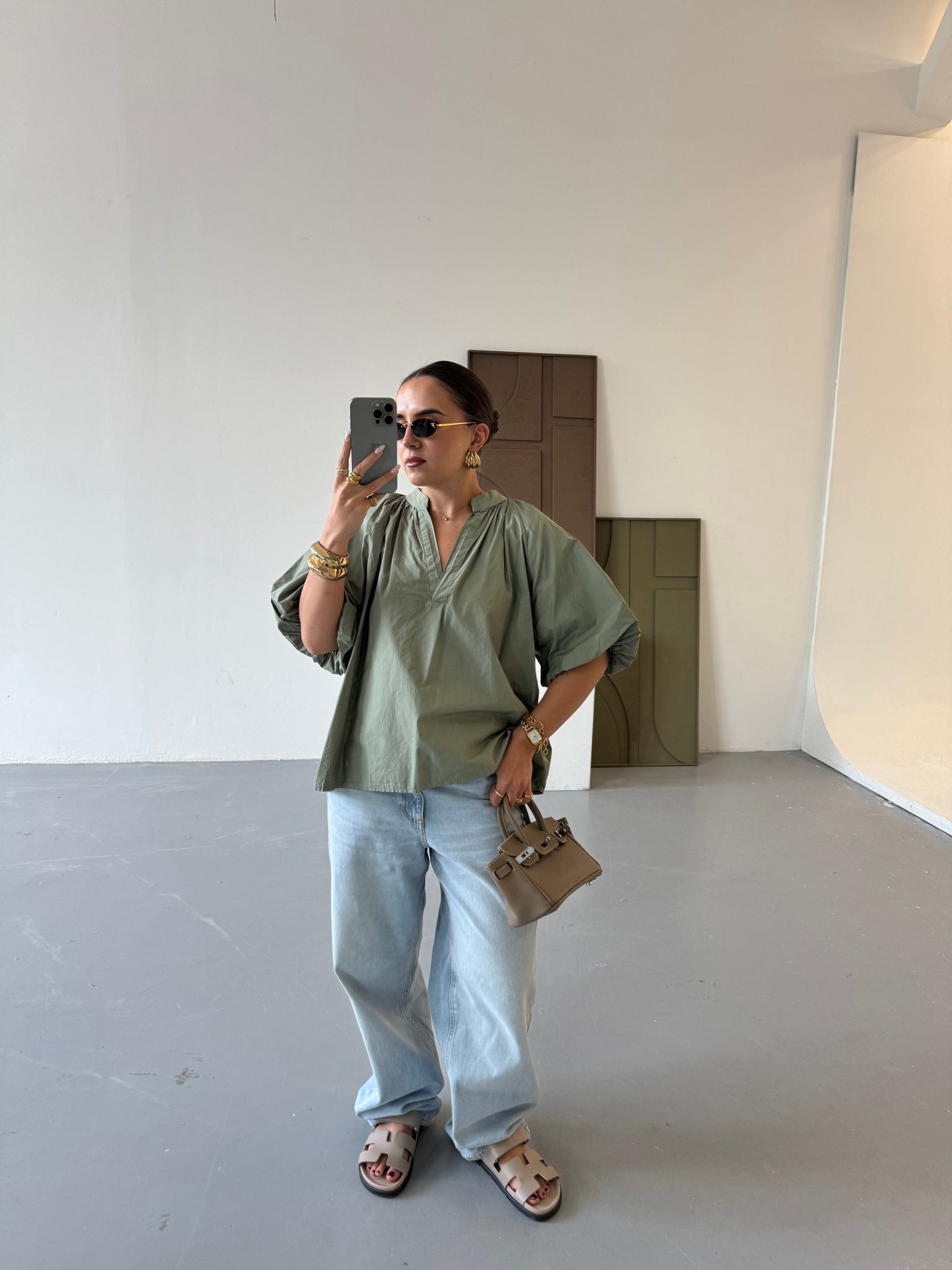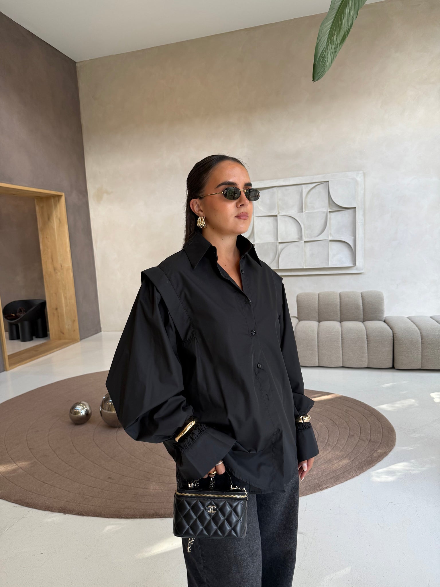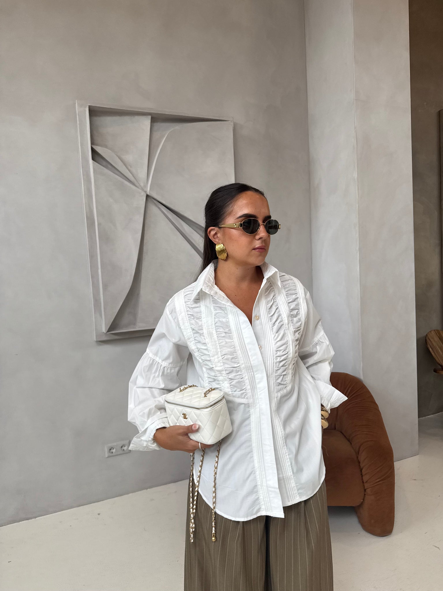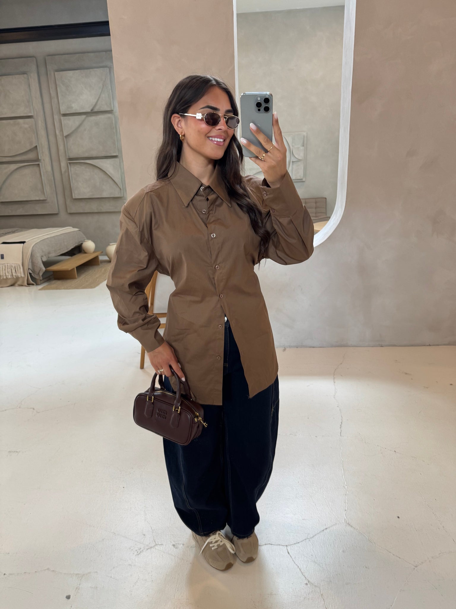 Chemise en taille unique. Le mannequin mesure 1m60. Composition : 100% coton.