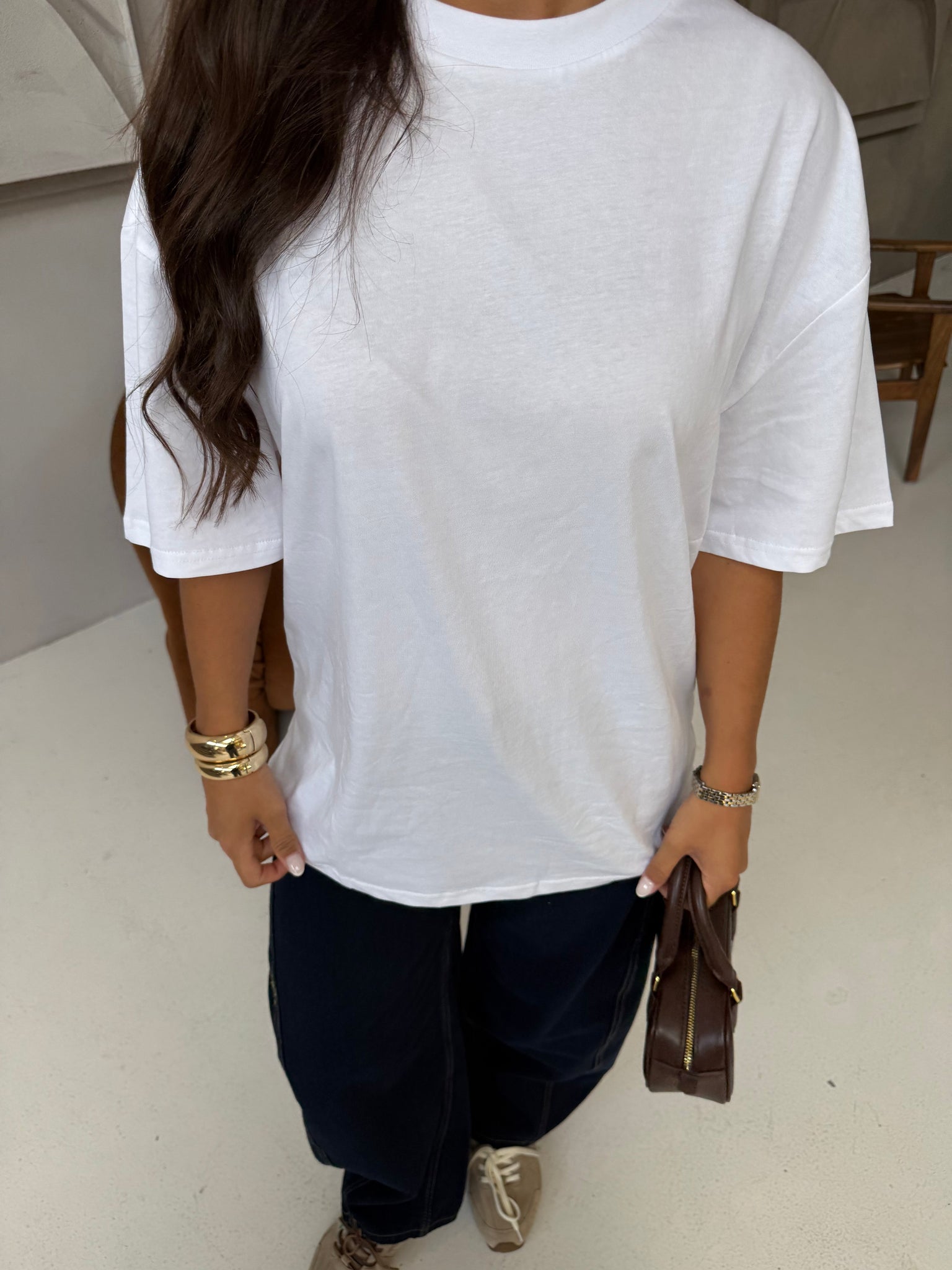 La mannequin porte une taille unique et fait 1m65. Composition : 100% Cotton.