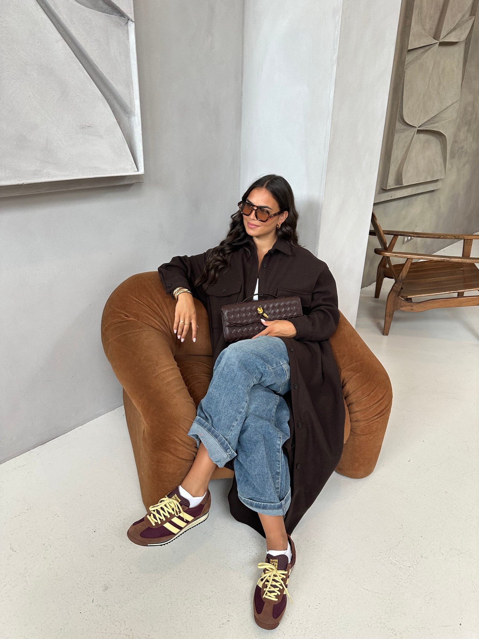 Le mannequin porte une taille M-L et mesure 1m65. Composition : 98% viscose, 2% laine.