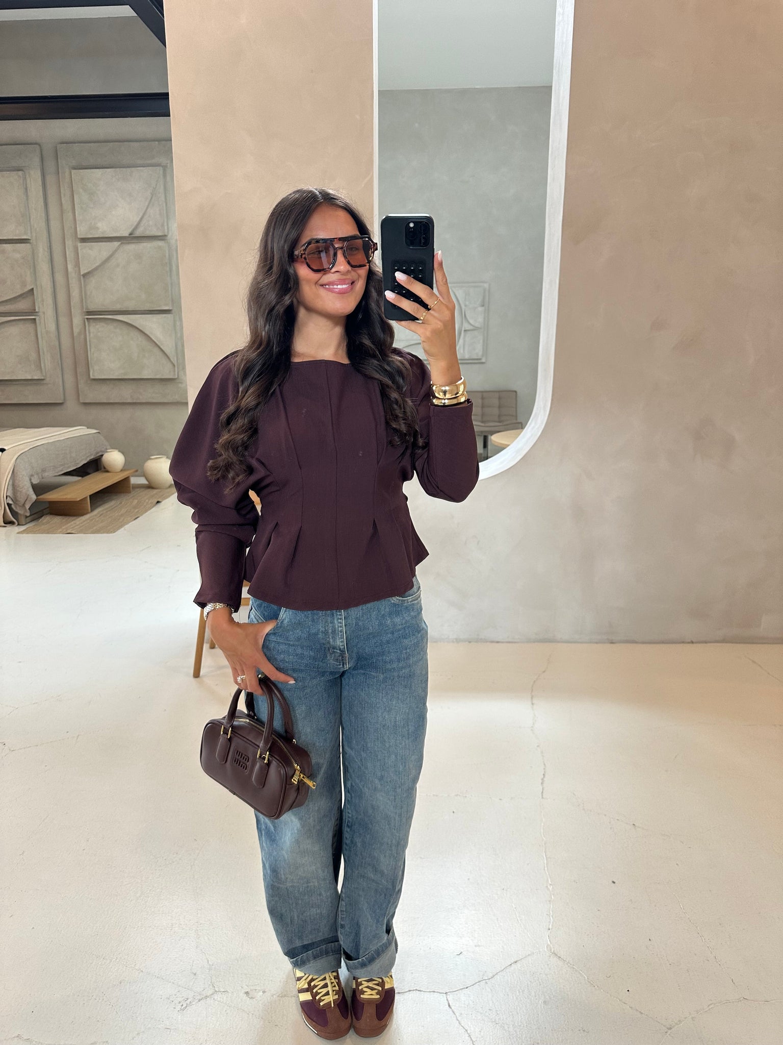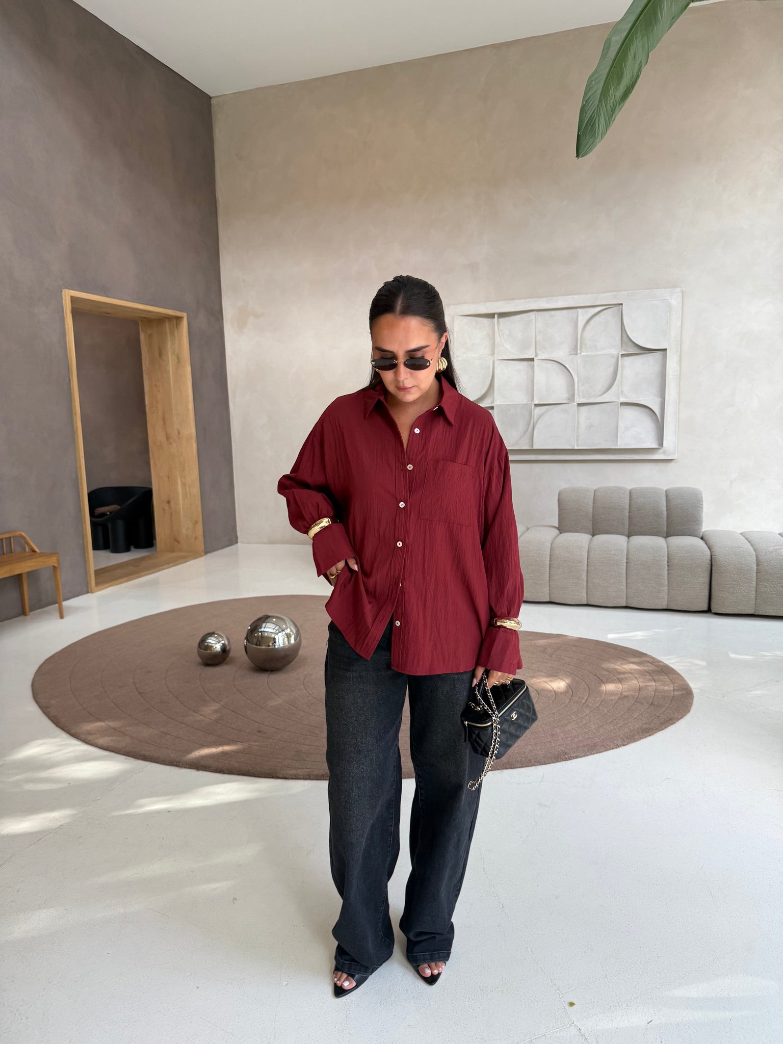 Chemise MELIS plissée au dos bordeaux (JY5104)