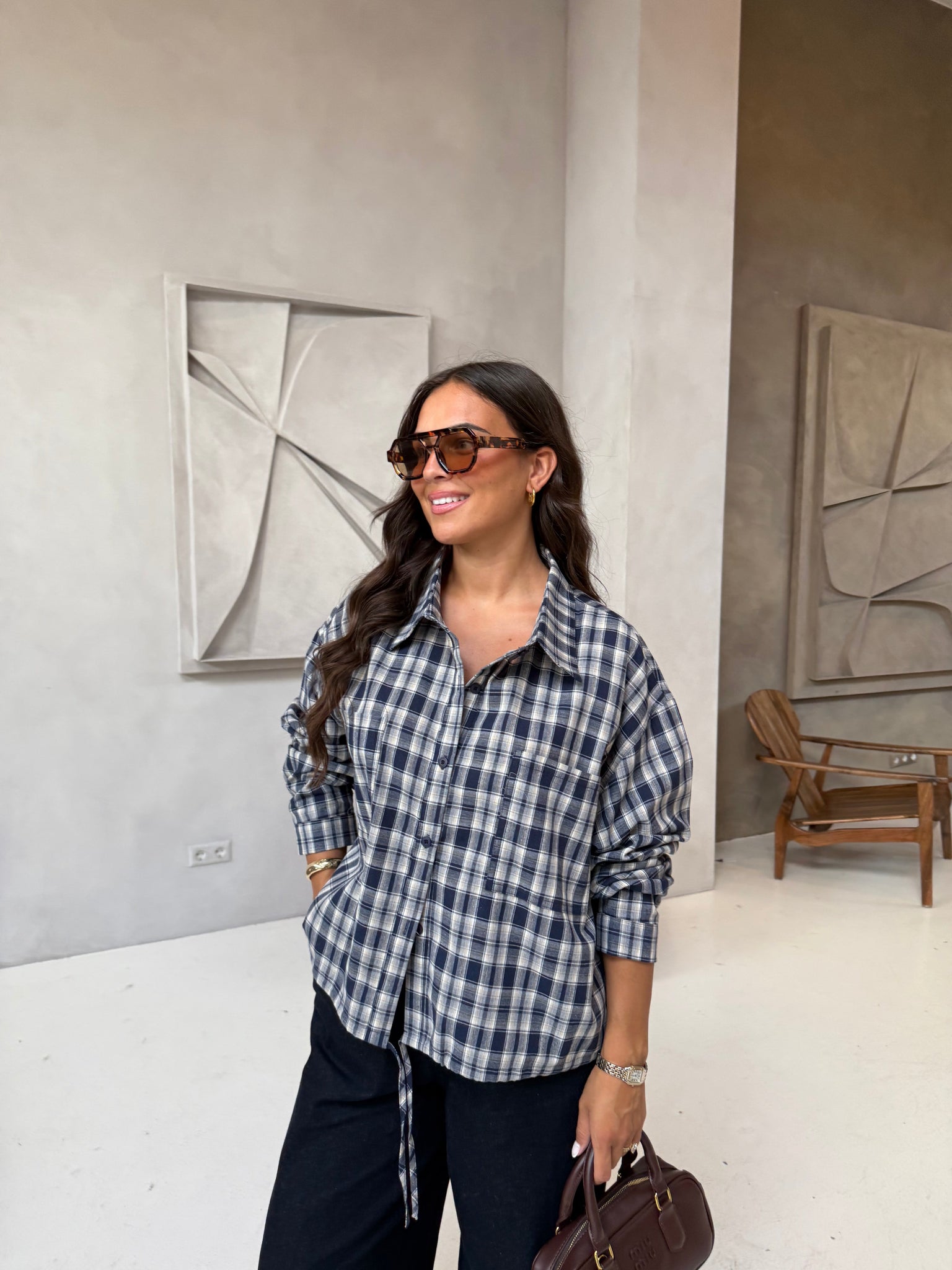 Chemise en taille unique. Le mannequin mesure 1m65. Composition : 65% coton, 35% polyester.