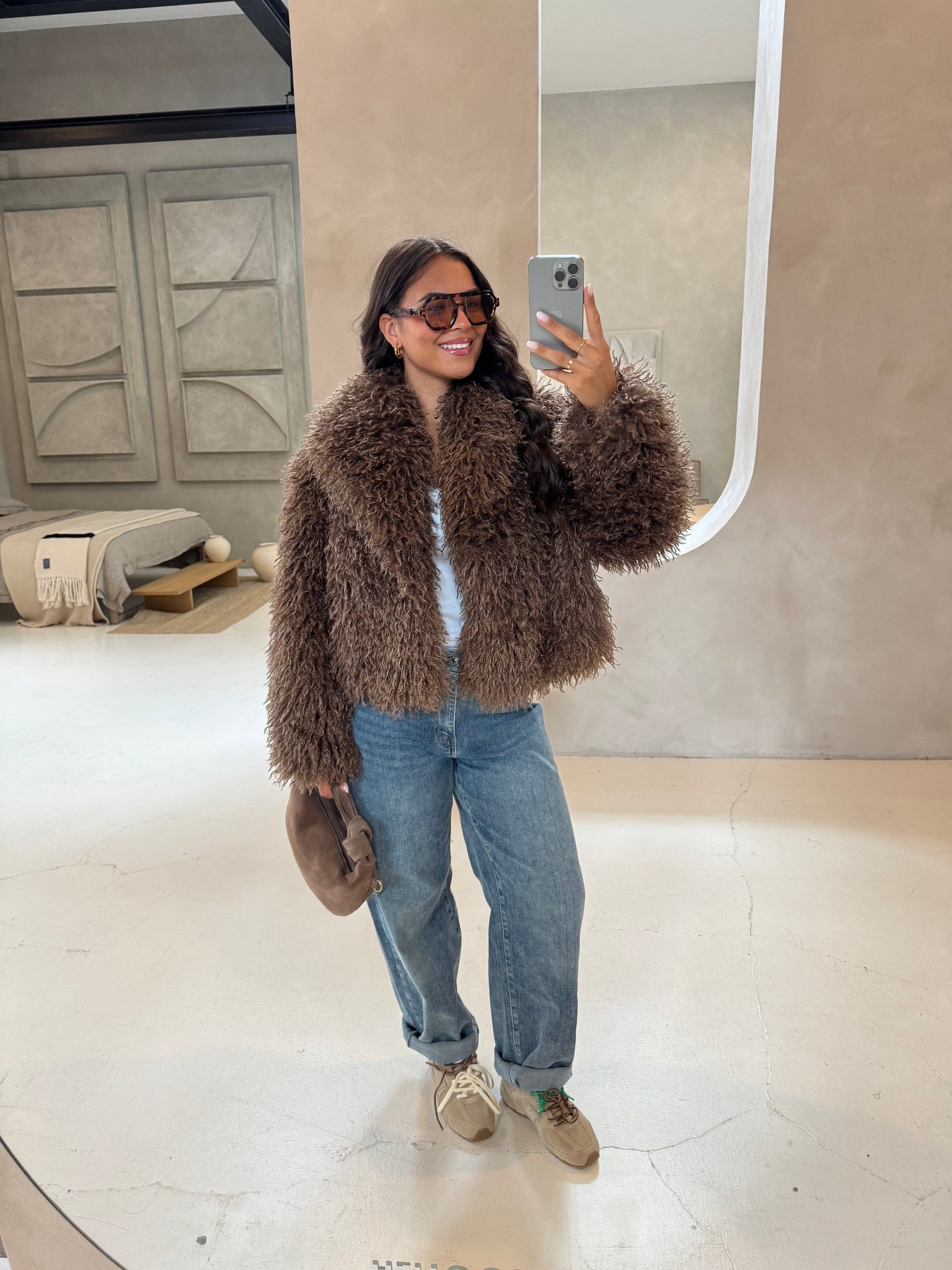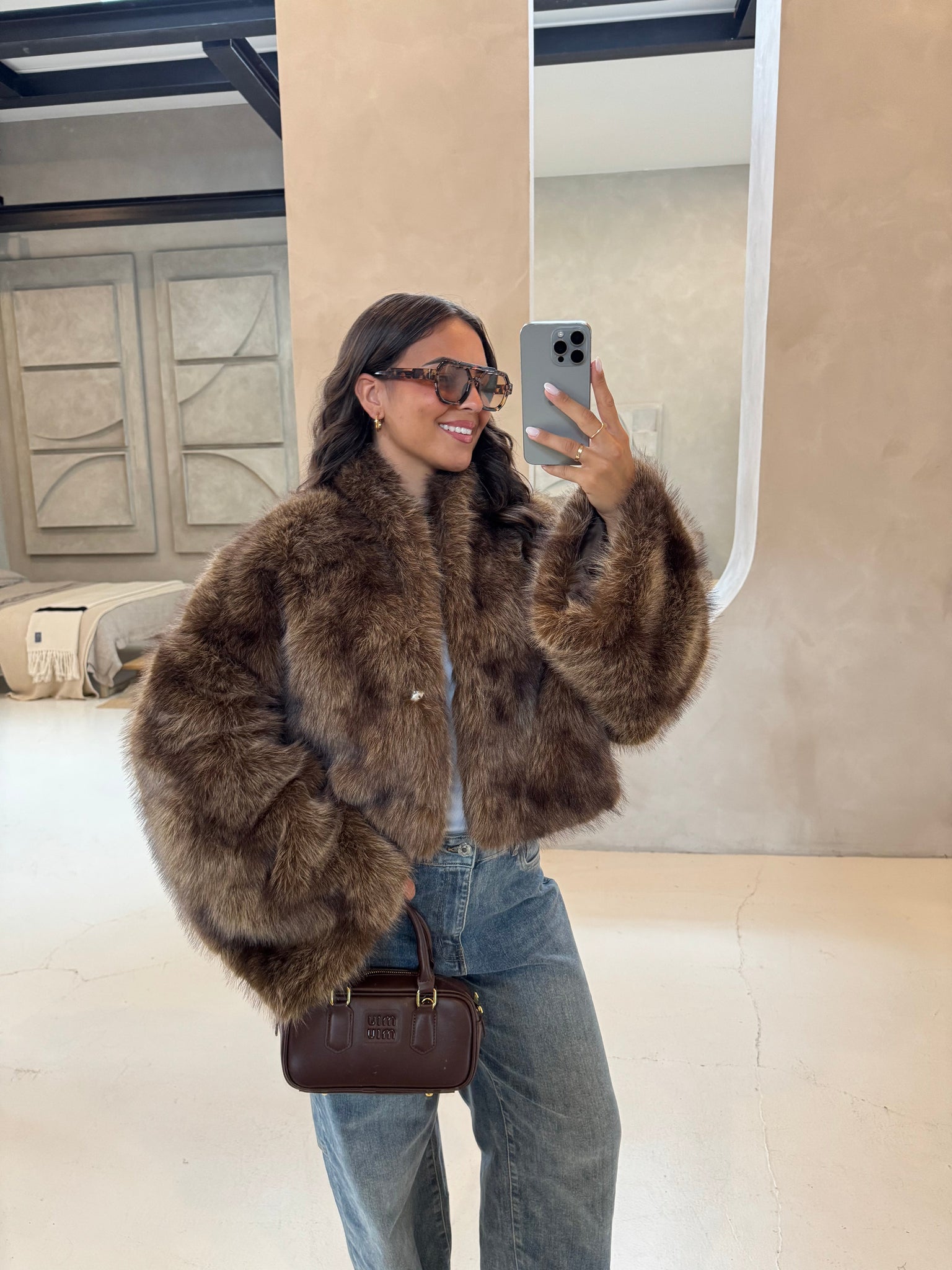 Fourrure courte marron manche evasées (JZ3041)