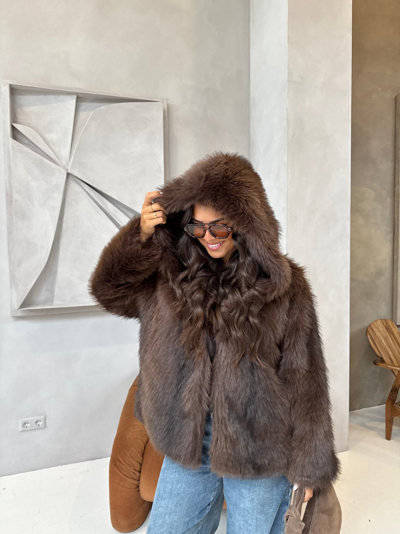 Fourrure à capuche marron (JZ3043)