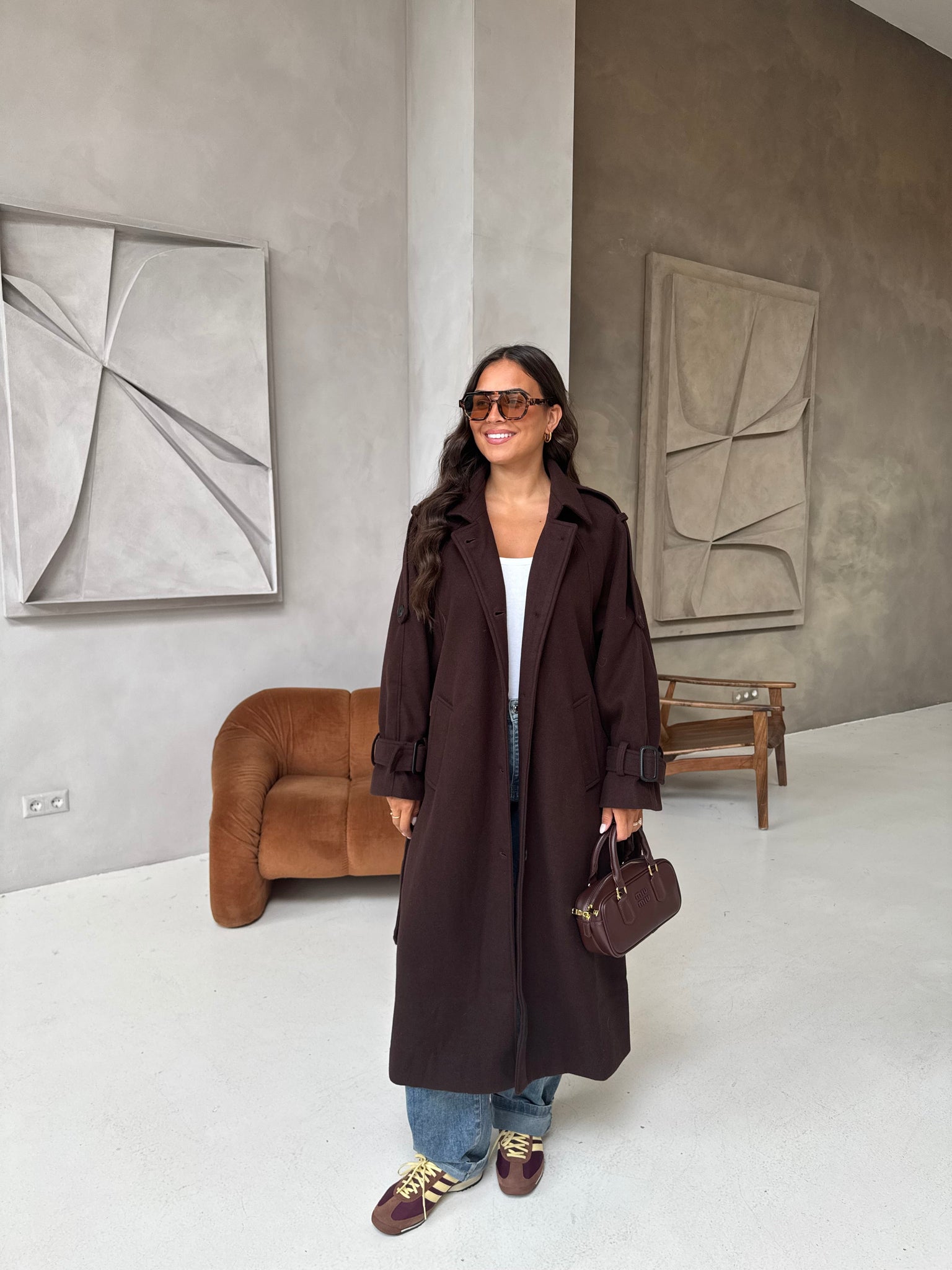 Manteau ZANA long choco (W24768)