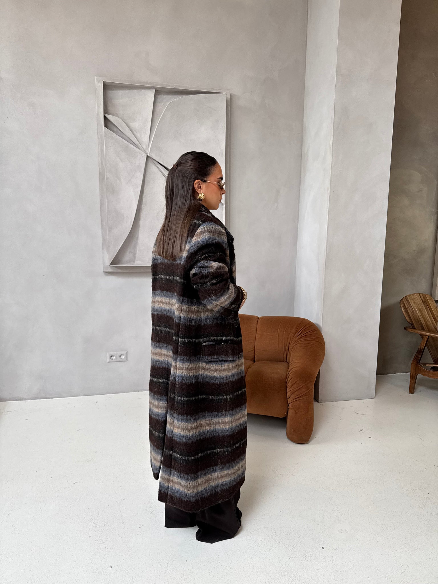 Manteau BELLA long marron à carreaux (W24768)