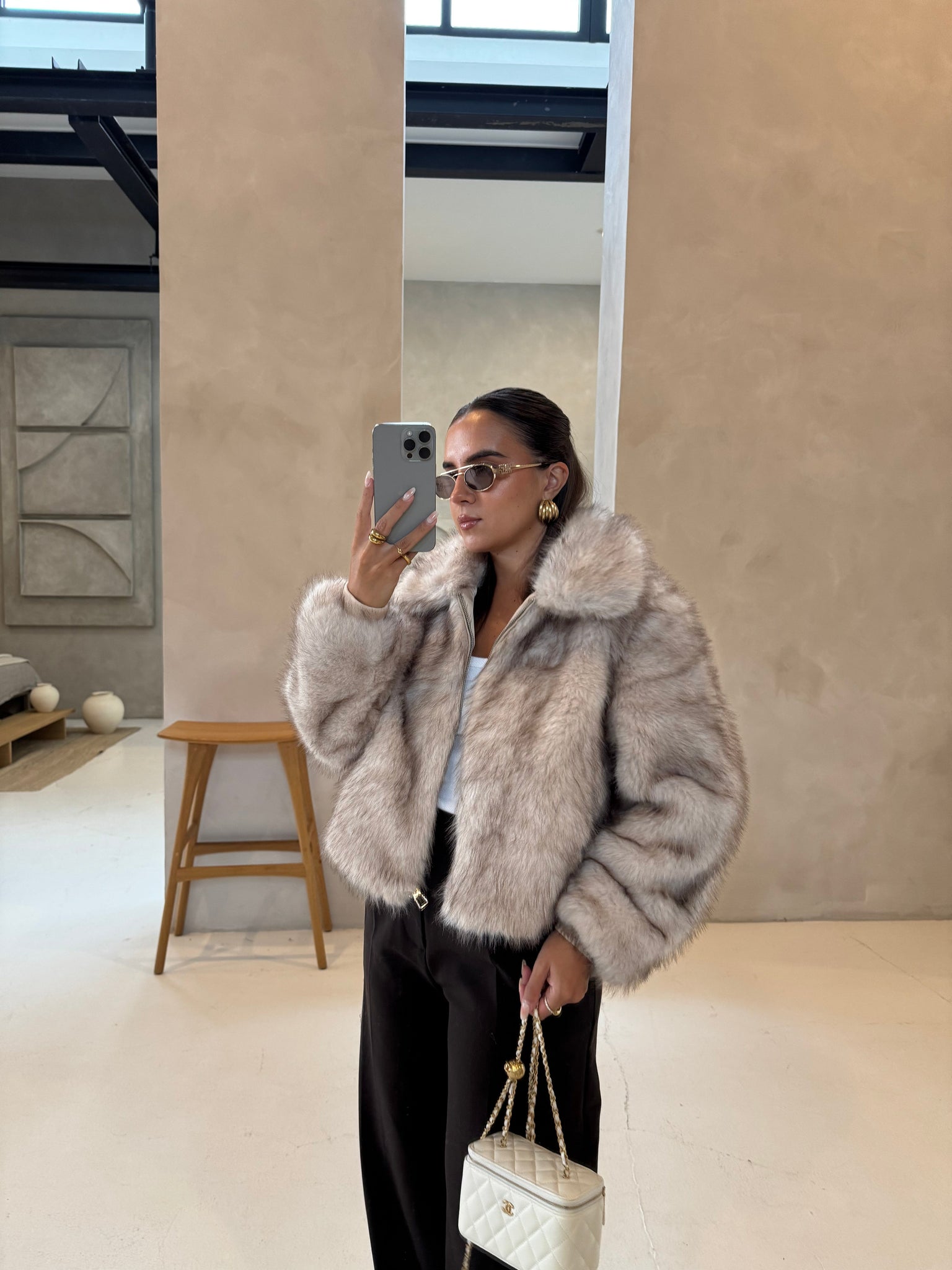Fourrure à capuche beige (JZ3043)