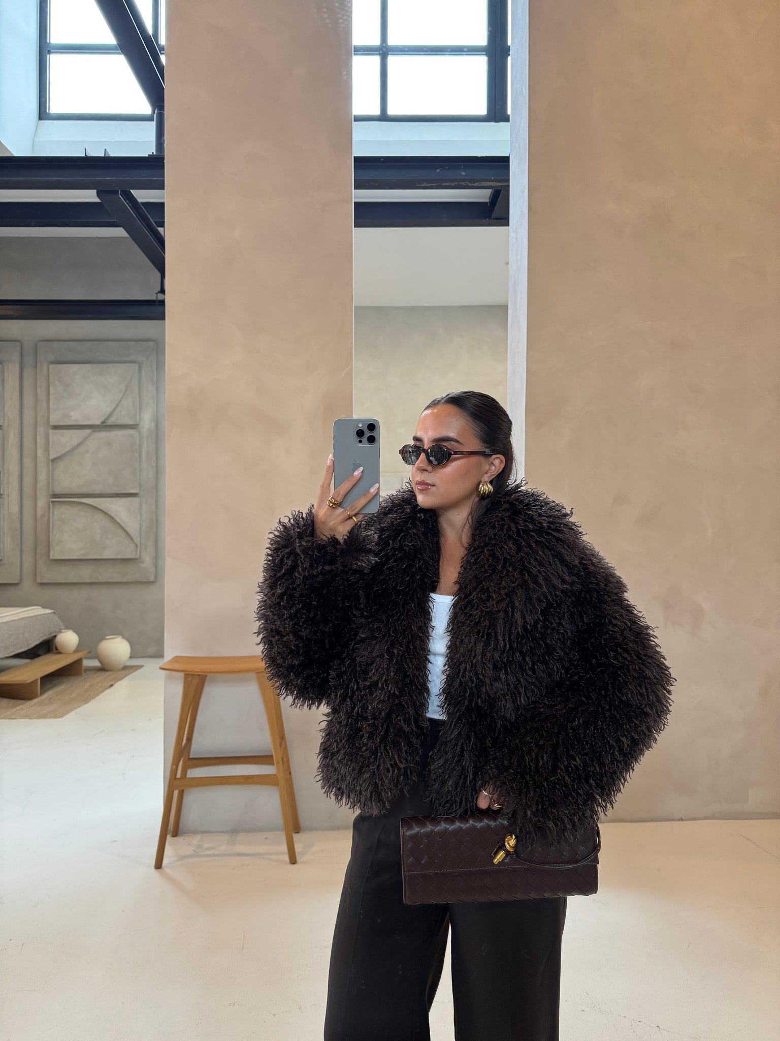 Veste en laine bouclé marron (W24752)