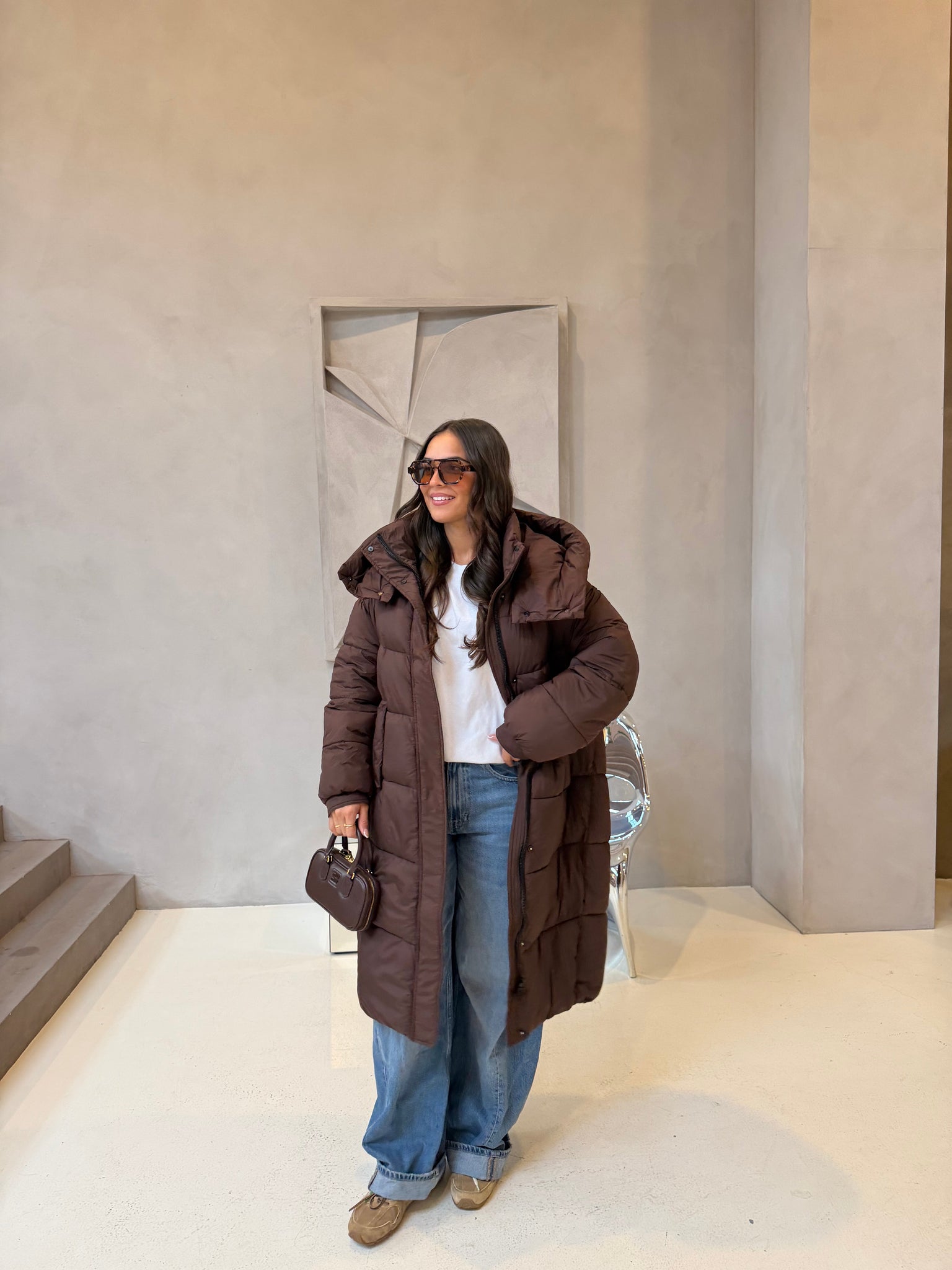 Doudoune longue marron (8780)