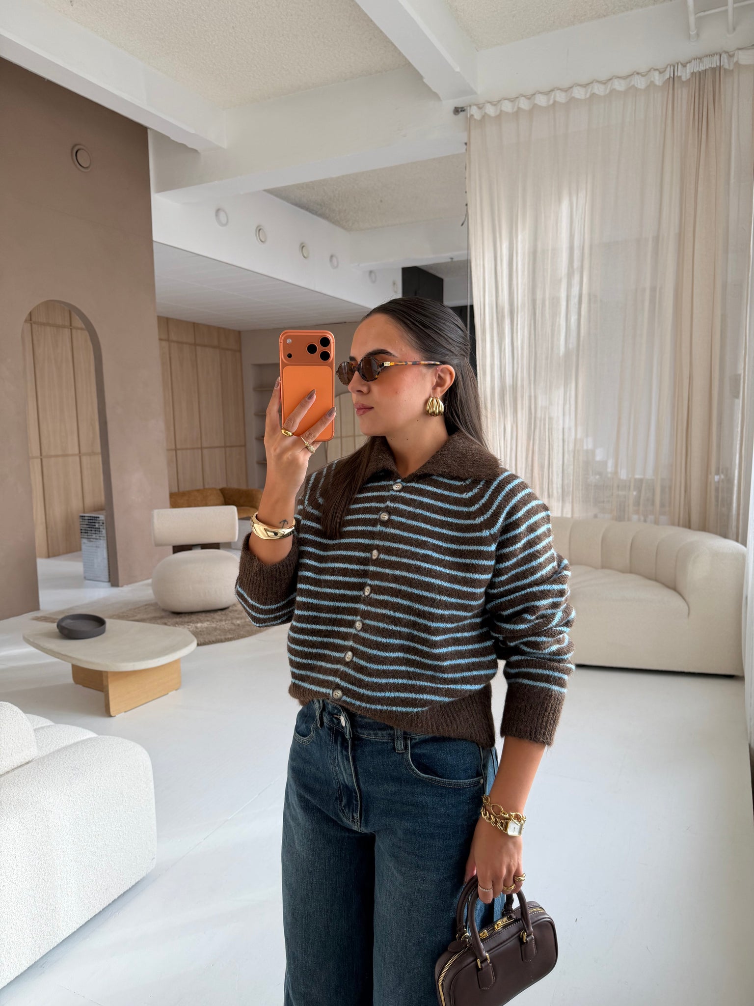 Pull rayures gilet marron (6230)