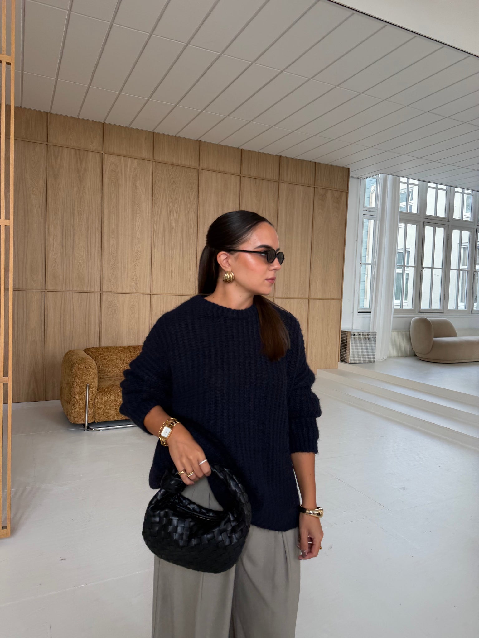 Le mannequin porte une taille s. Composition : 63% polyester, 20% viscose, 10% acrylic, 7% laine.