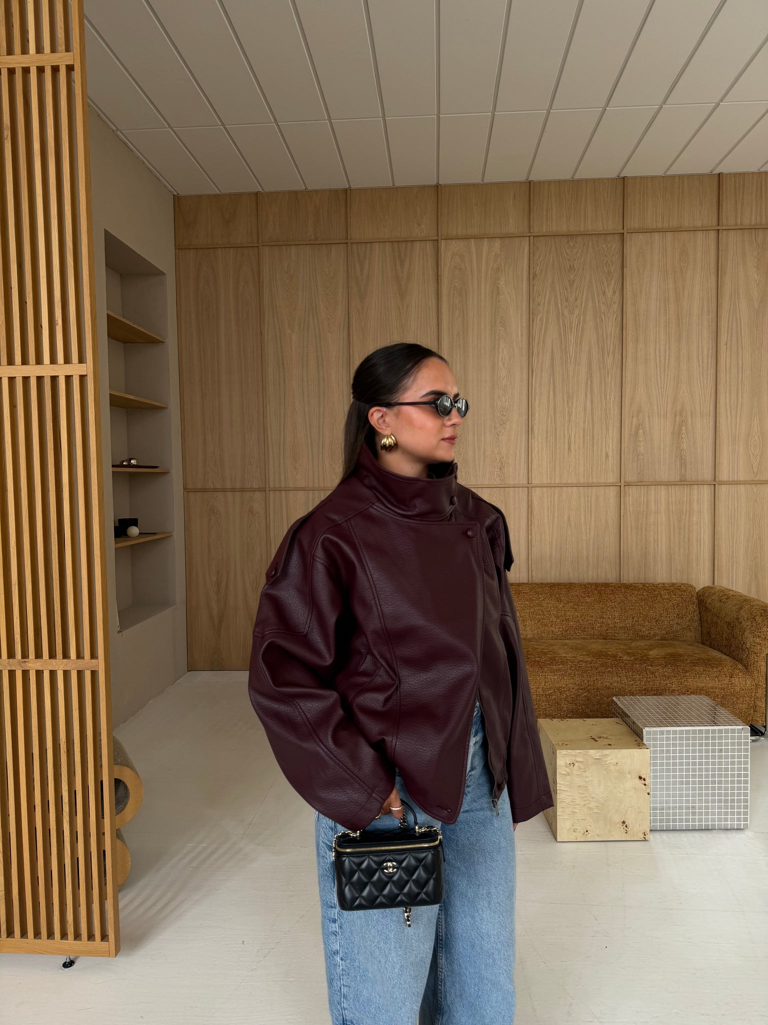 Veste en similicuir bordeaux oversize KZ (8822)