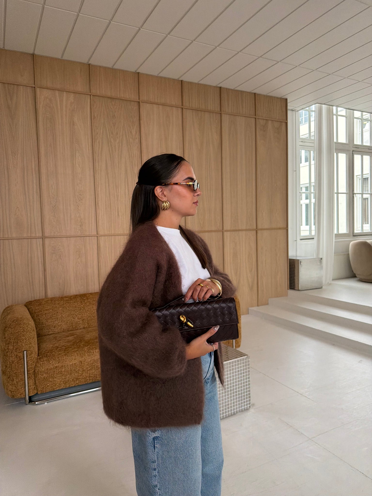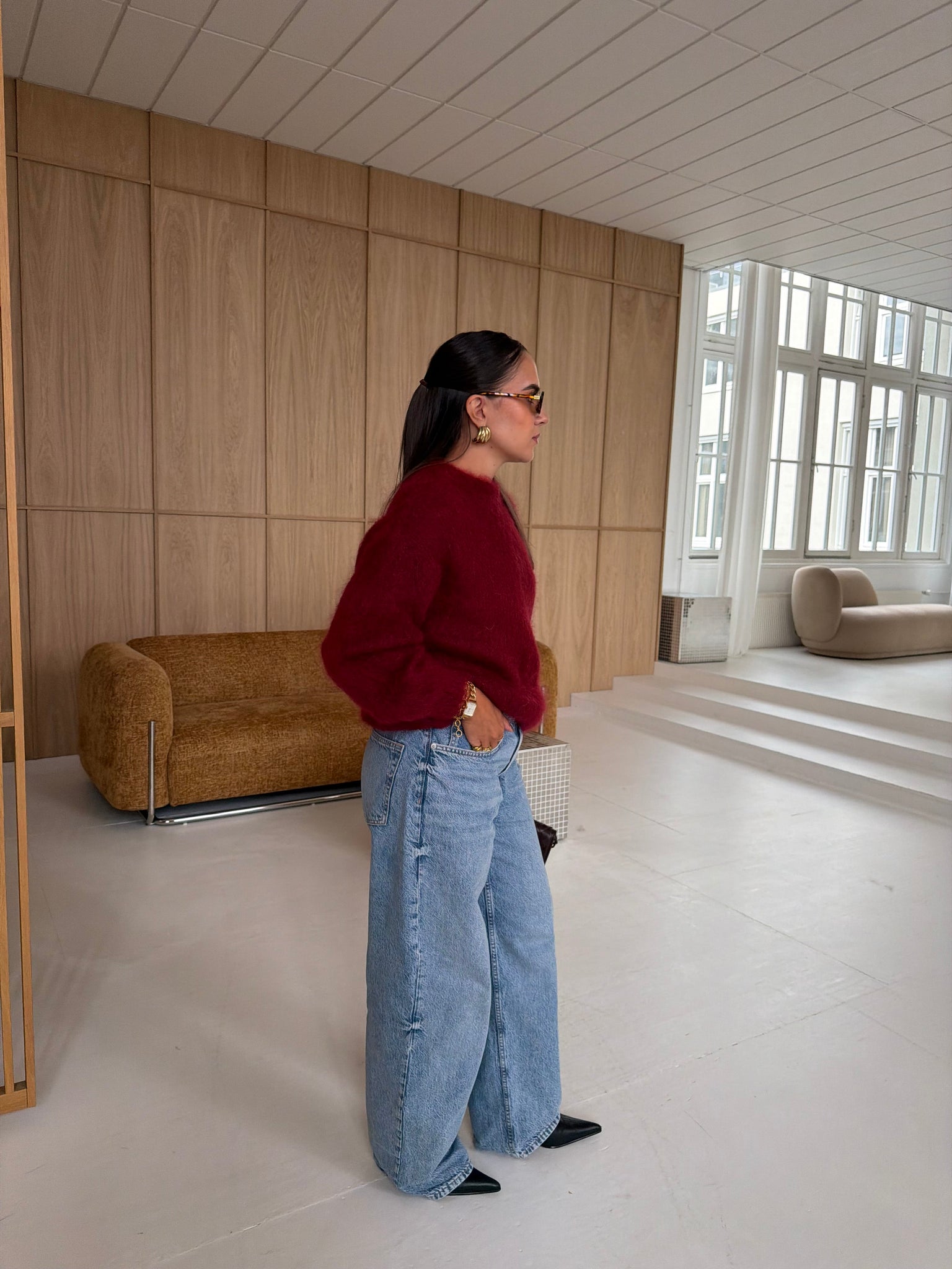 Pull en taille unique. Le mannequin mesure 1m65. Composition : 80% kid mohair, 17% polyamide,...