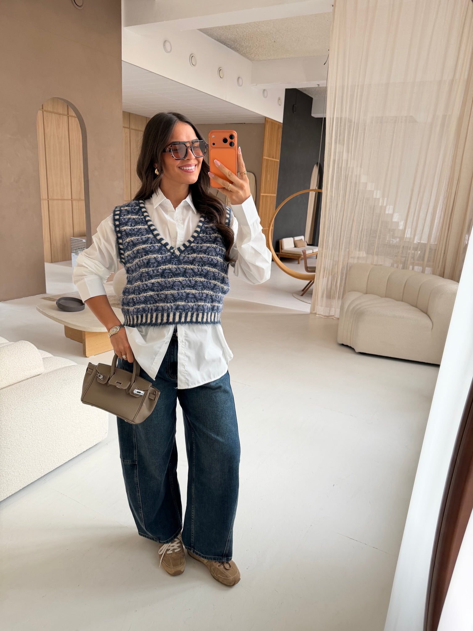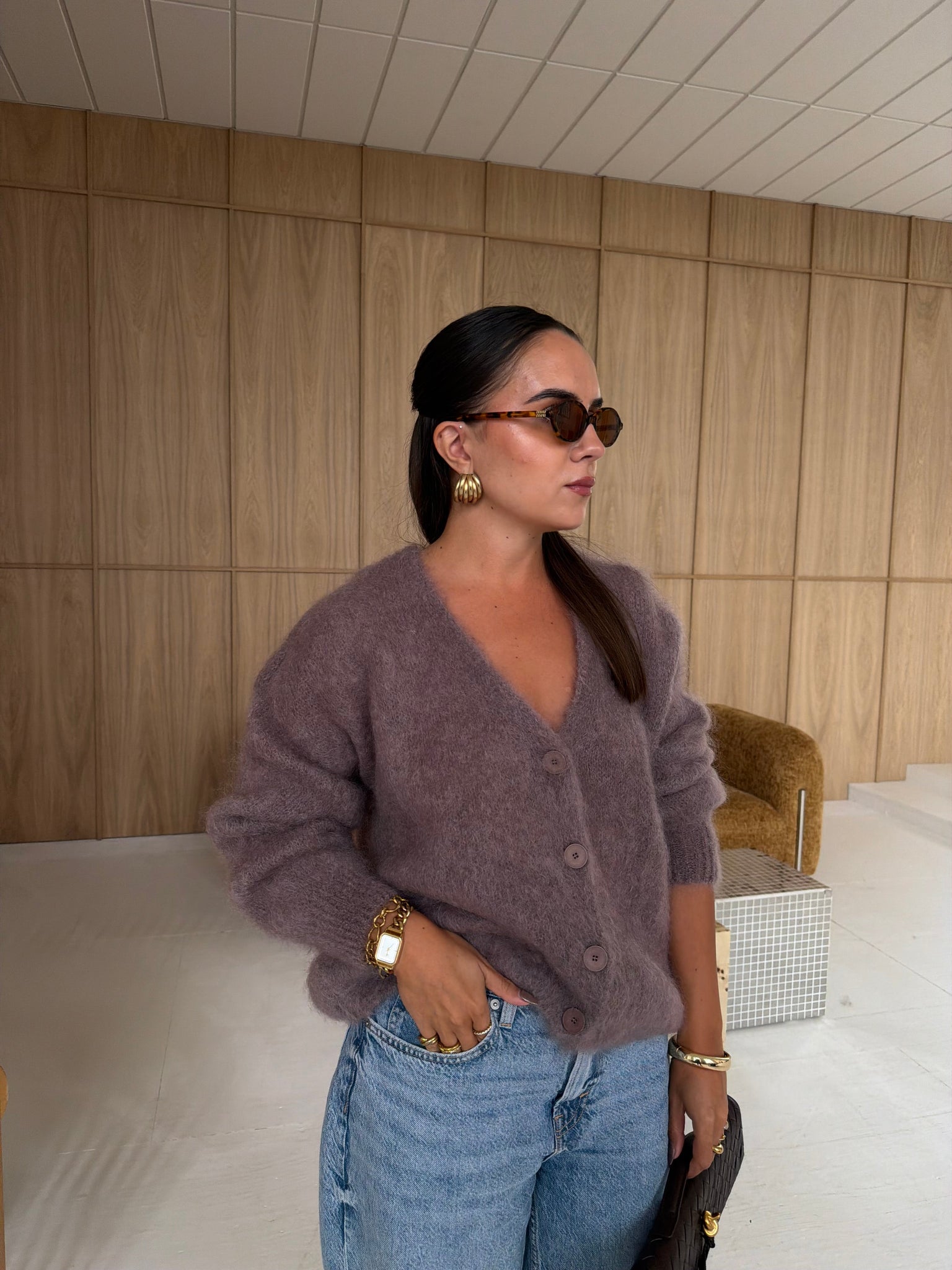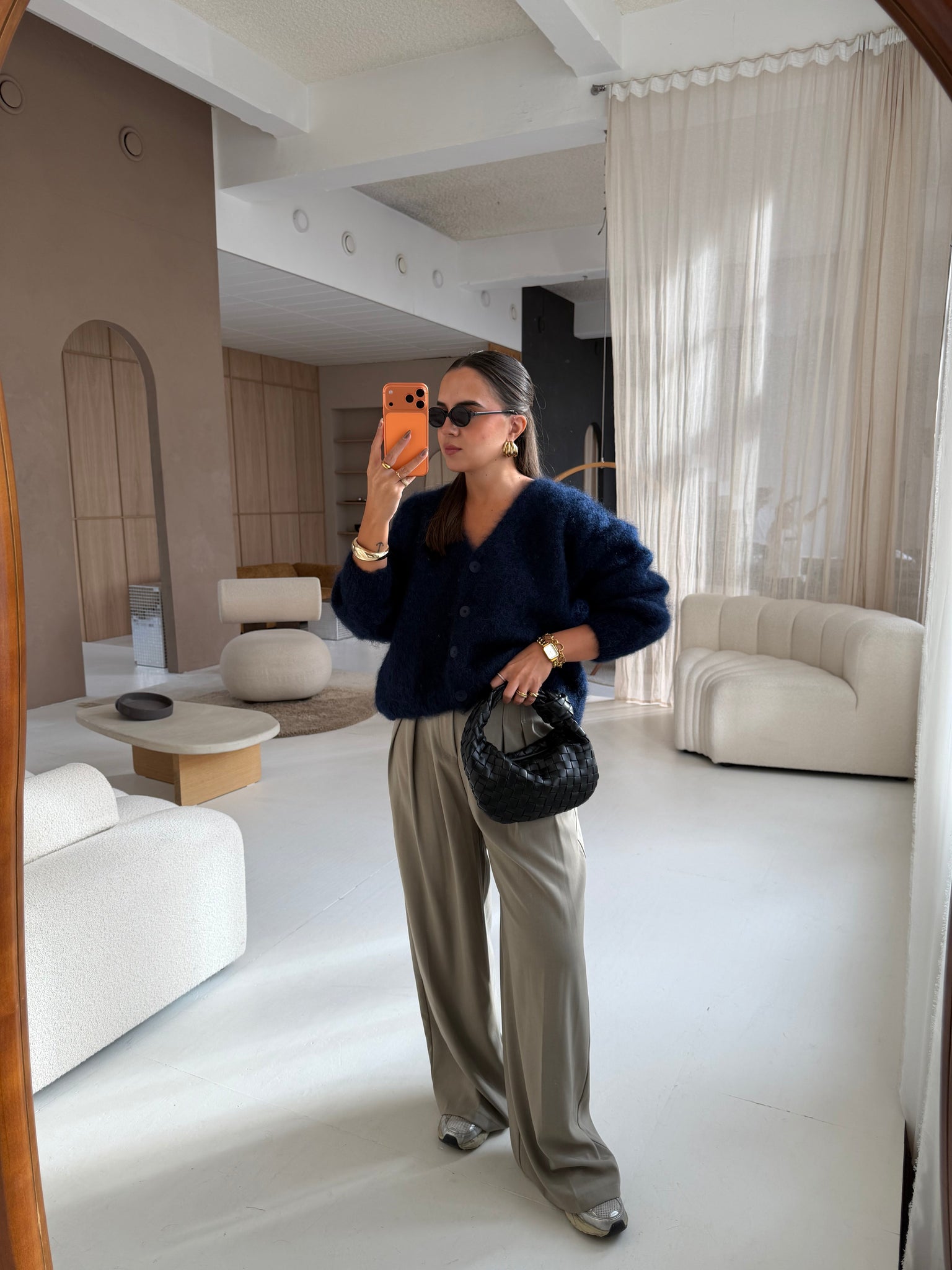 Gilet kid MOHAIR bouton bleu marine (23356)