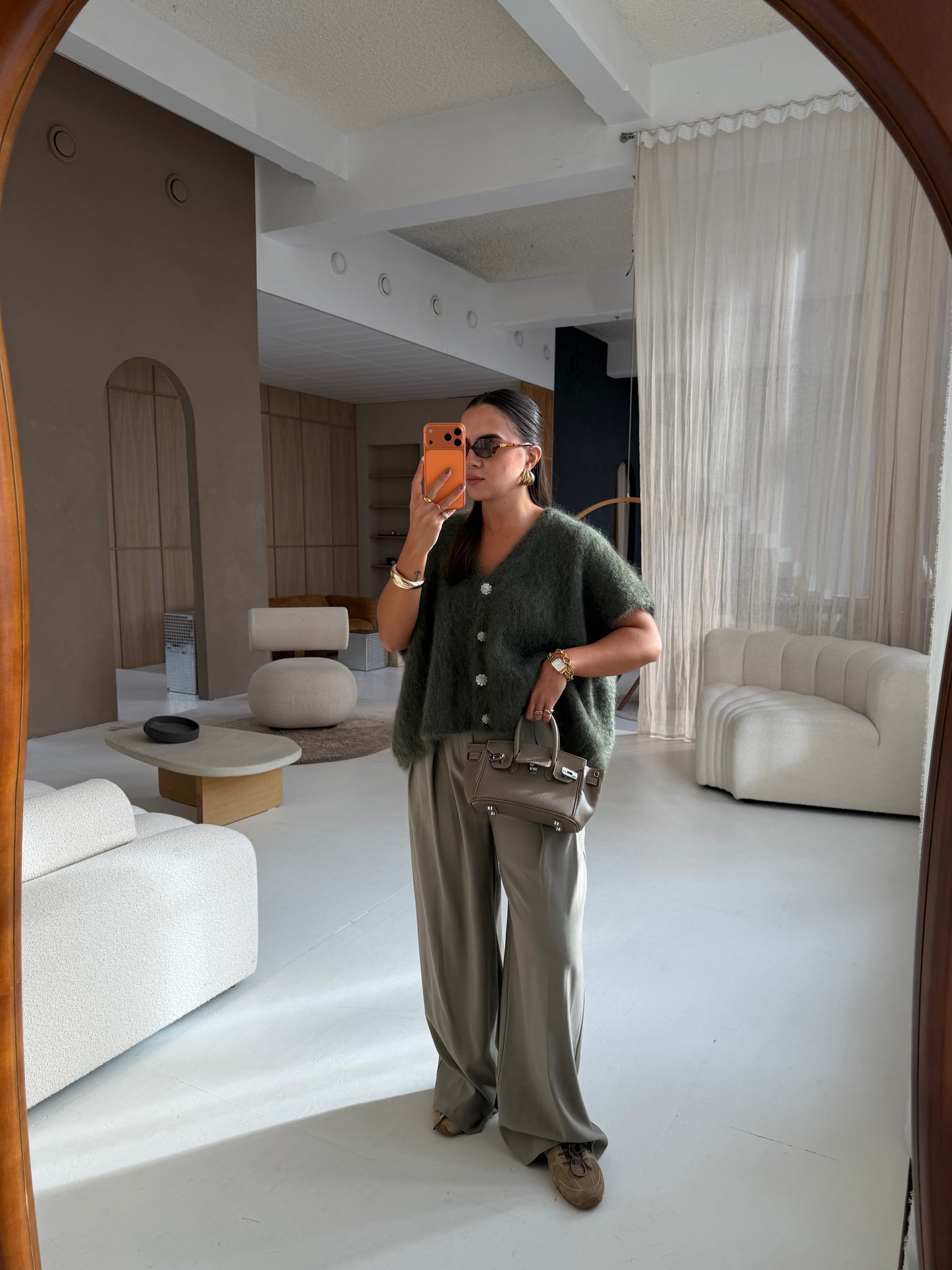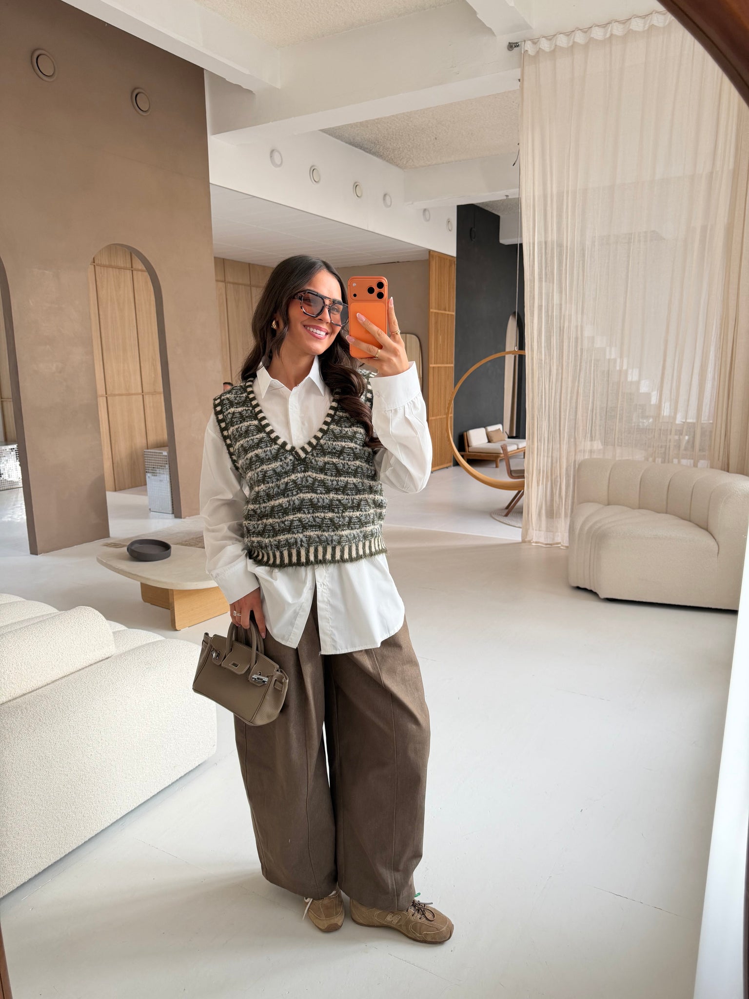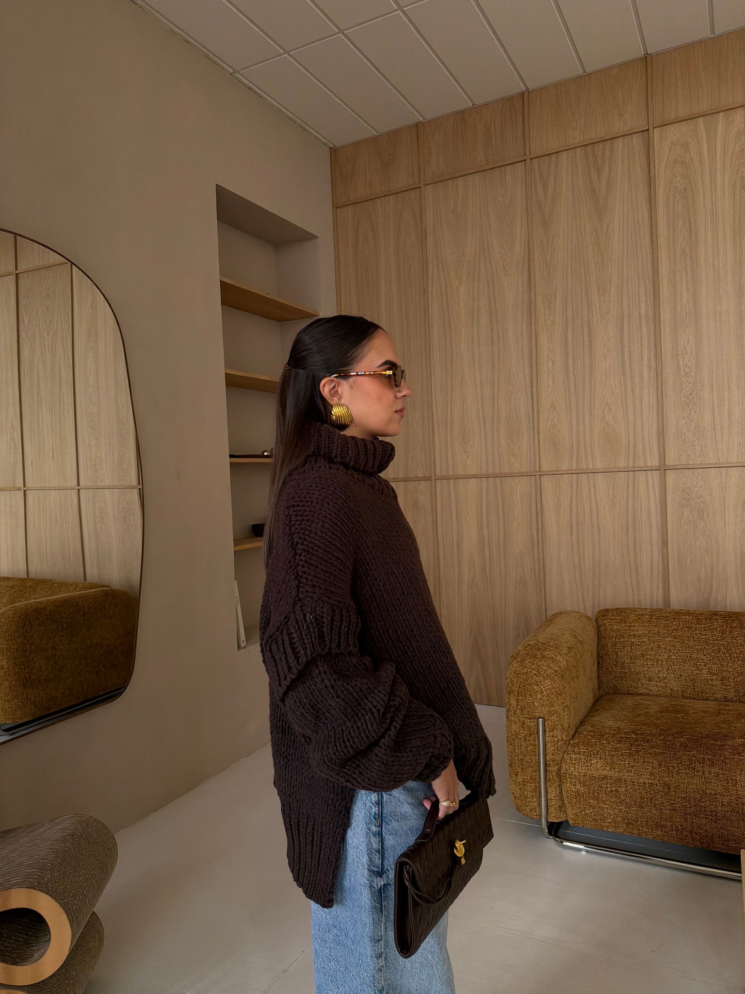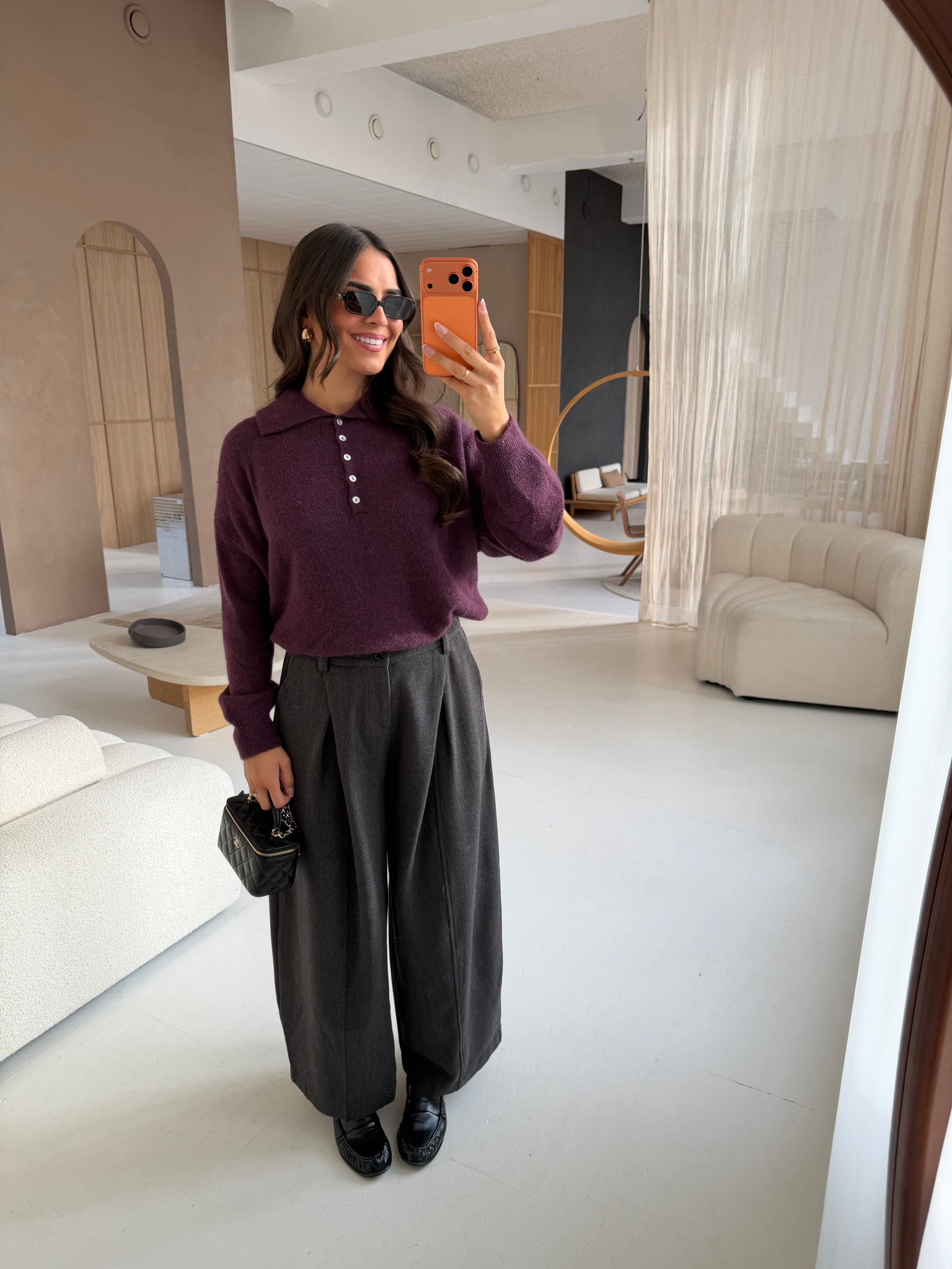 Le mannequin porte une taille M et mesure 1m65. Composition : 100% laine.