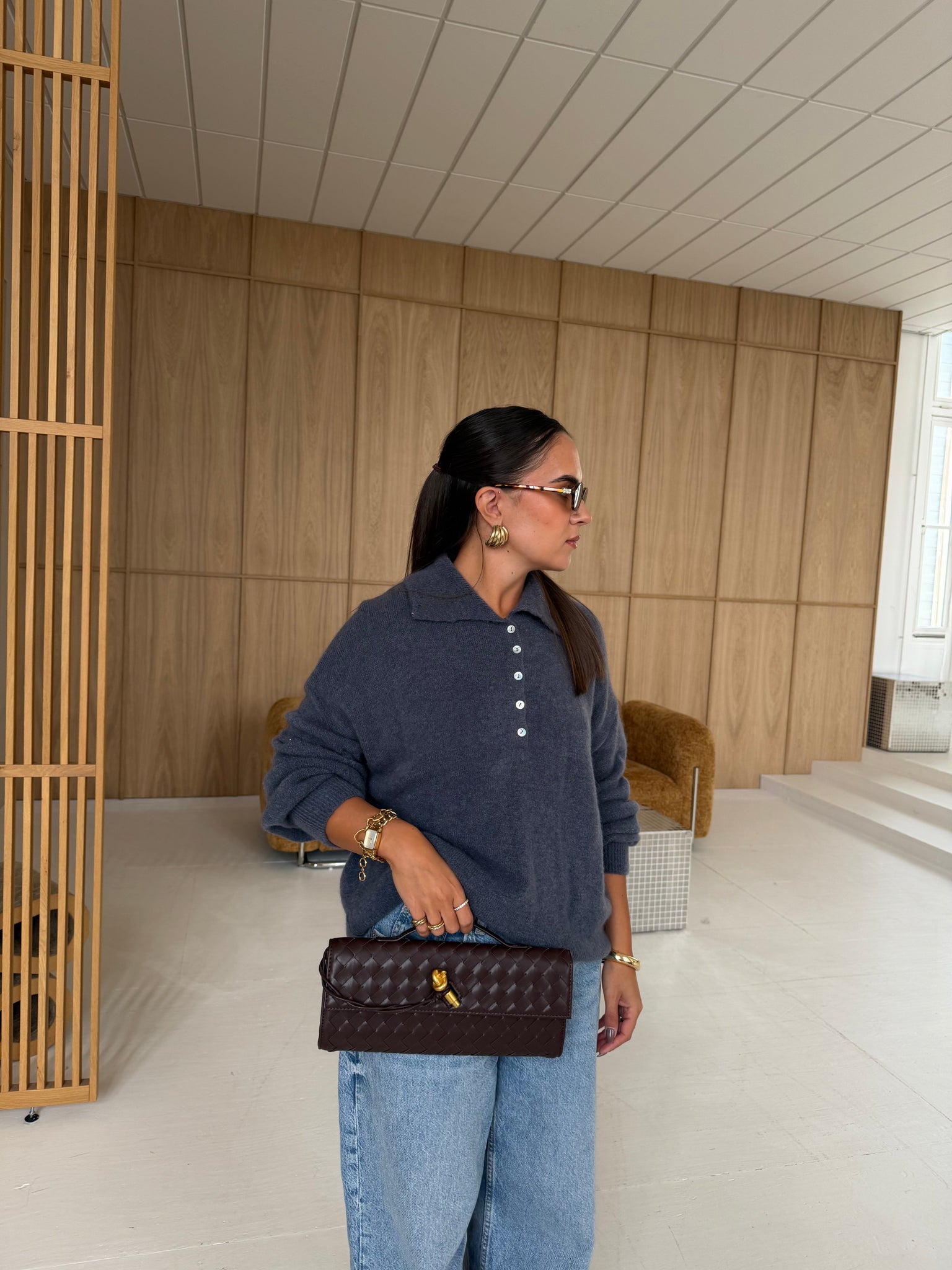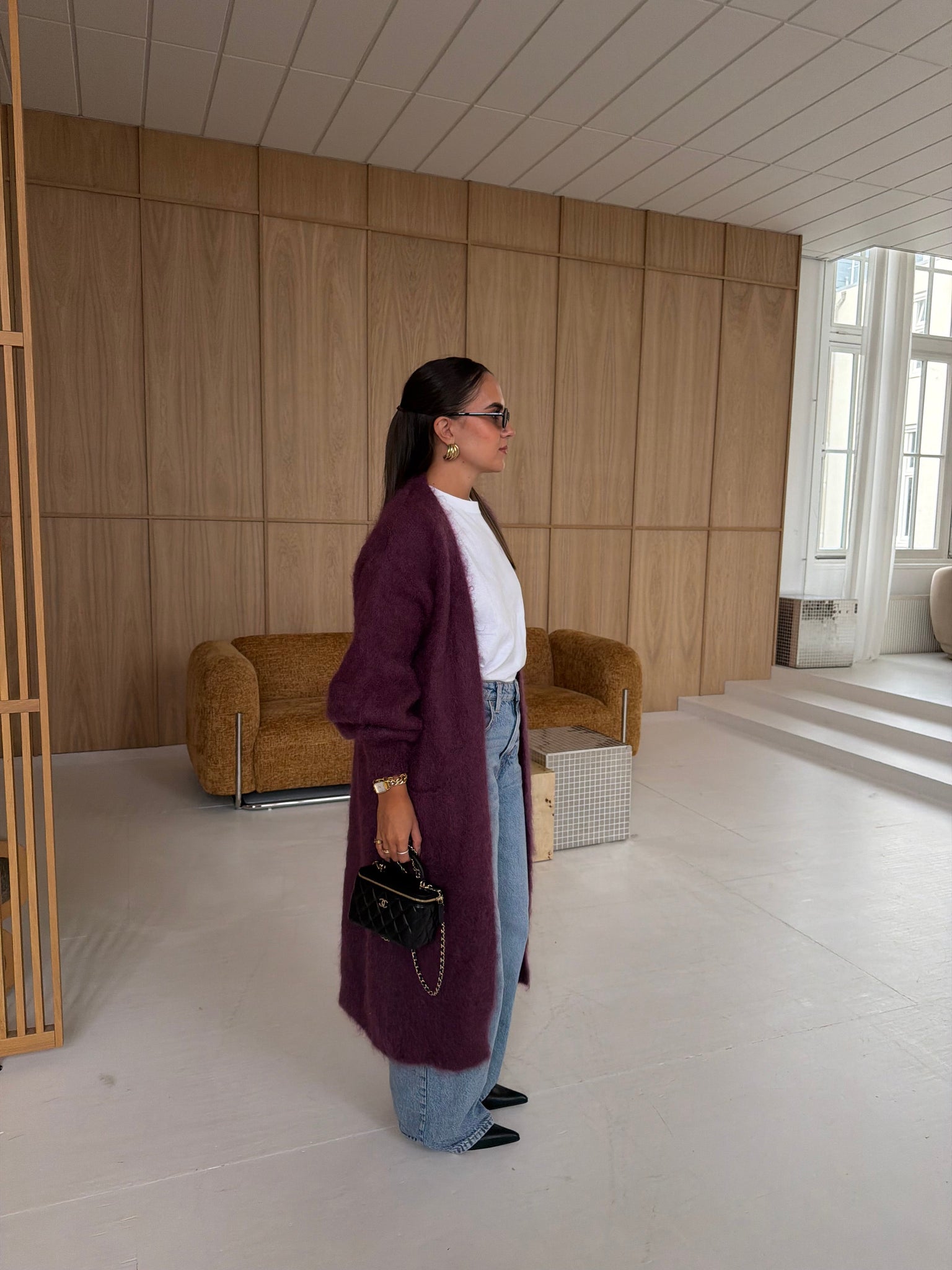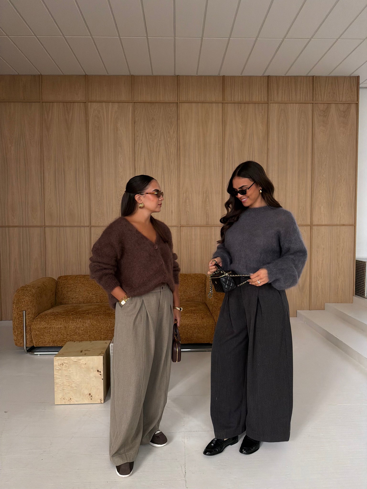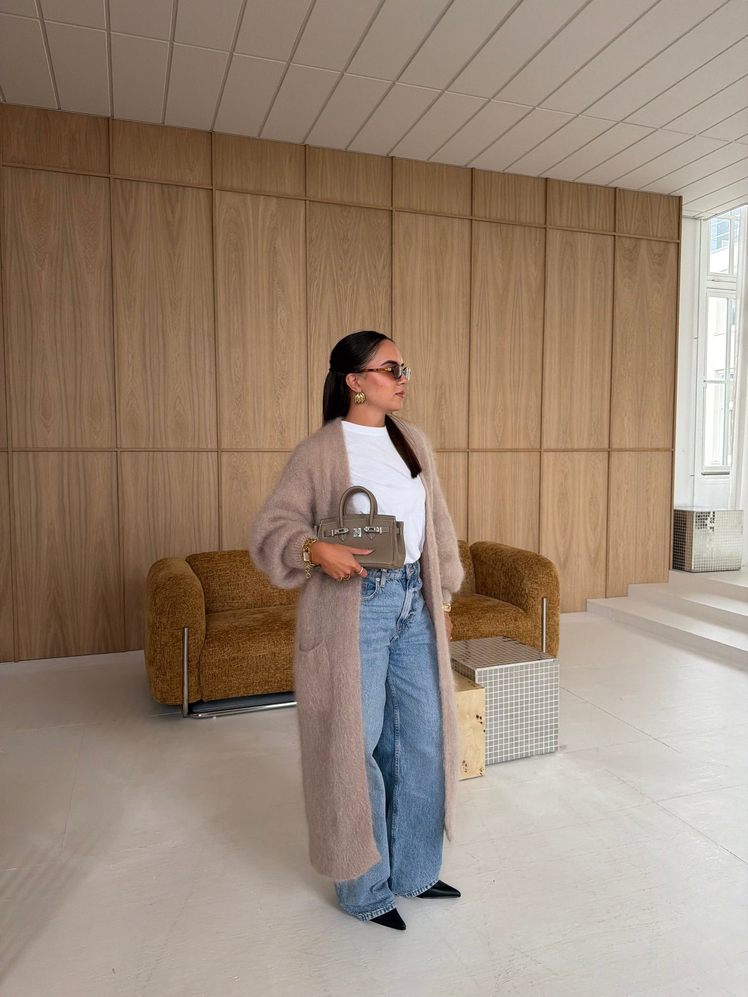 Le mannequin porte une taille M et mesure 1m65. Composition : 100% laine.
