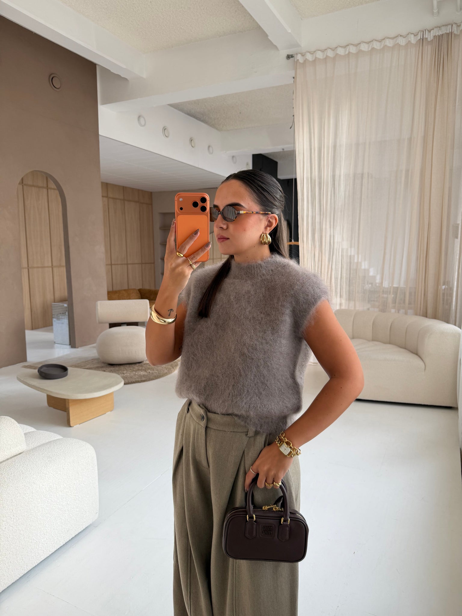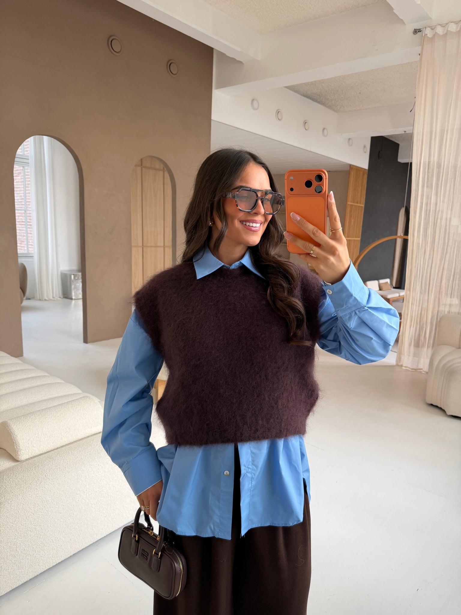 Veste laine bouclée sans manche beige ou marron (C25259335)