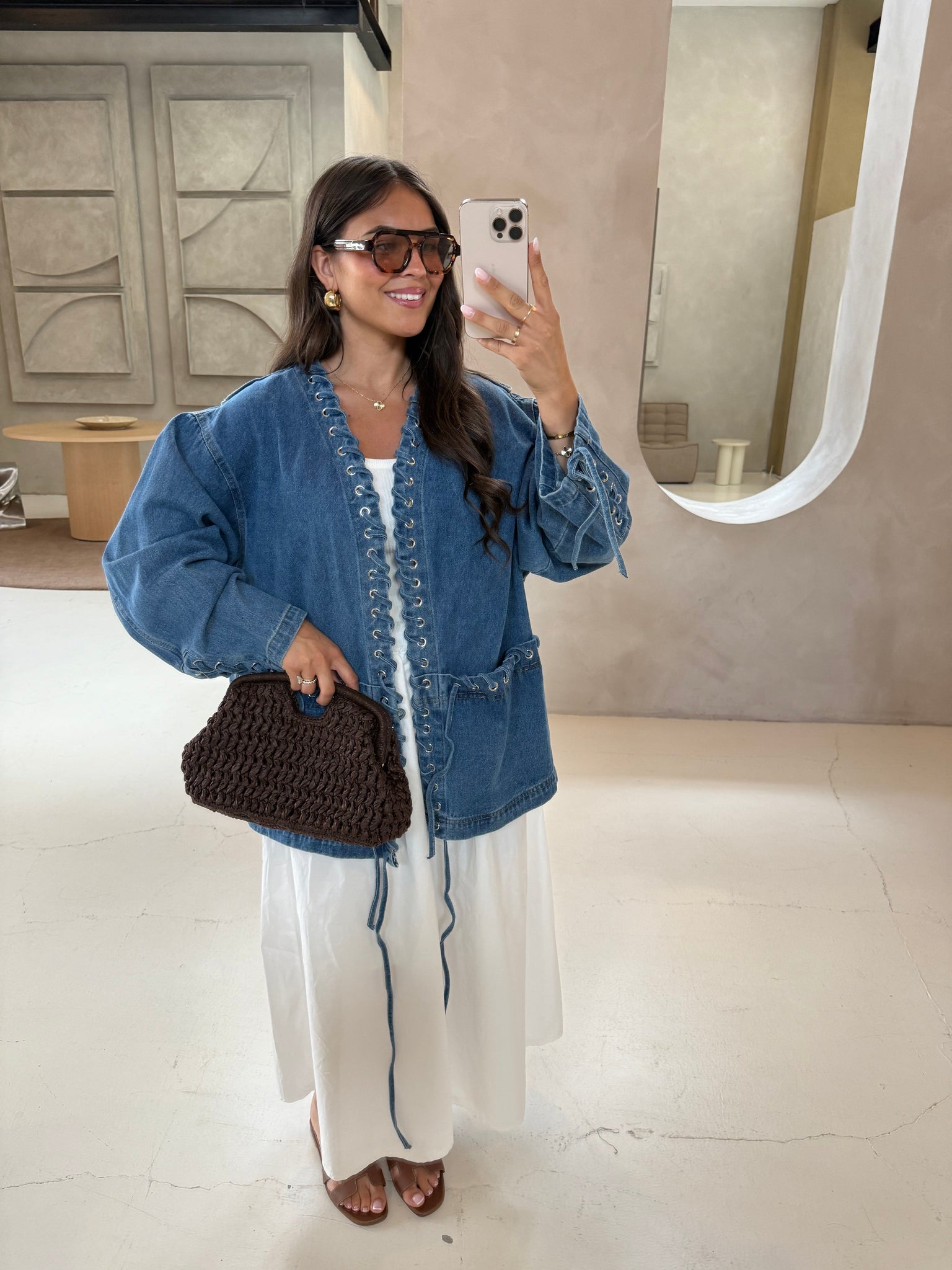 Veste en taille unique. Le mannequin mesure 1m65. Composition : 100% coton.