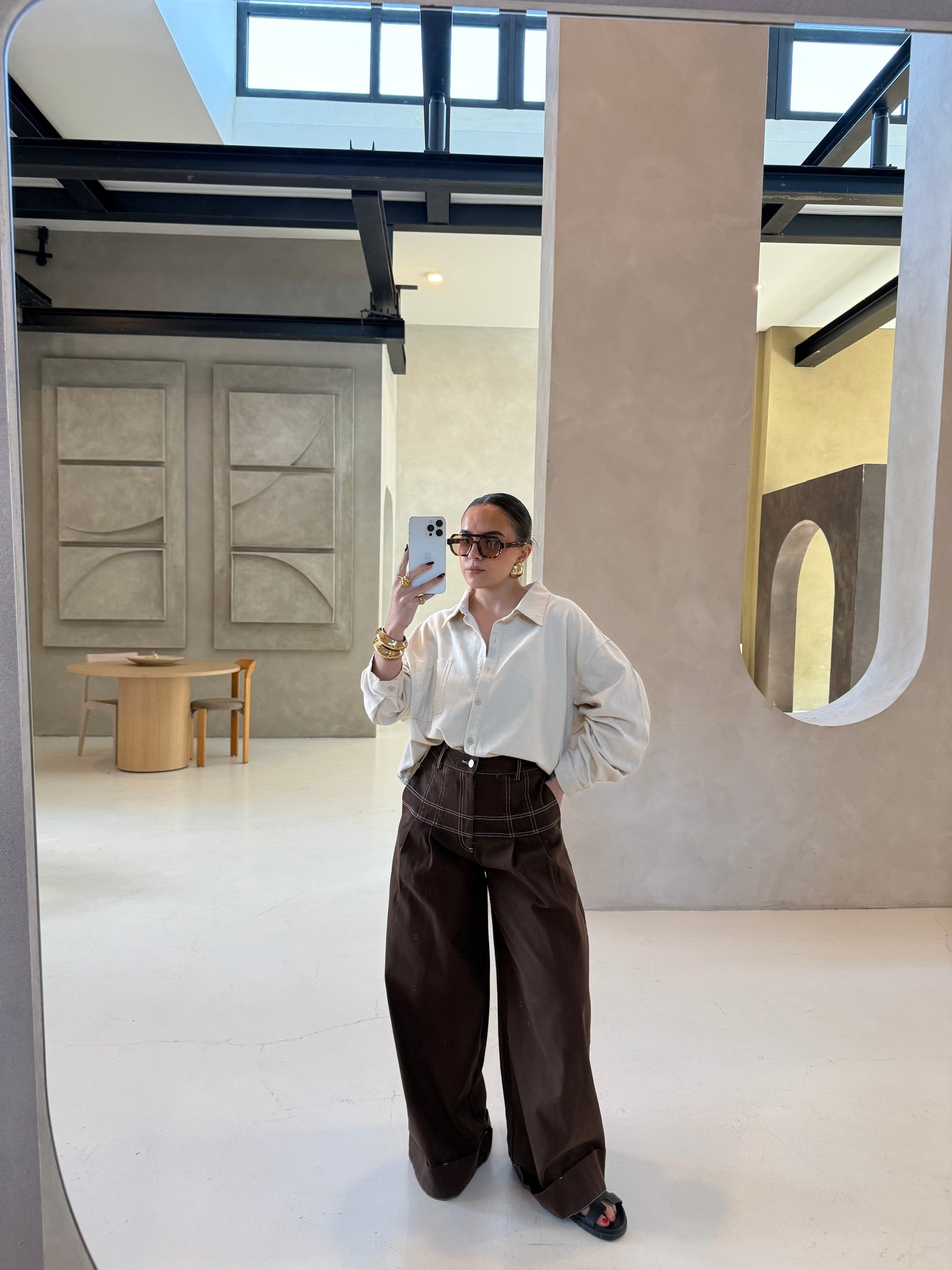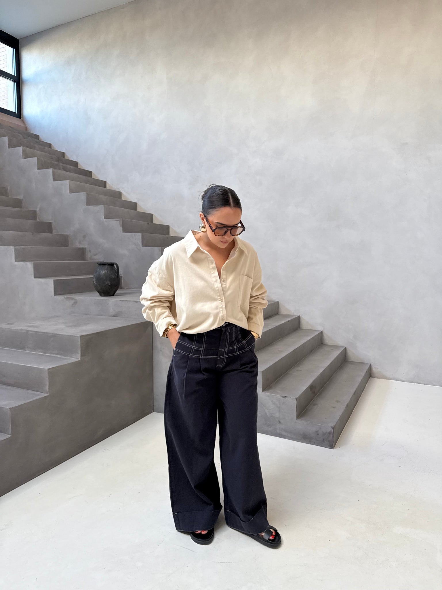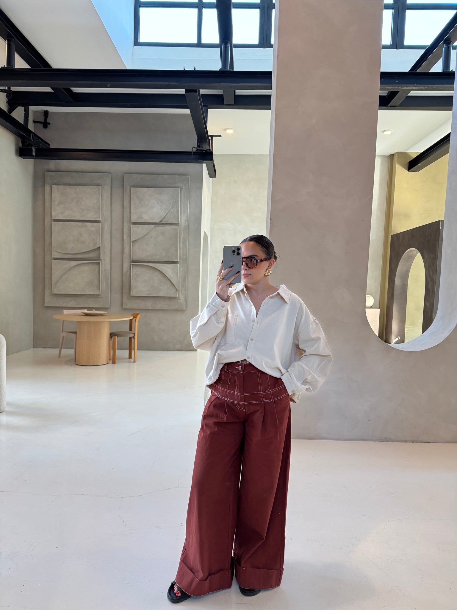 La mannequin porte une taille S et fait 1m65. Composition : 95% Cotton 5% elastane.