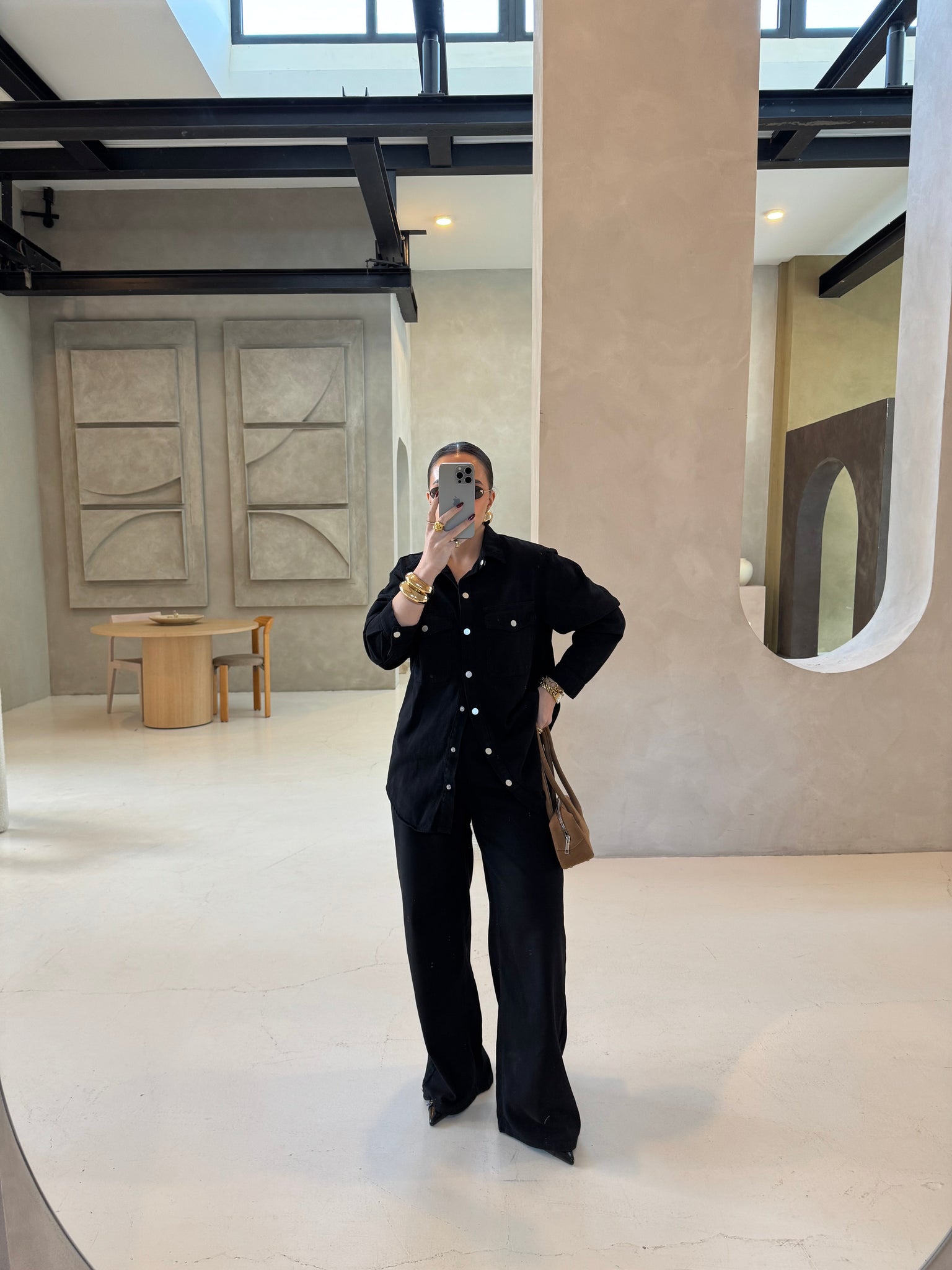 Ensemble en taille unique. Le mannequin mesure 1m65. Composition : 100% coton.