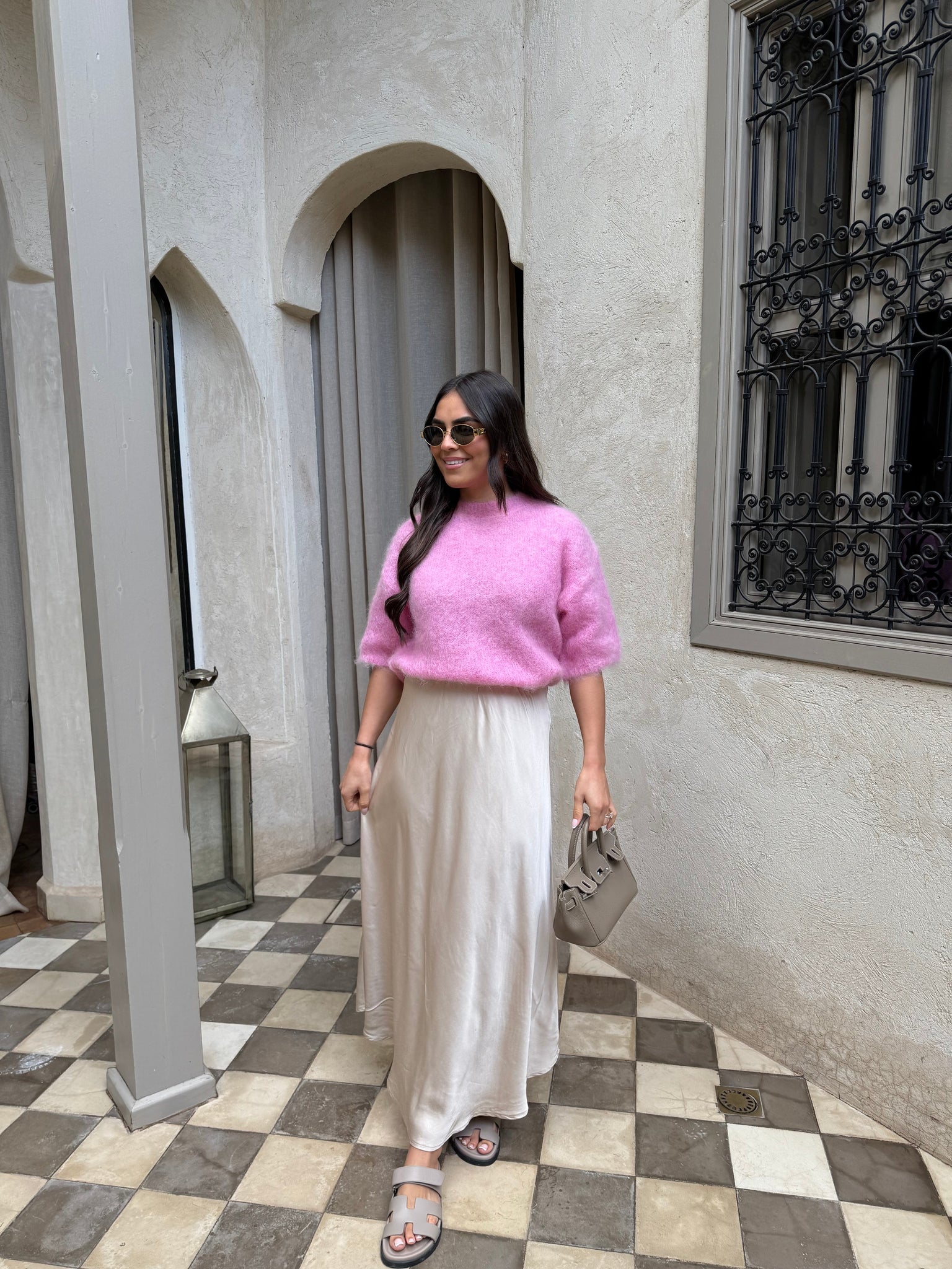 Jupe satinée rose (P6082)