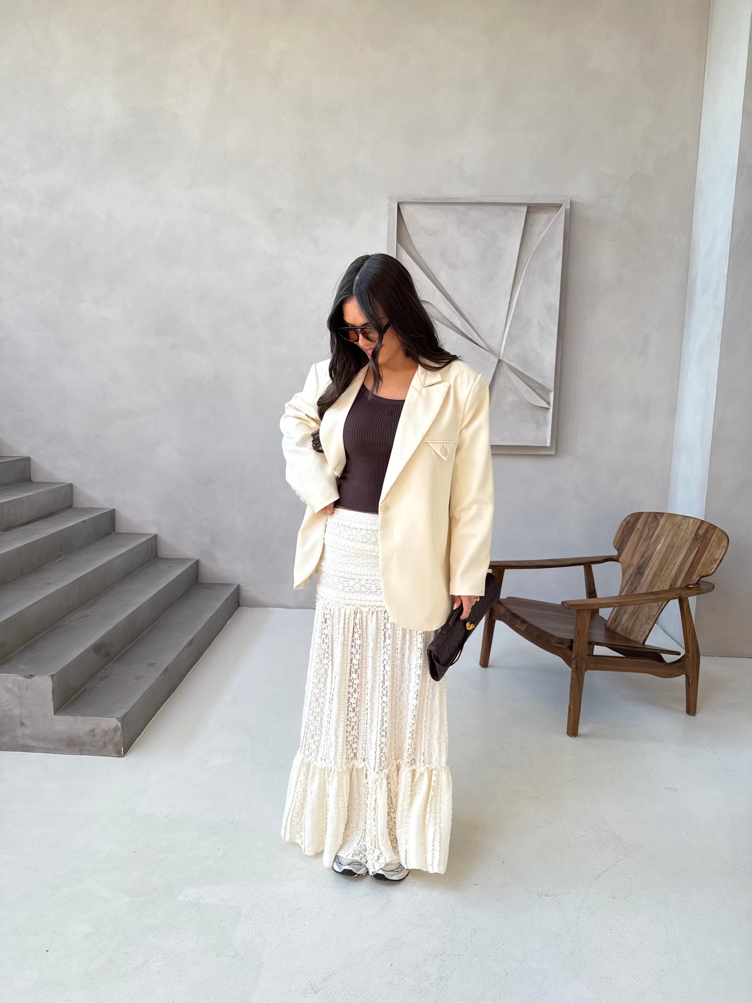 Jupe longue volant crème (82142)