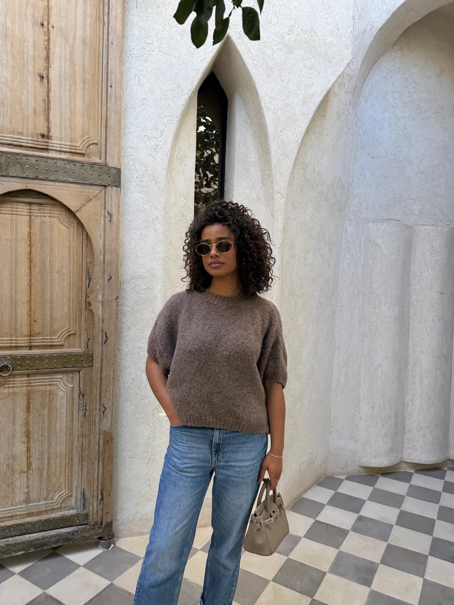 Pull en taille unique. Le mannequin mesure 1m65. Composition : 65% acrylique, 17% polyamide, 9%...