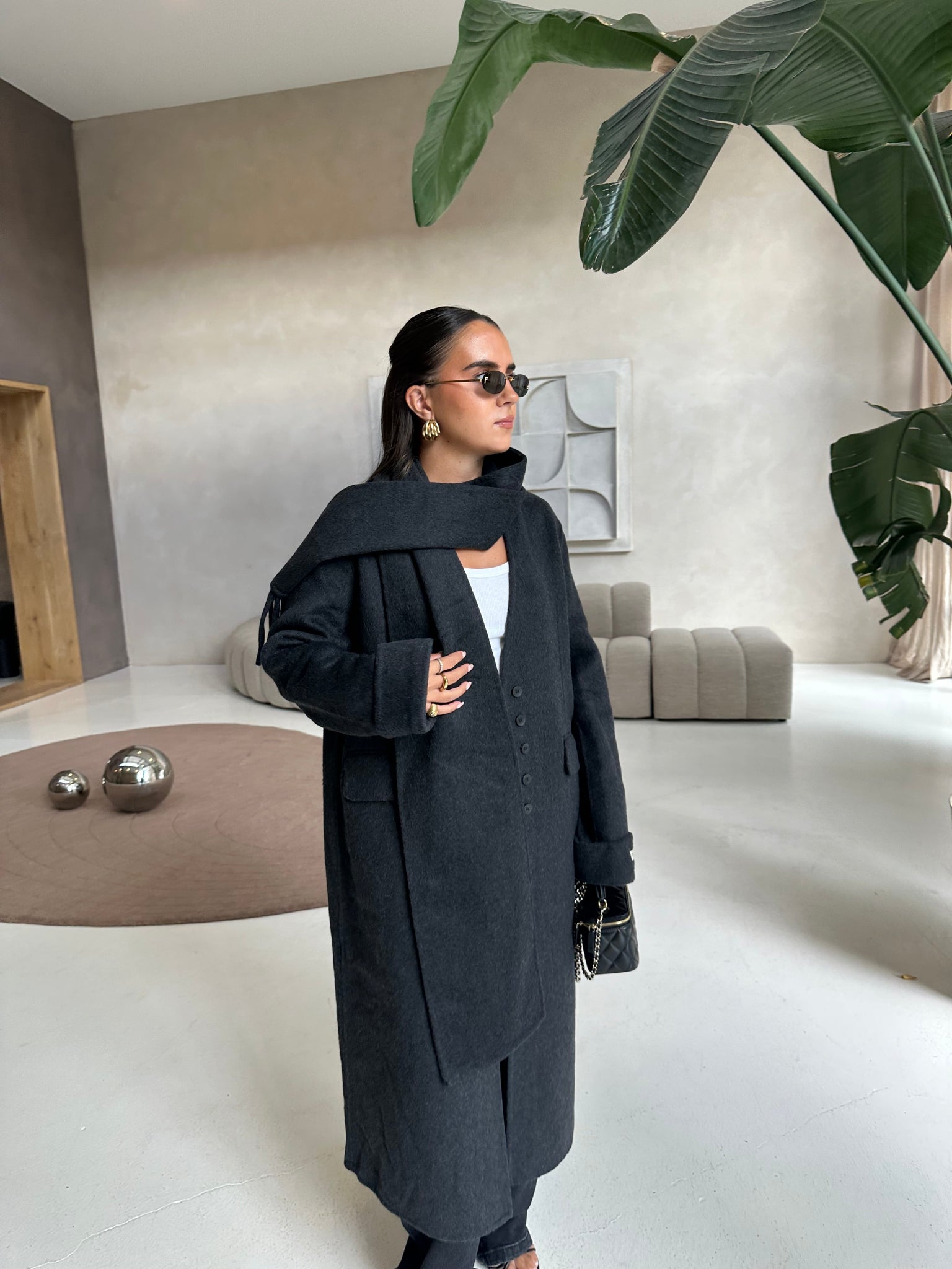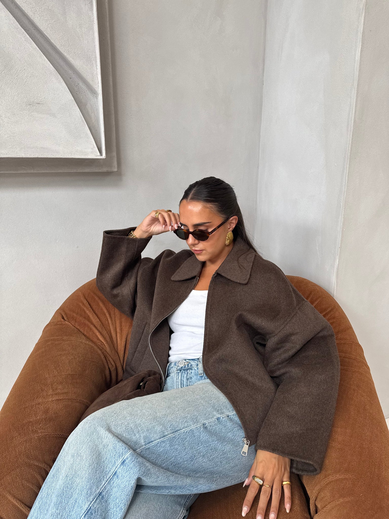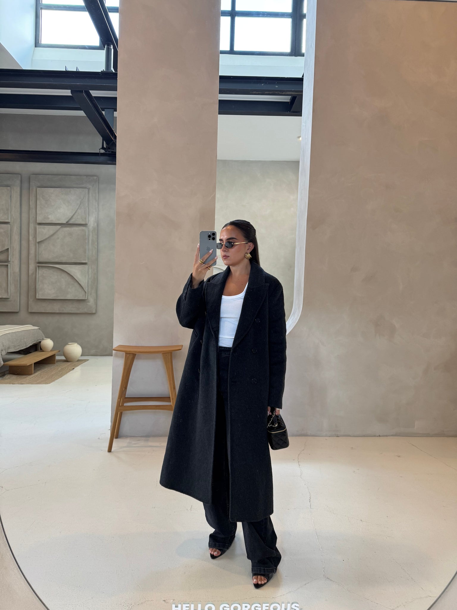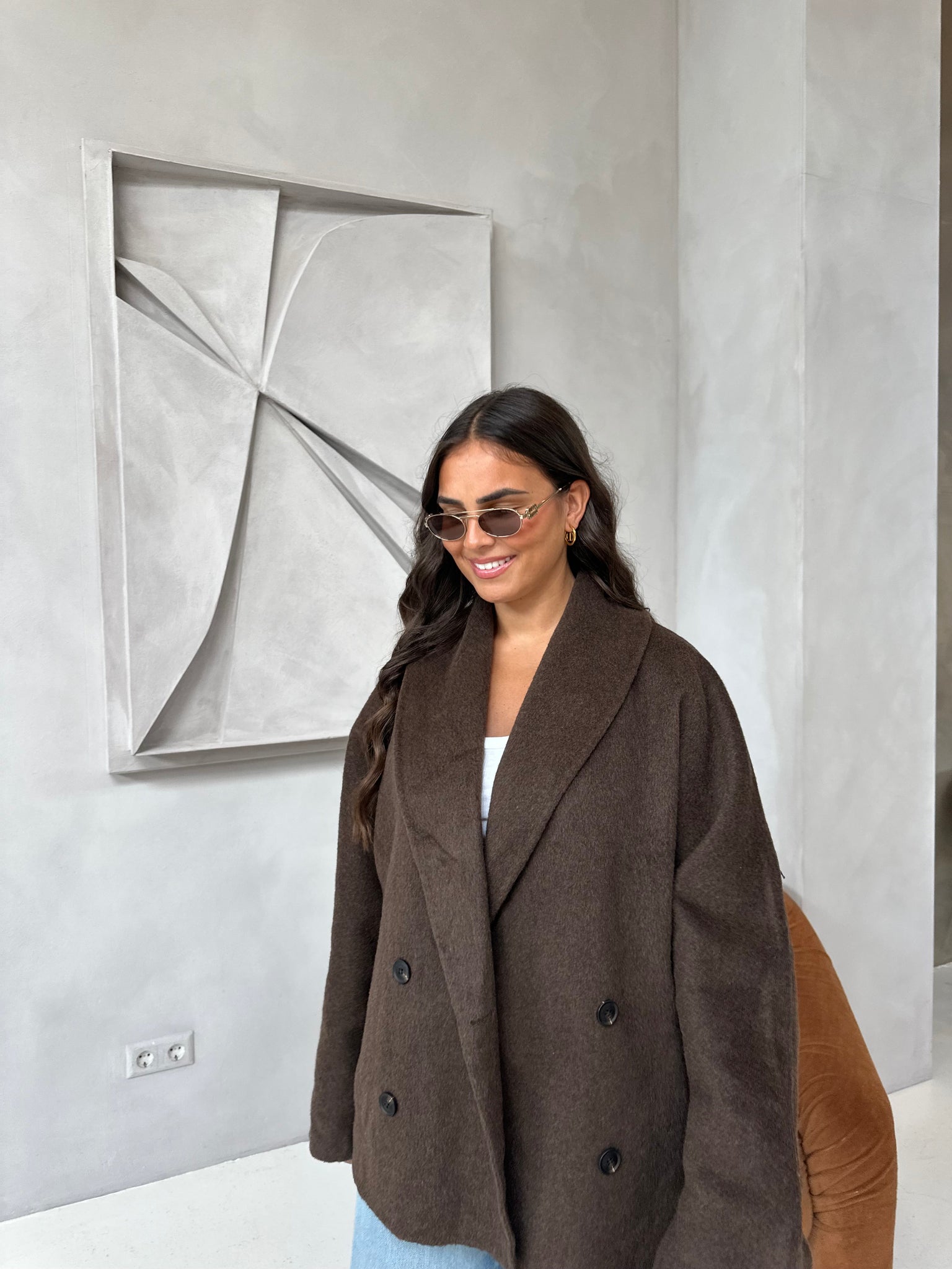 Manteau en taille unique. Le mannequin mesure 1m60. Composition : 93% polyester, 7% elastane
