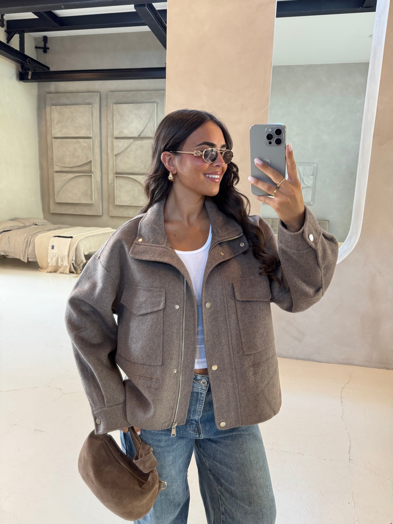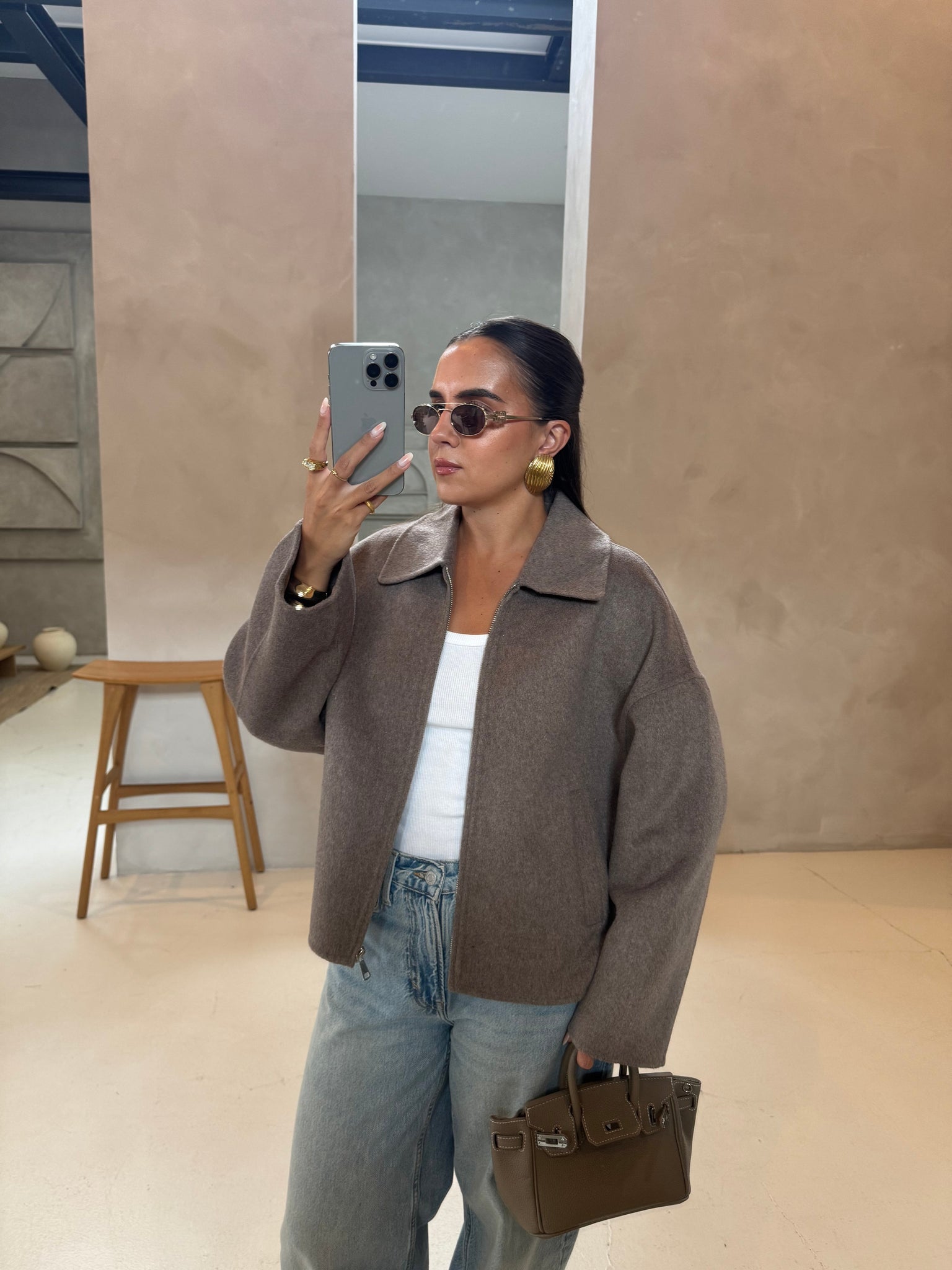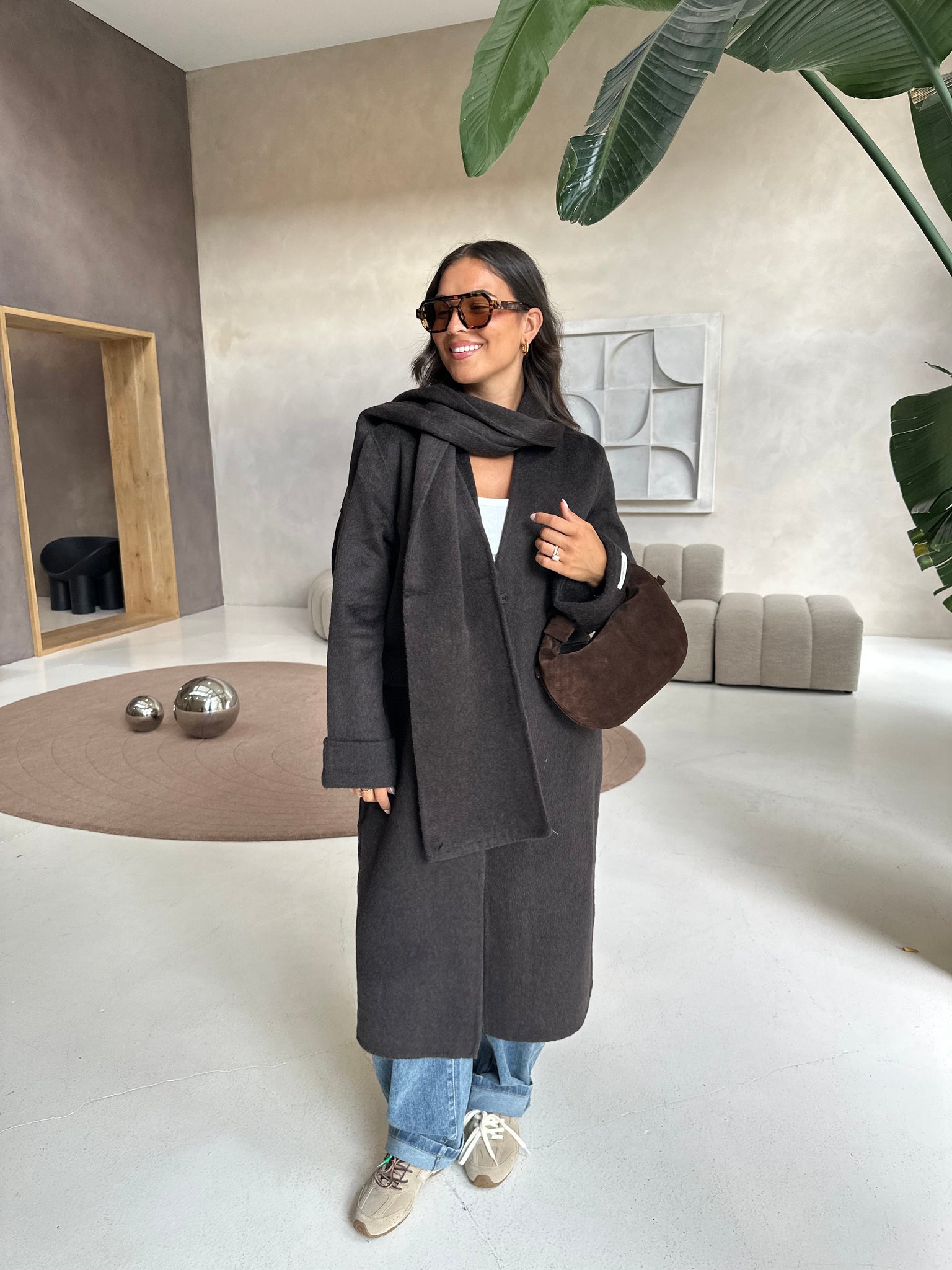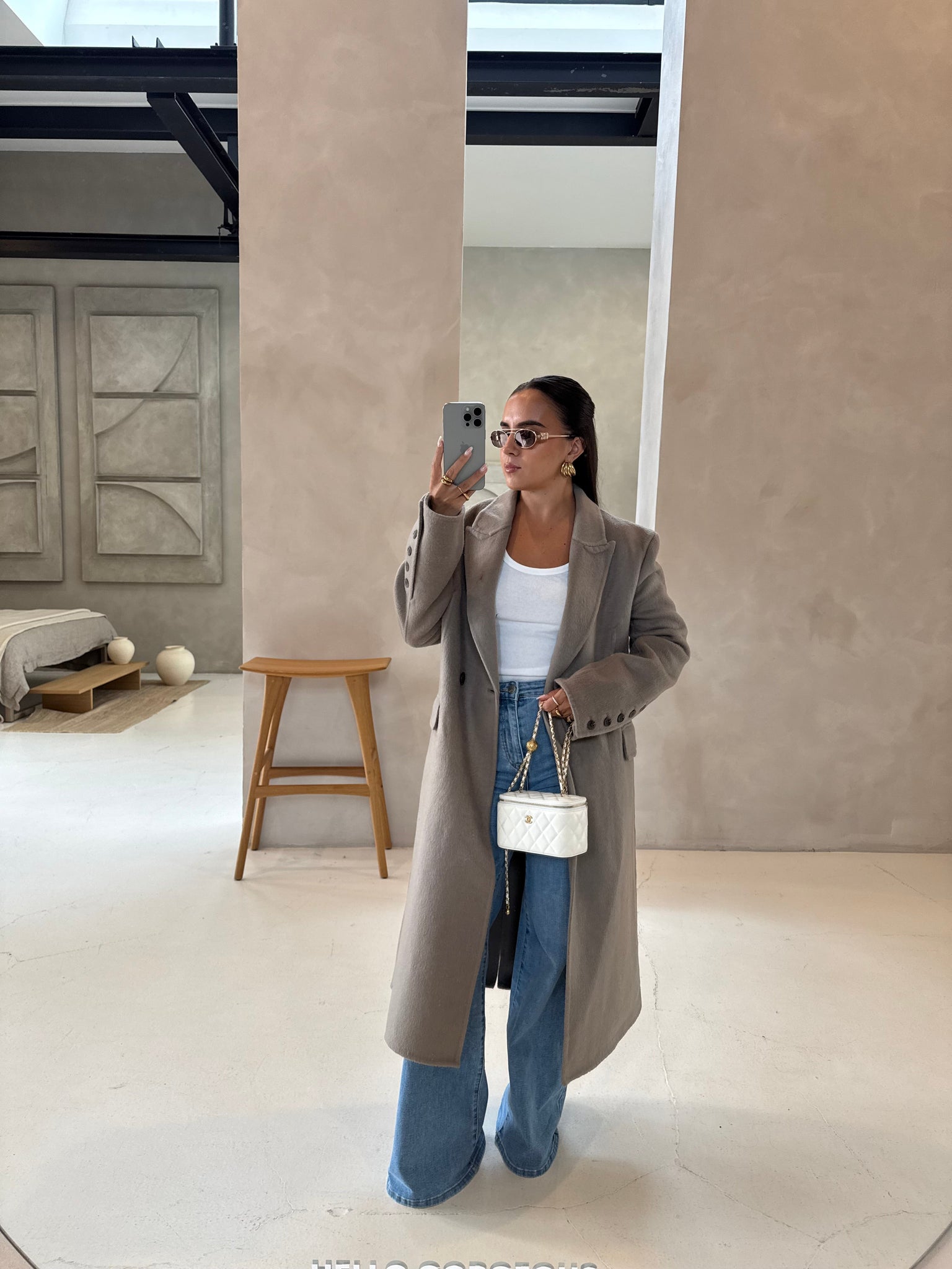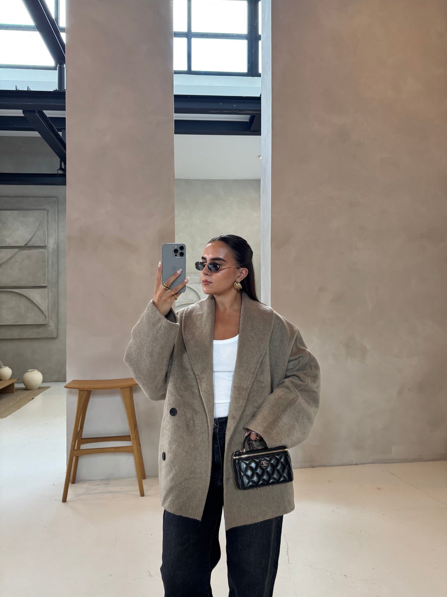 Le mannequin porte une taille 1 et mesure 1m65. Composition : 80% polyester, 20% laine.