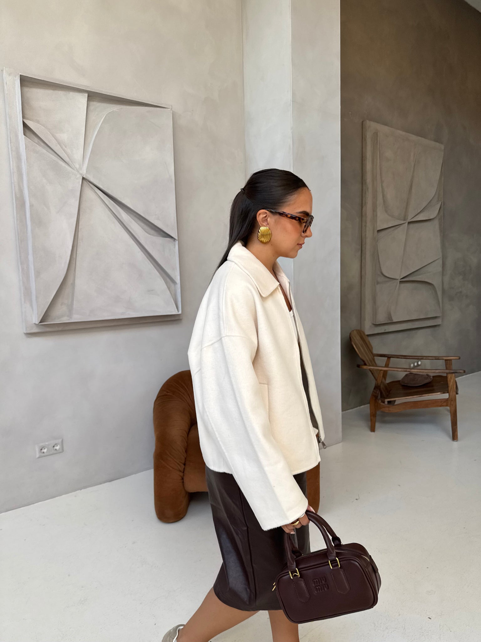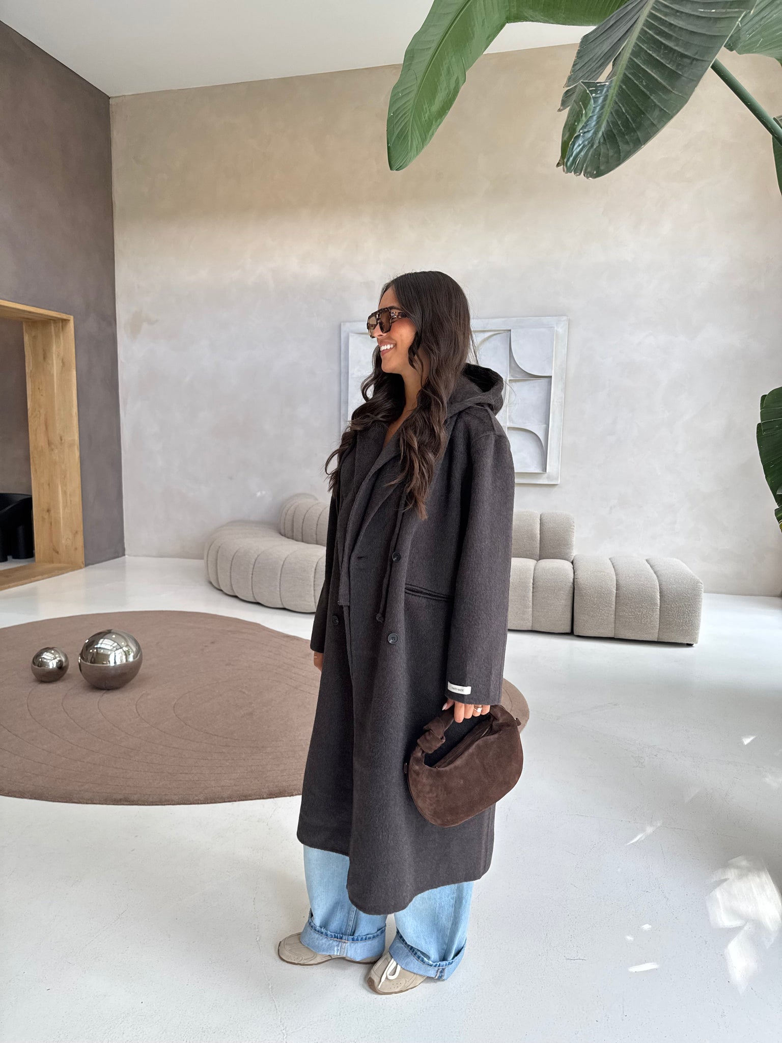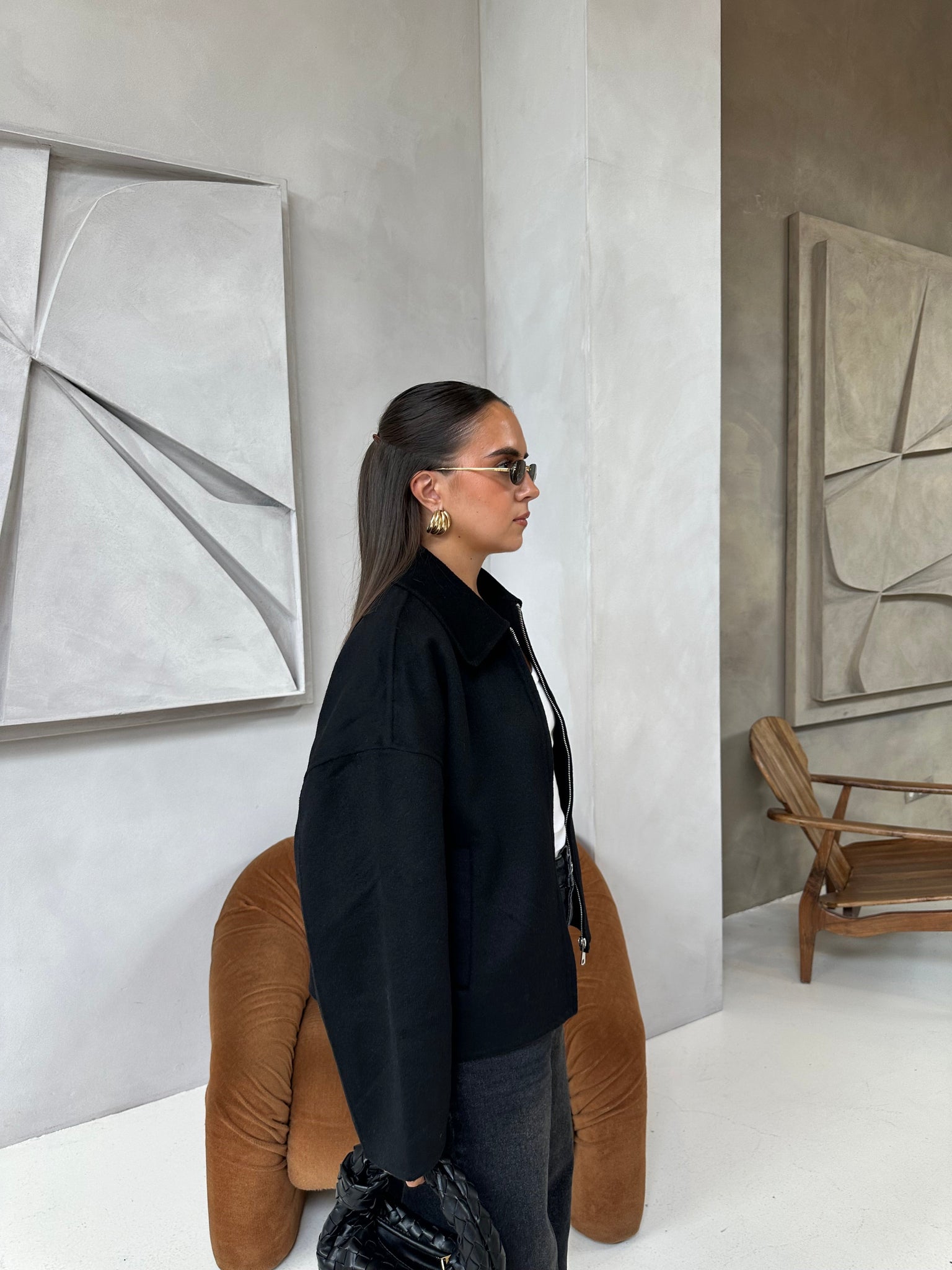 Manteau en taille unique. Le mannequin mesure 1m60. Composition : 90% polyester, 10% spandex.