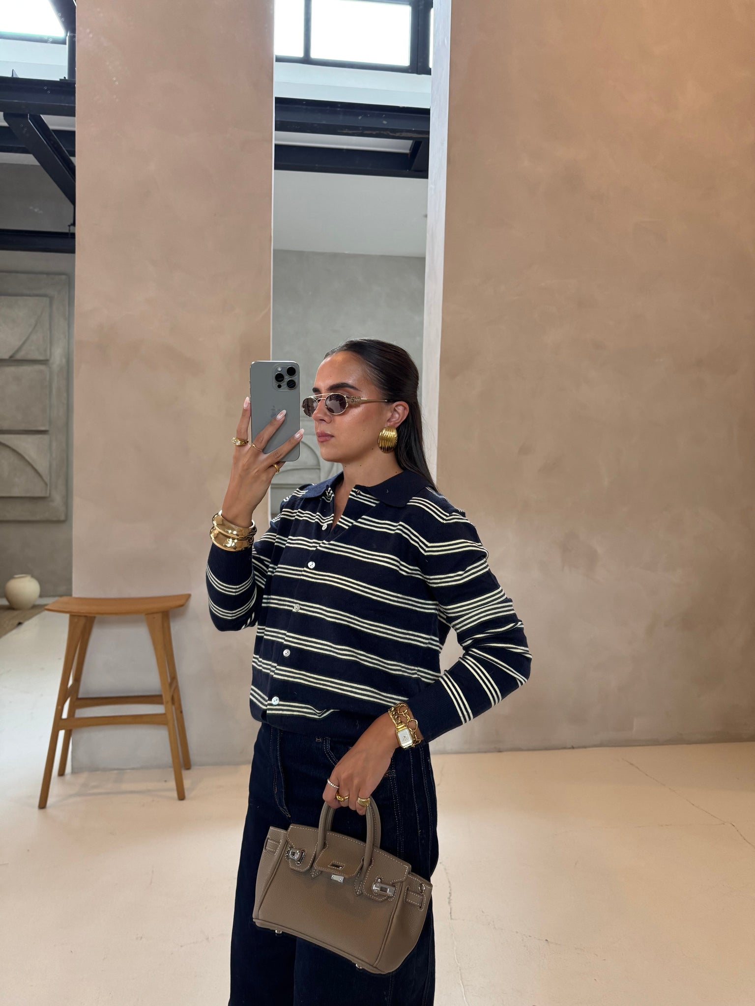 Le mannequin porte une taille ml. Composition : 55% polyester, 37% acrylique, 8% laine.