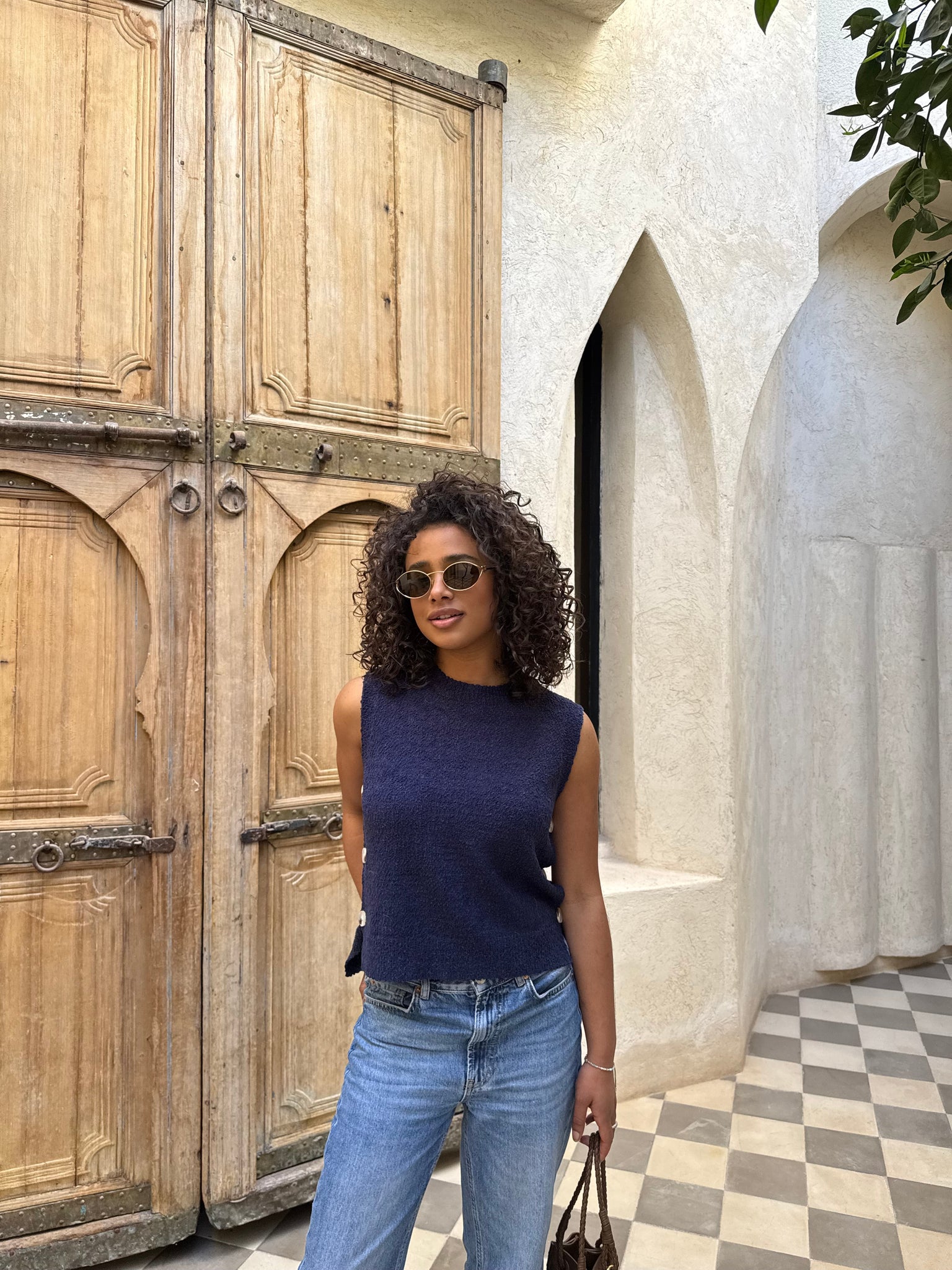 Pull en taille unique. Le mannequin mesure 1m65. Composition : 79% acrylique, 15% nylon, 6%...