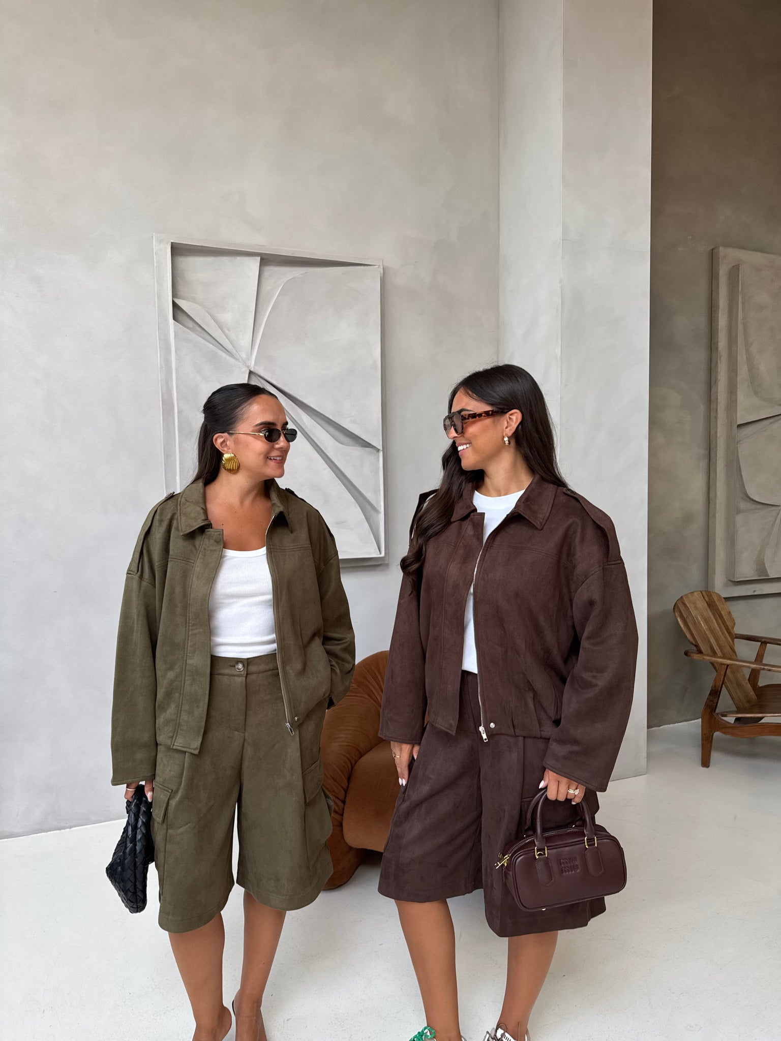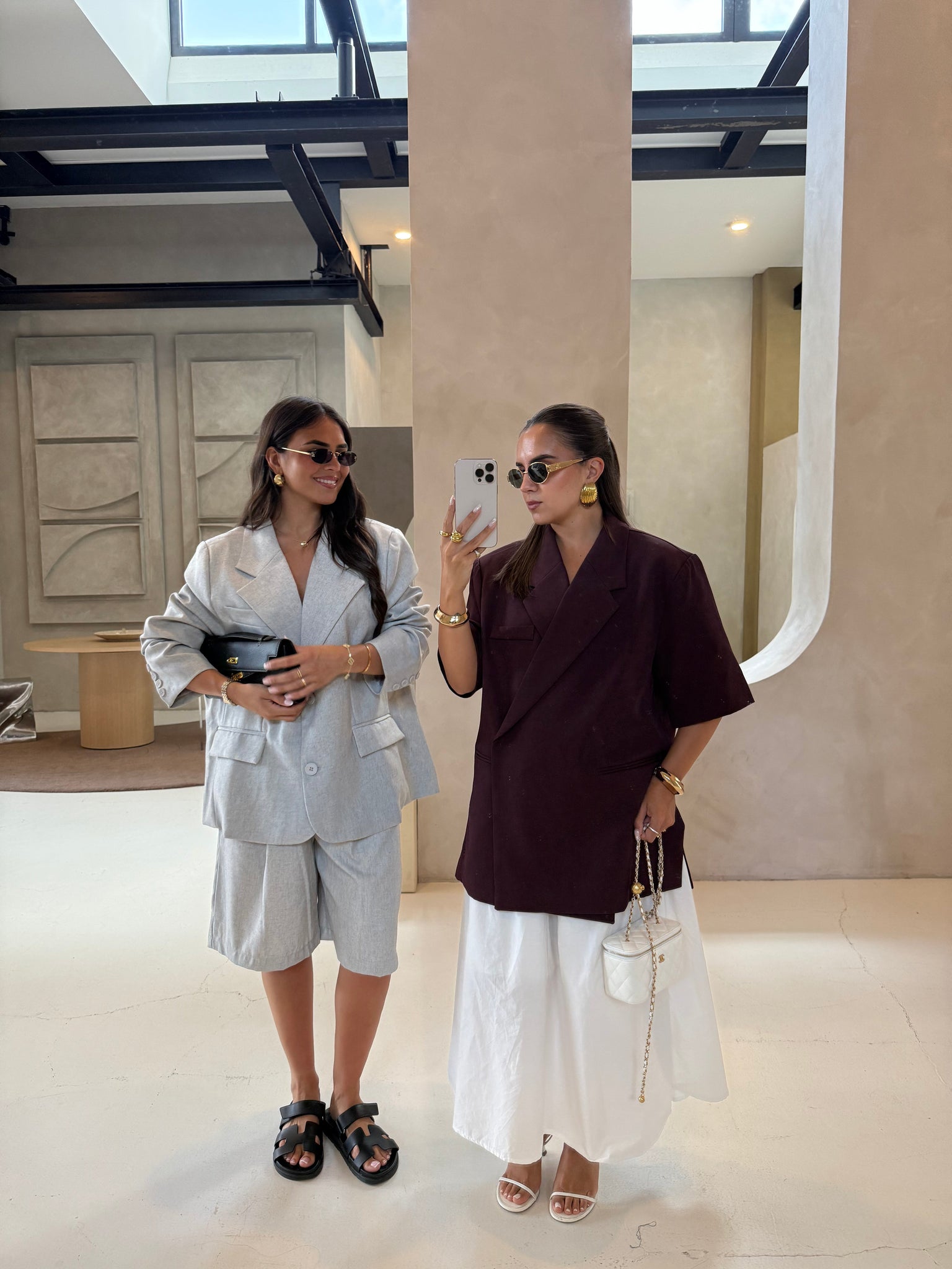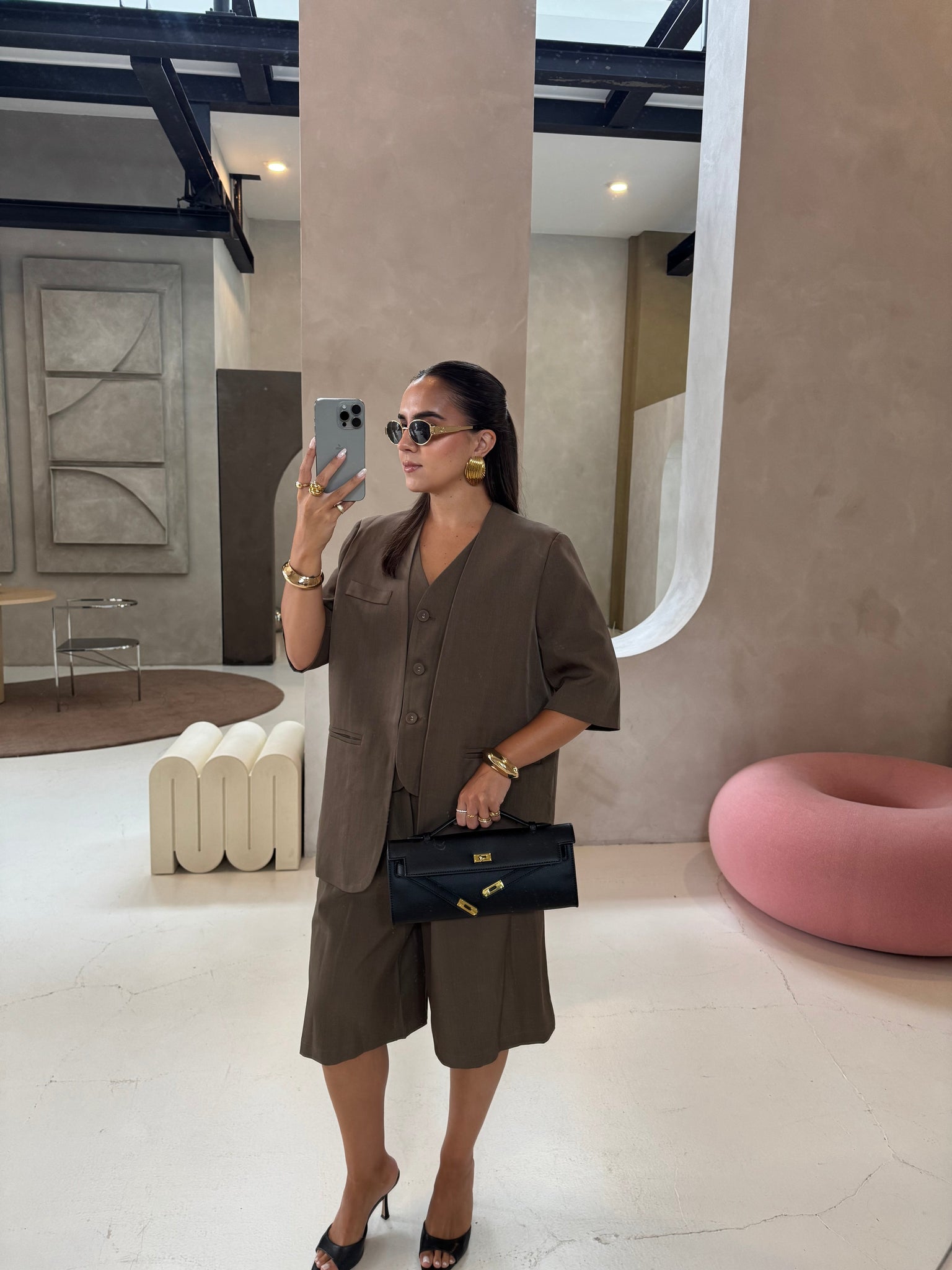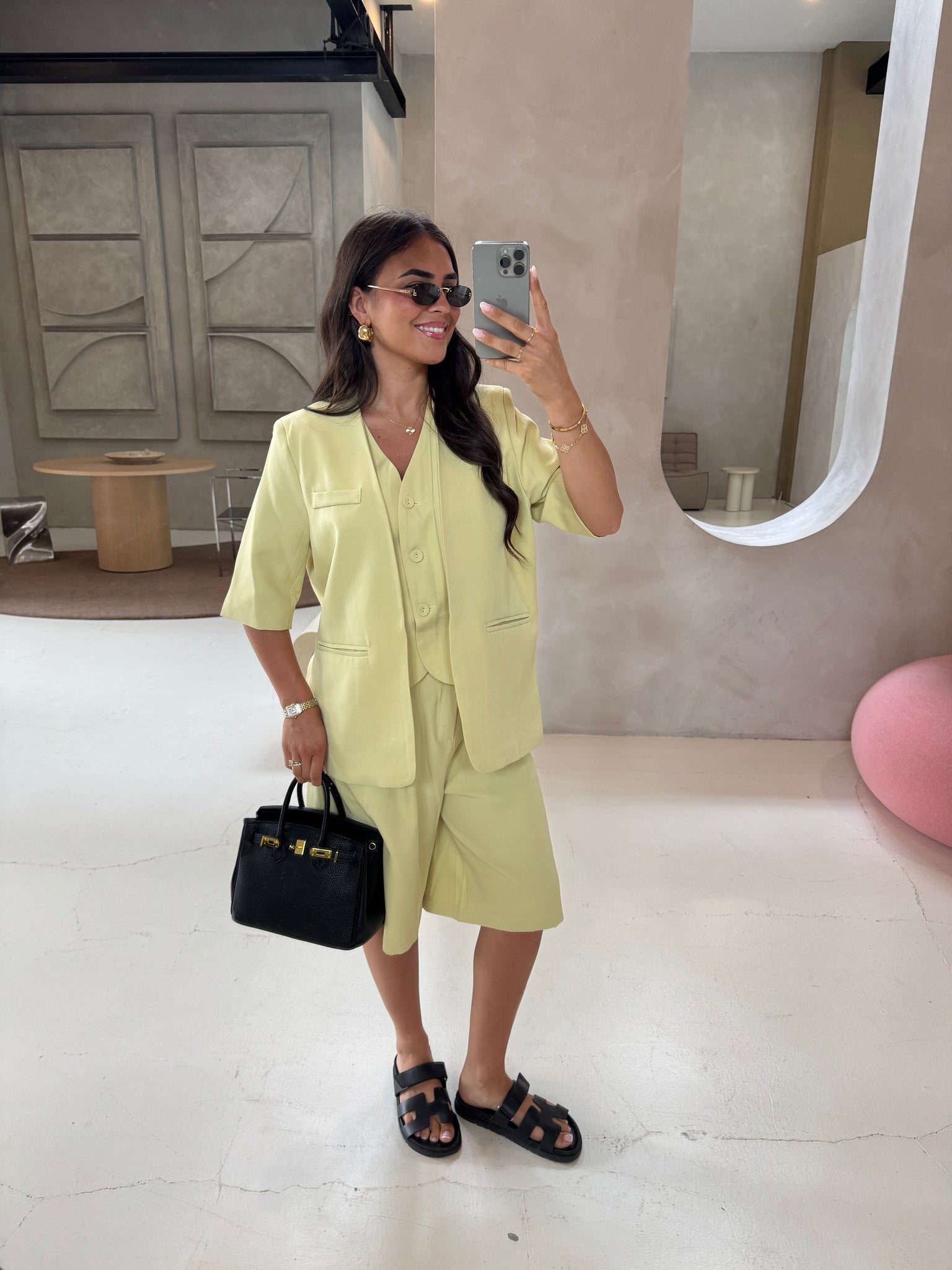 Ensemble short et veste. Le mannequin porte une taille 1 et mesure 1m65. Composition :...