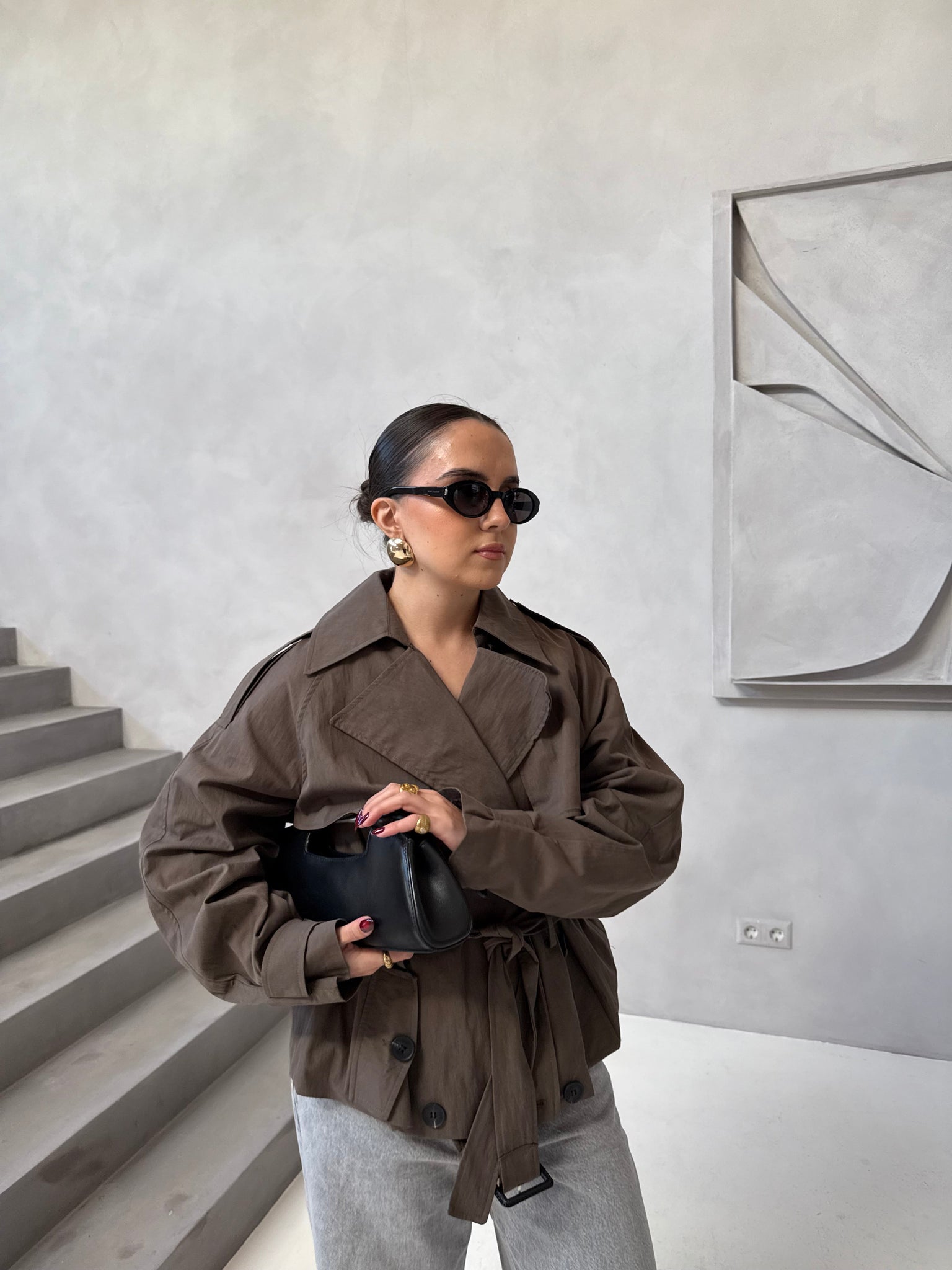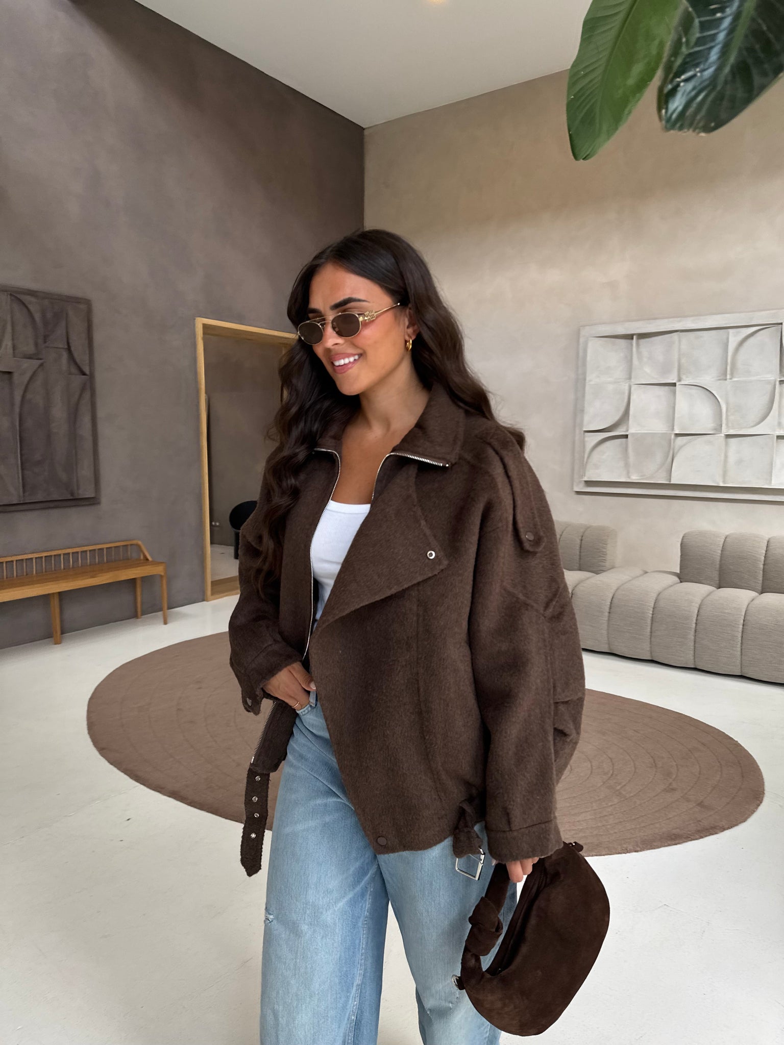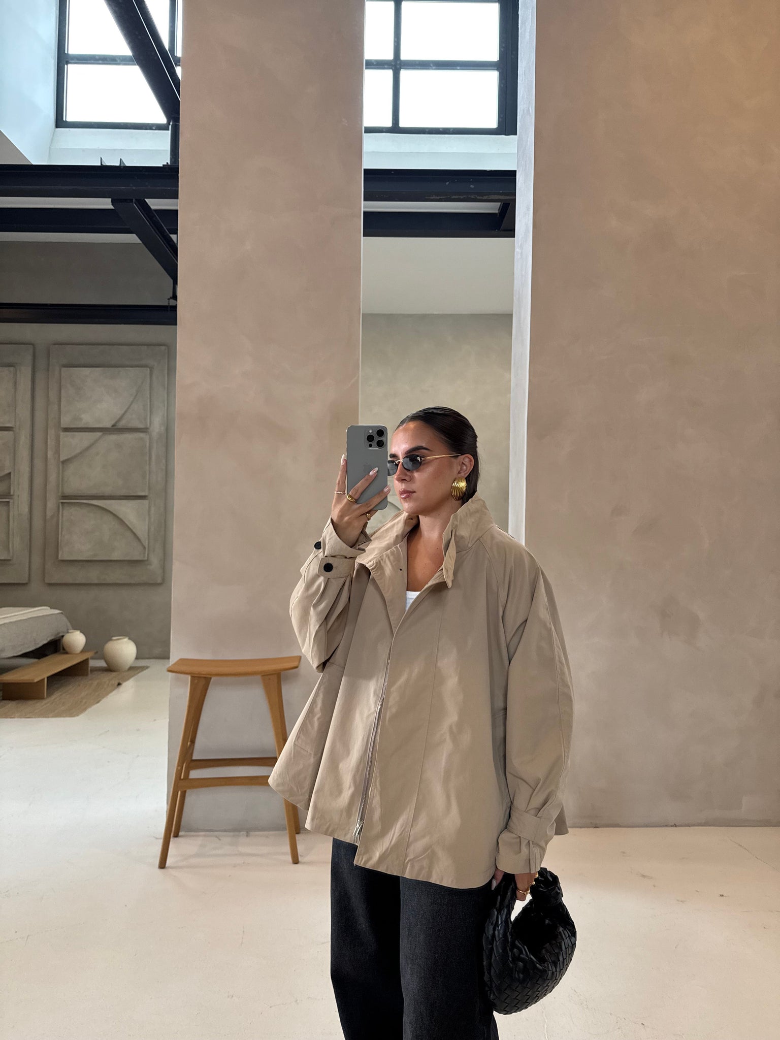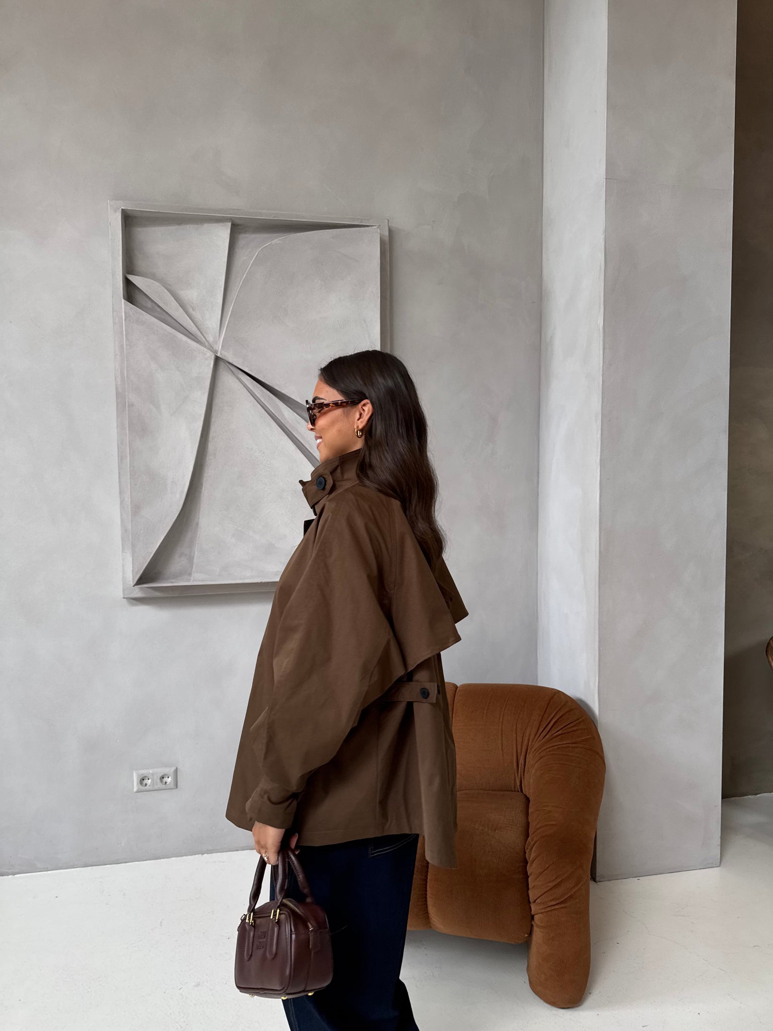 Manteau en taille unique. Le mannequin mesure 1m60. Composition : 90% polyester, 10% spandex.