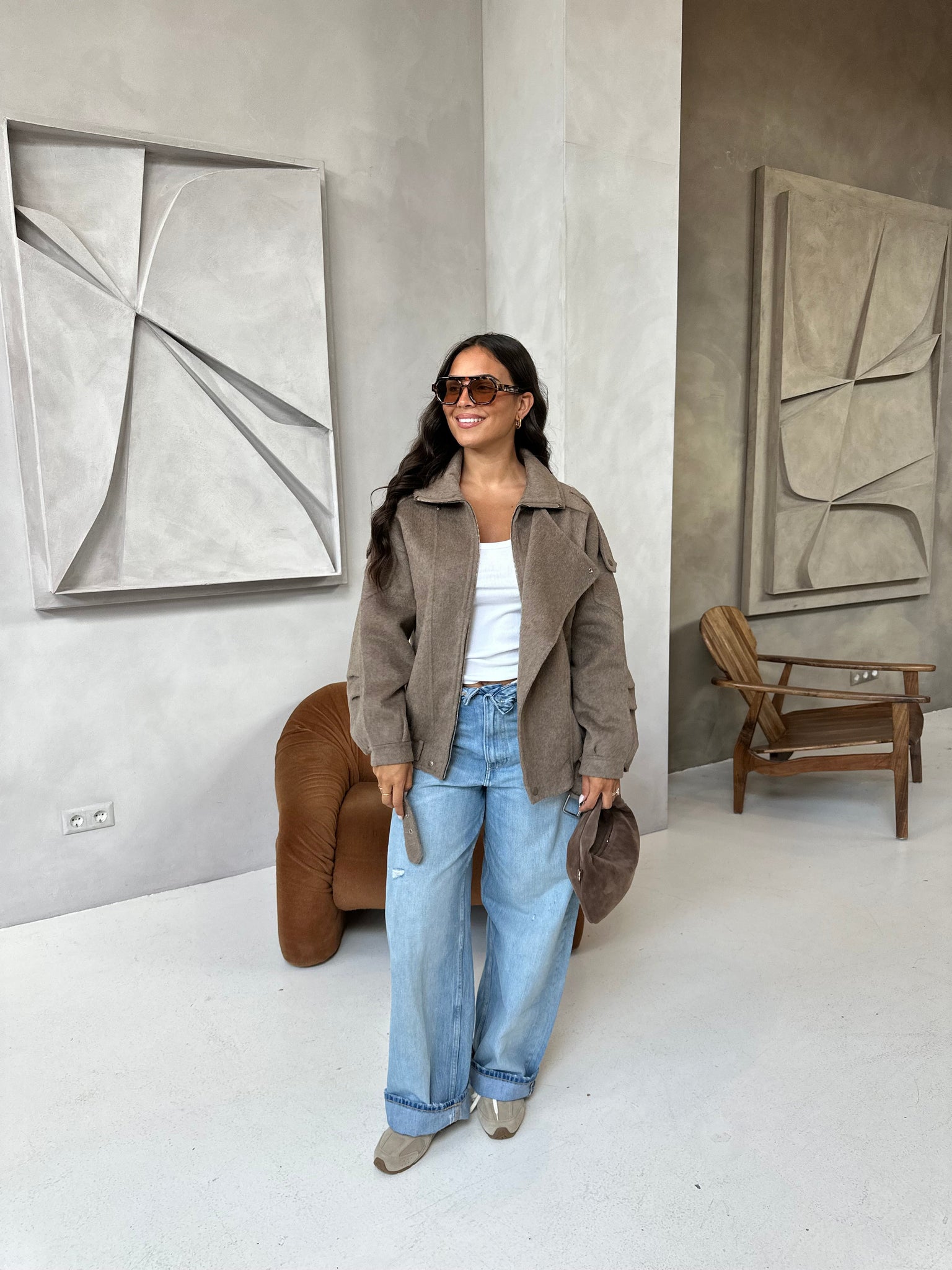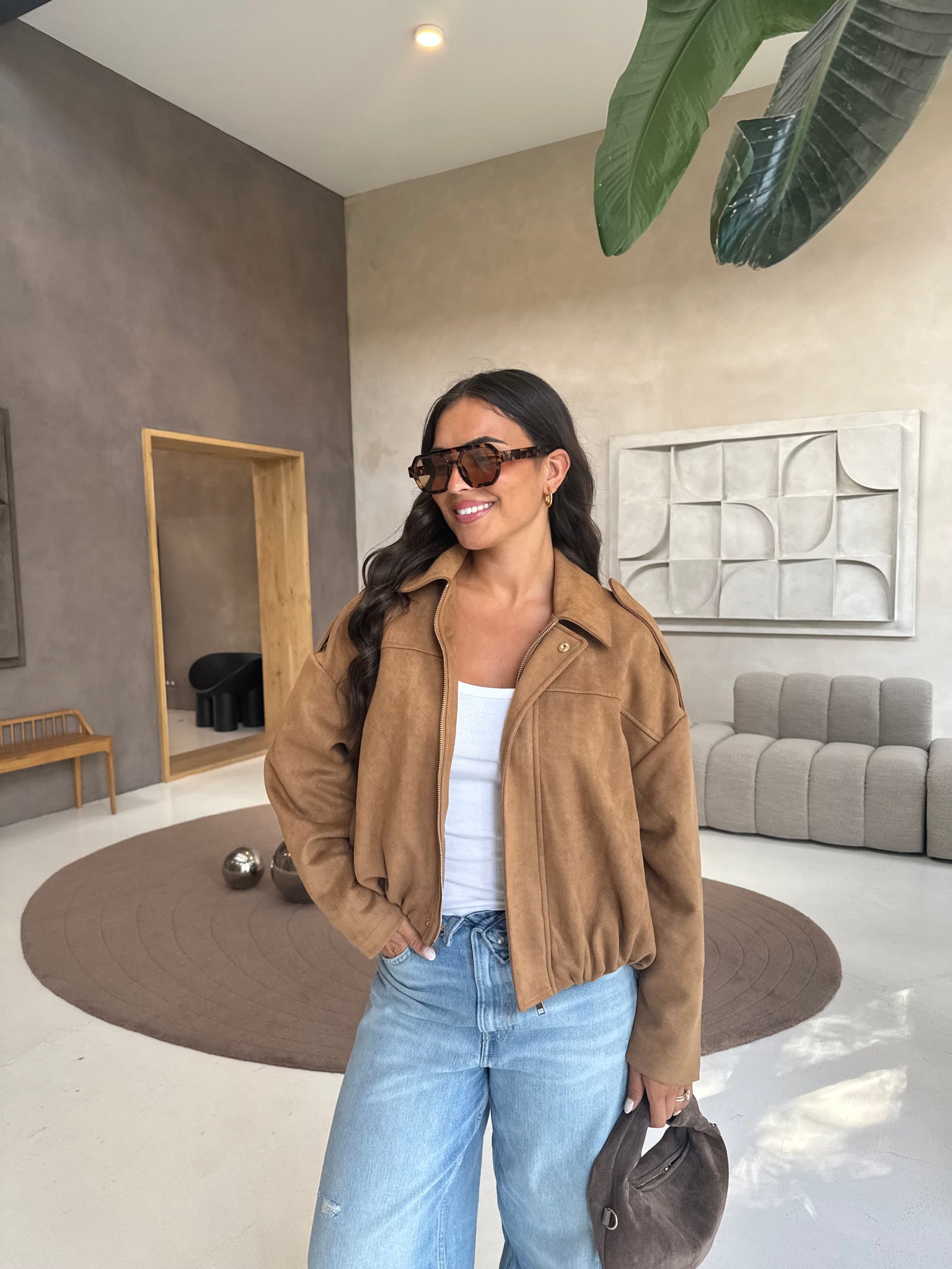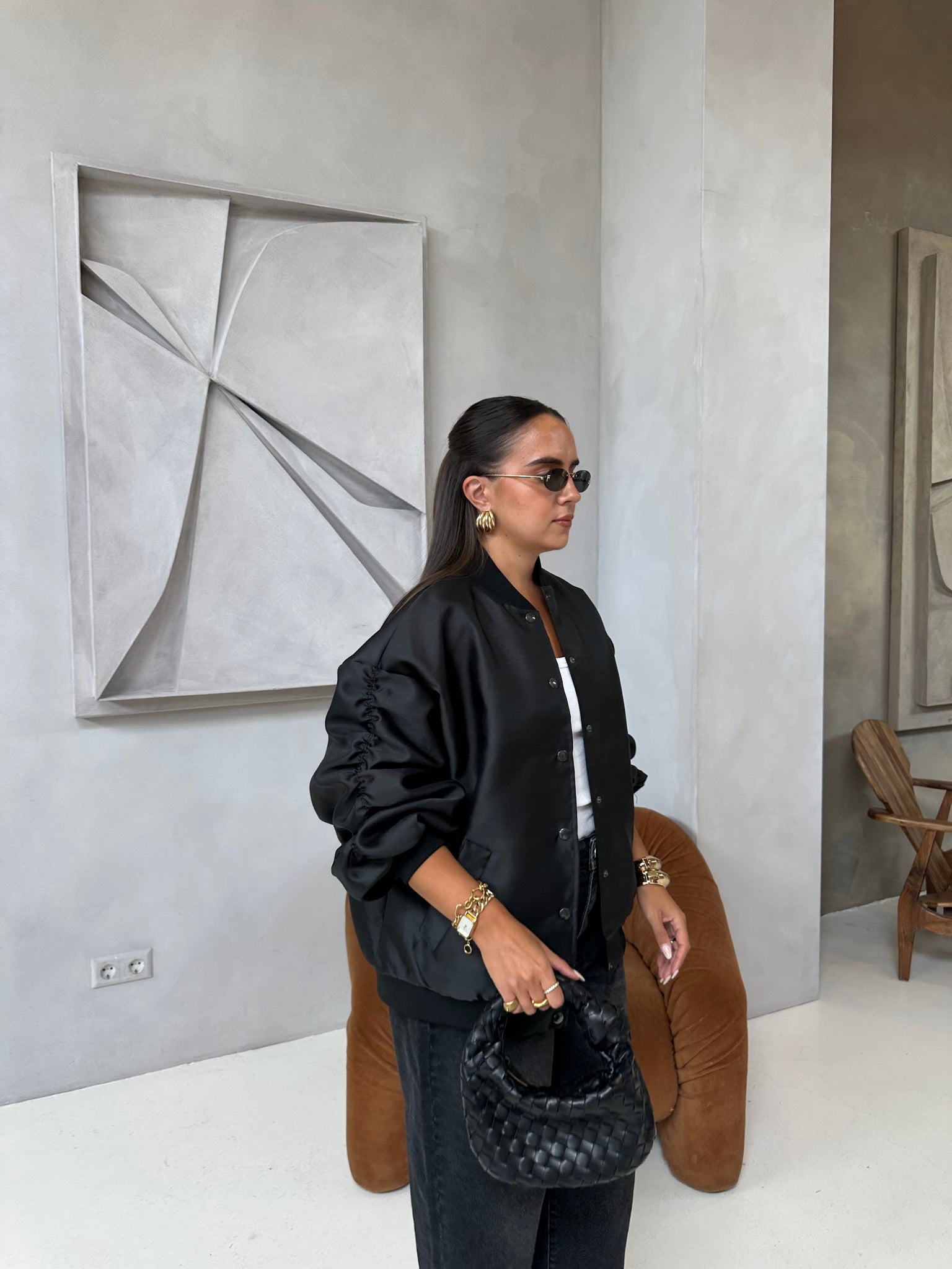 Bomber en taille unique. Le mannequin mesure 1m65. Composition : 100% viscose.