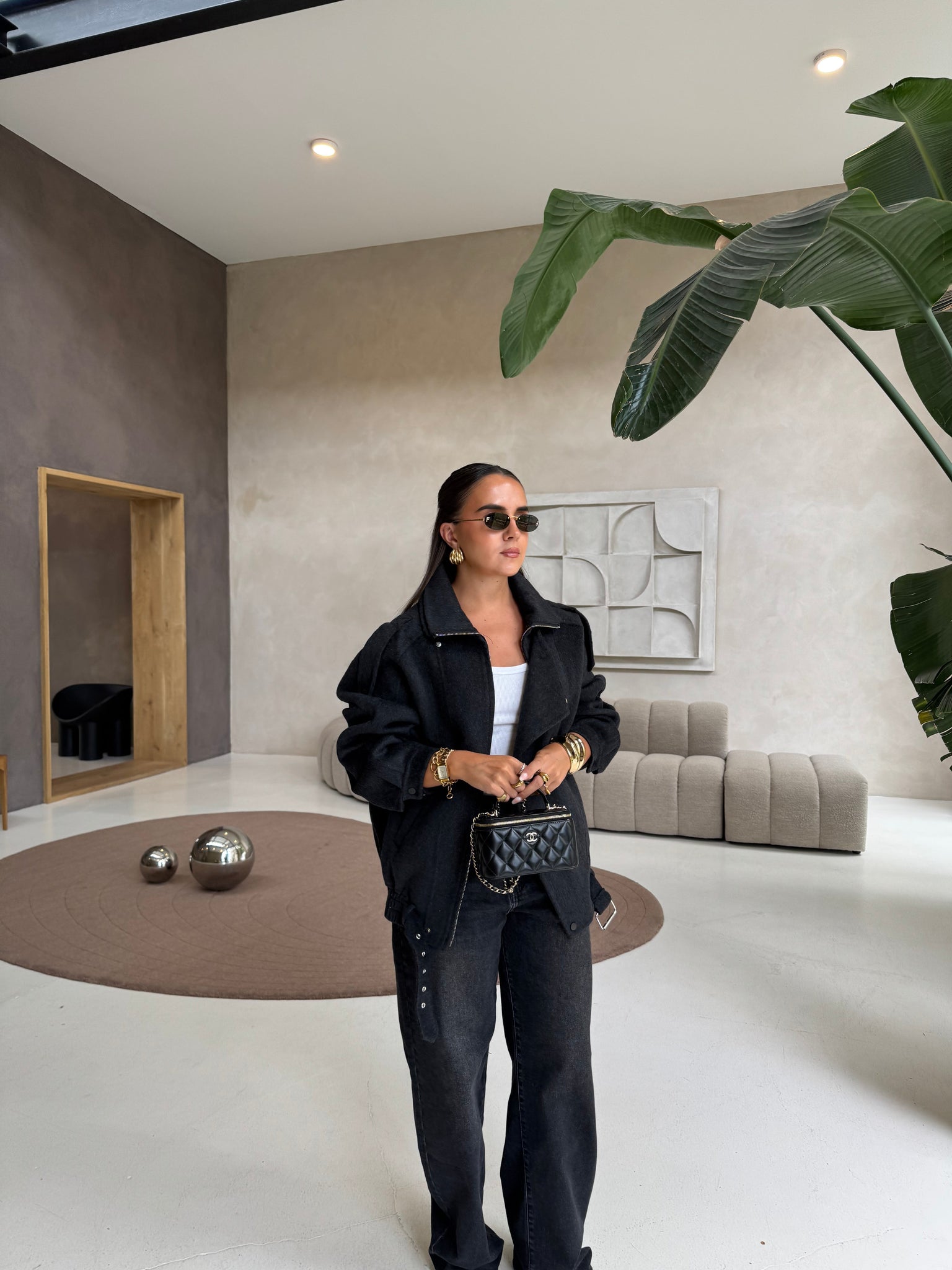 Veste en taille unique. Le mannequin mesure 1m65. Composition : 65% polyester, 35% viscose.