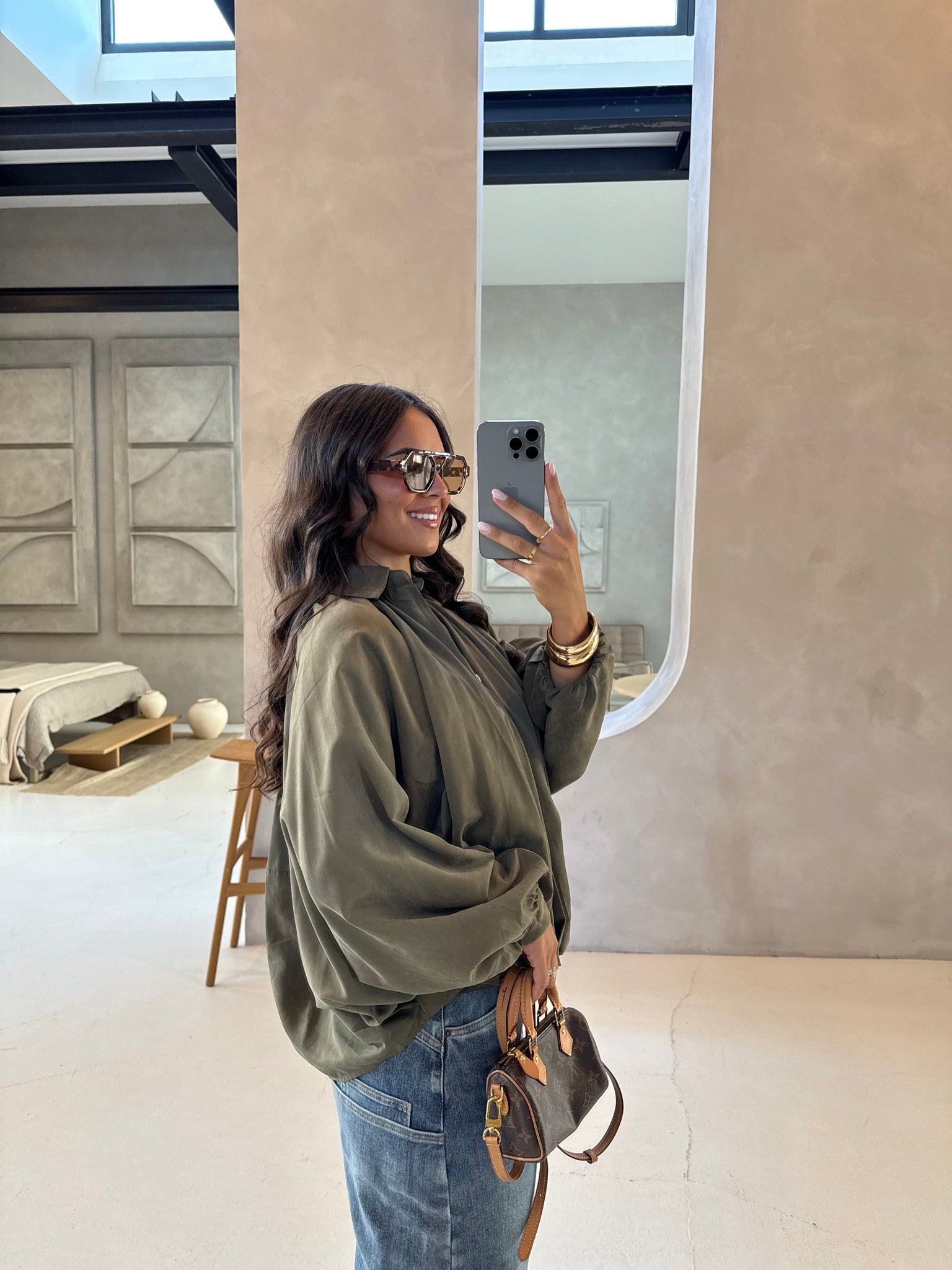 Veste ALICE manches bouffantes kaki (3812)
