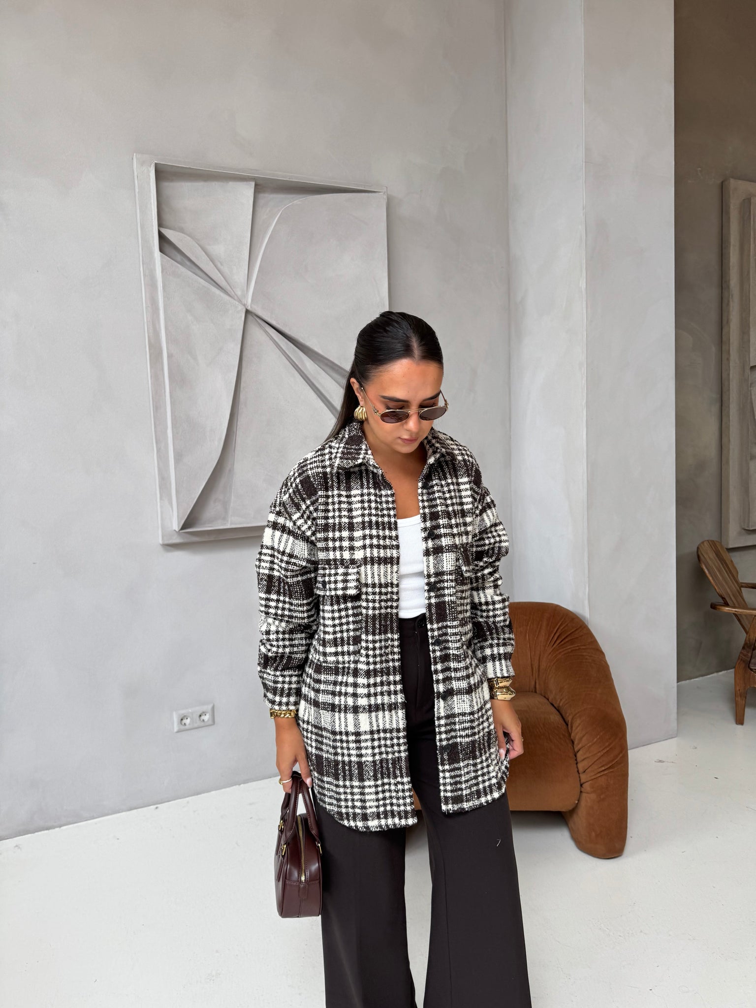 Veste à motif CARREAUX marron (W25215)